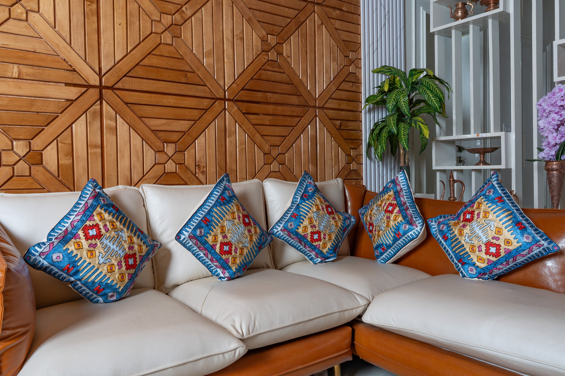 👐 Handcrafted with care, each cushion cover is Hand Embroidered by skilled Kashmiri artisans, reflecting refined craftsmanship.