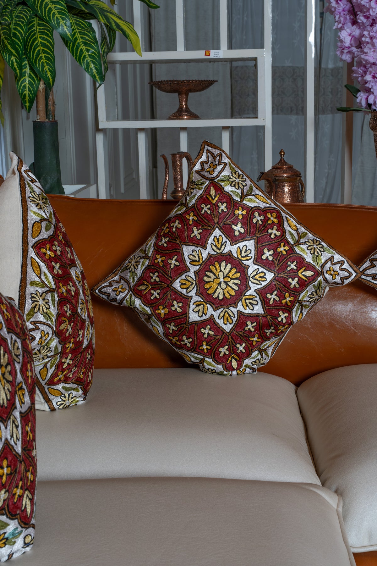 👐 Handcrafted with care, each cushion cover is Hand Embroidered by skilled Kashmiri artisans, reflecting refined craftsmanship.