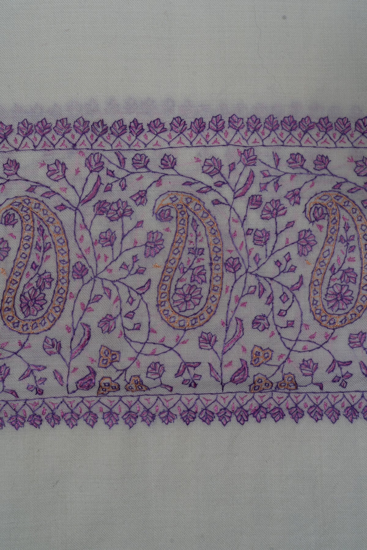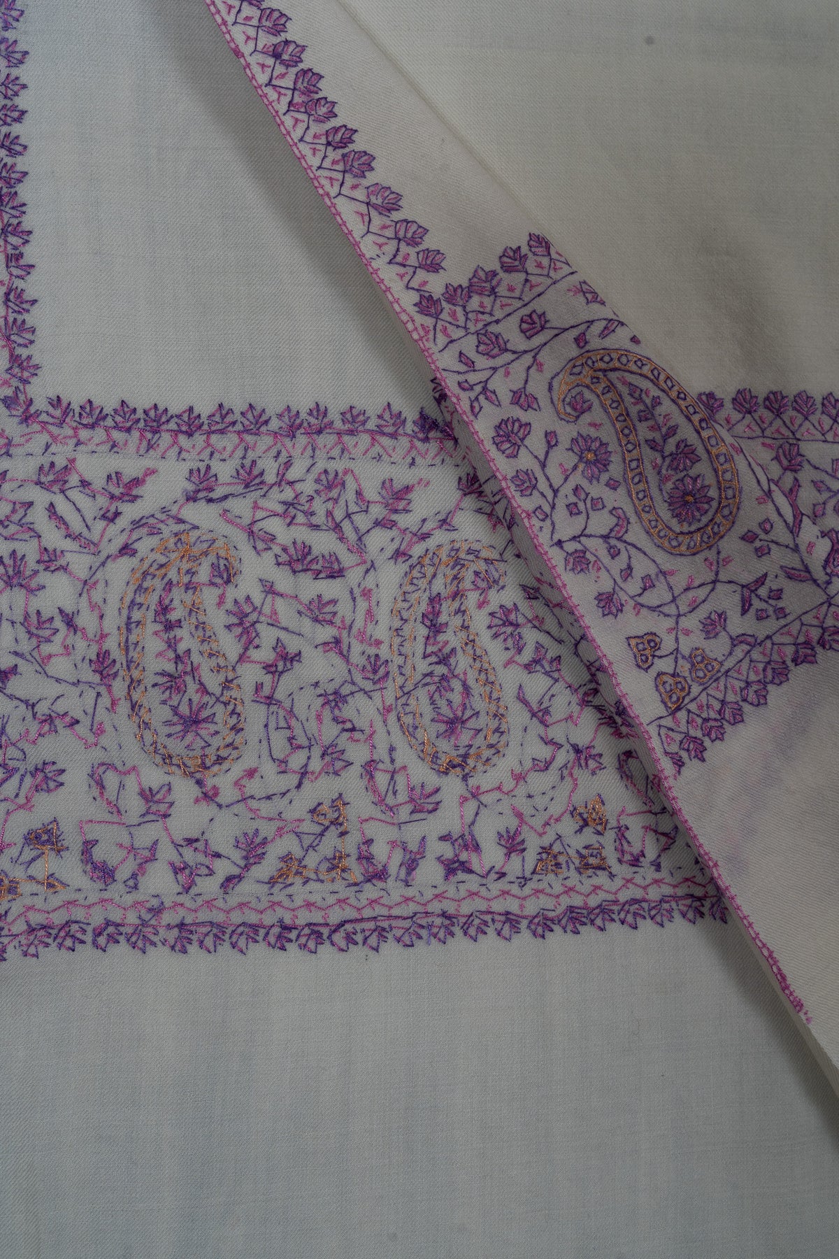 Moonlit Lavender Paisley Sozni Hand Embroidered Merino Wool Shawl