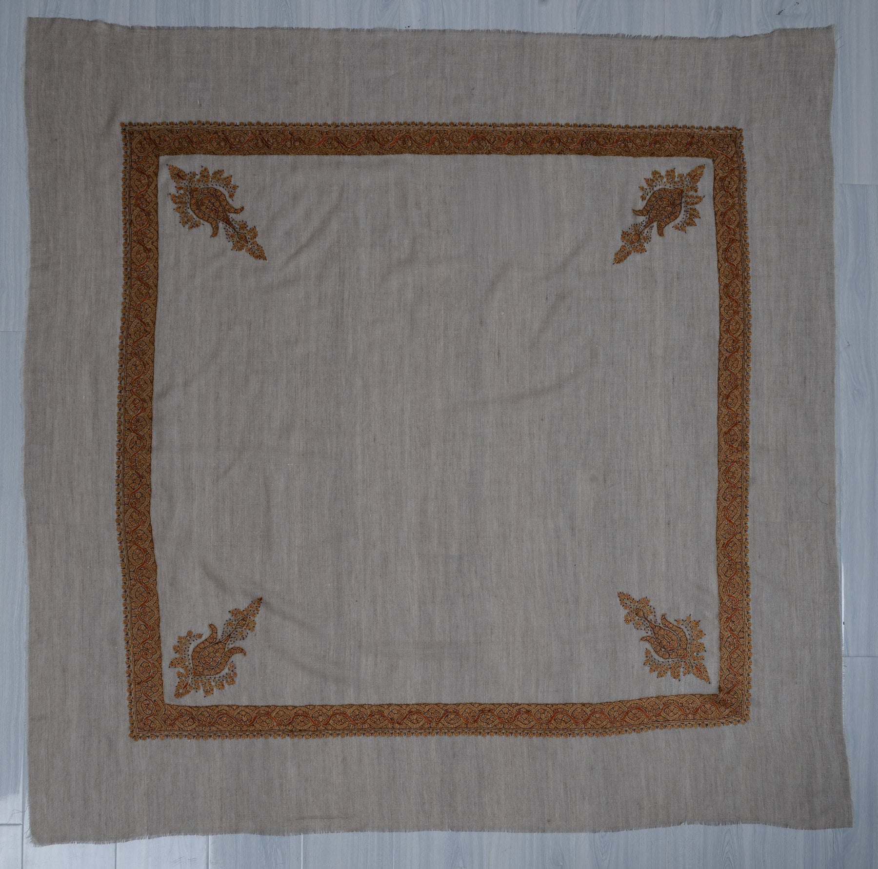 The blend of subtle tone and intricate embroidery creates a perfect harmony between modern taste and traditional artistry. Draped or displayed, this rumal reflects poise, heritage, and the soul of Kashmir.