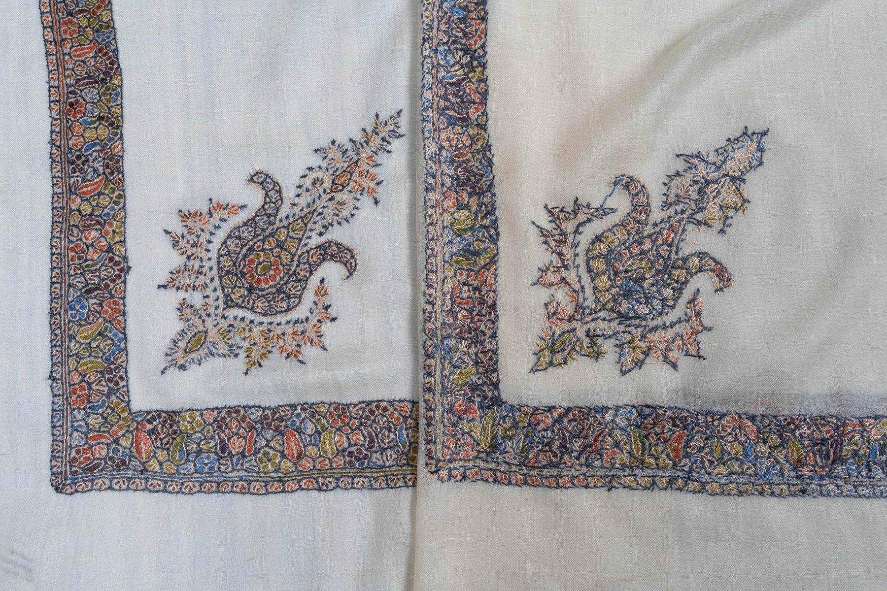 Misty Dawn Rumal — Pure Pashmina Sozni Hand Embroidered