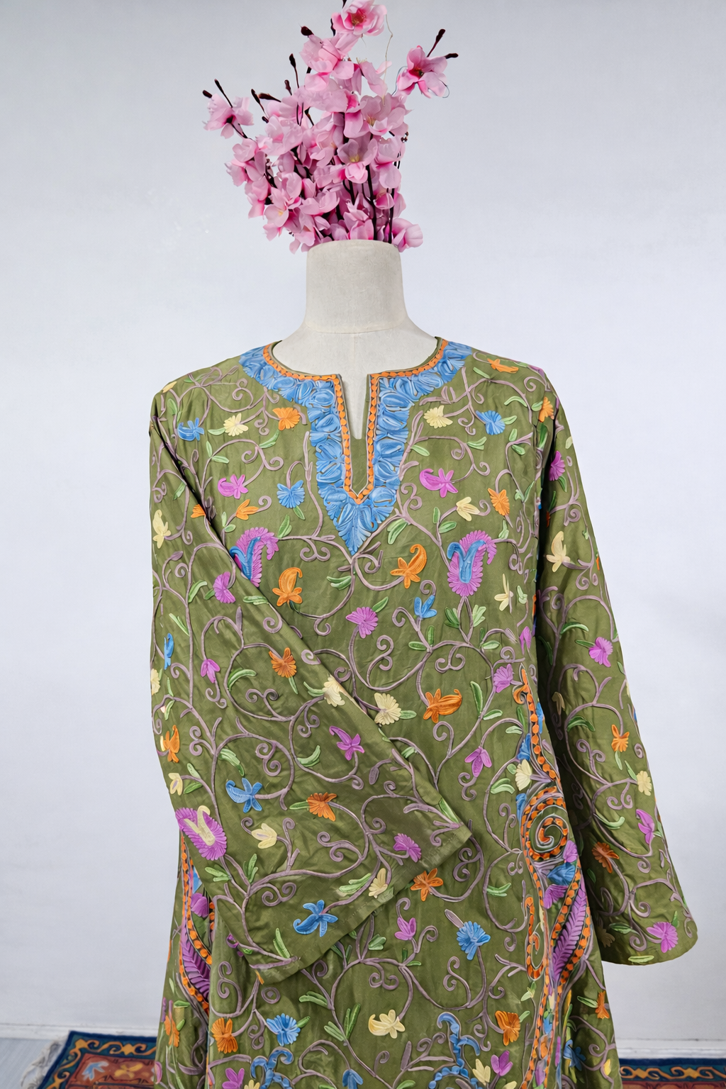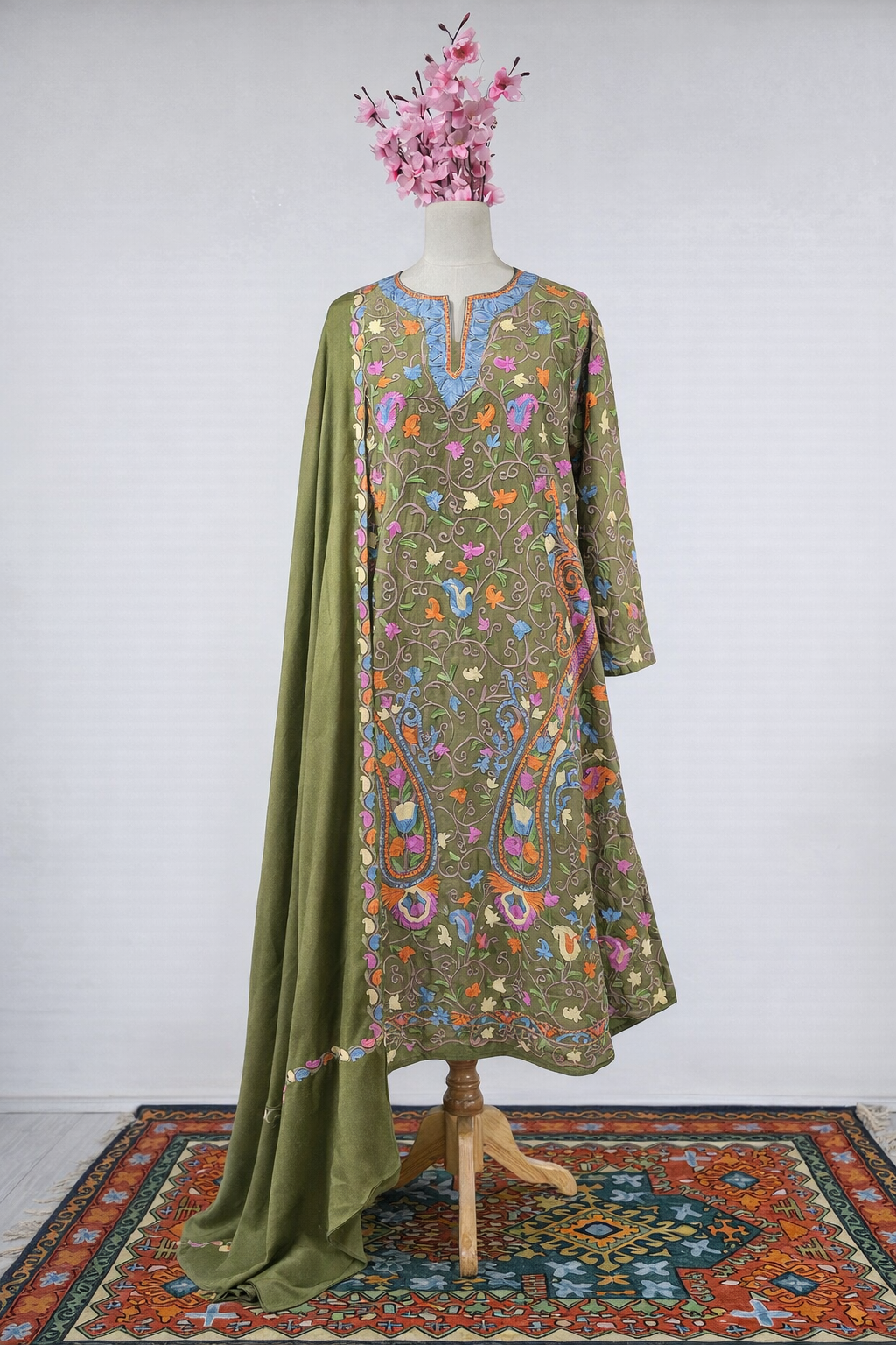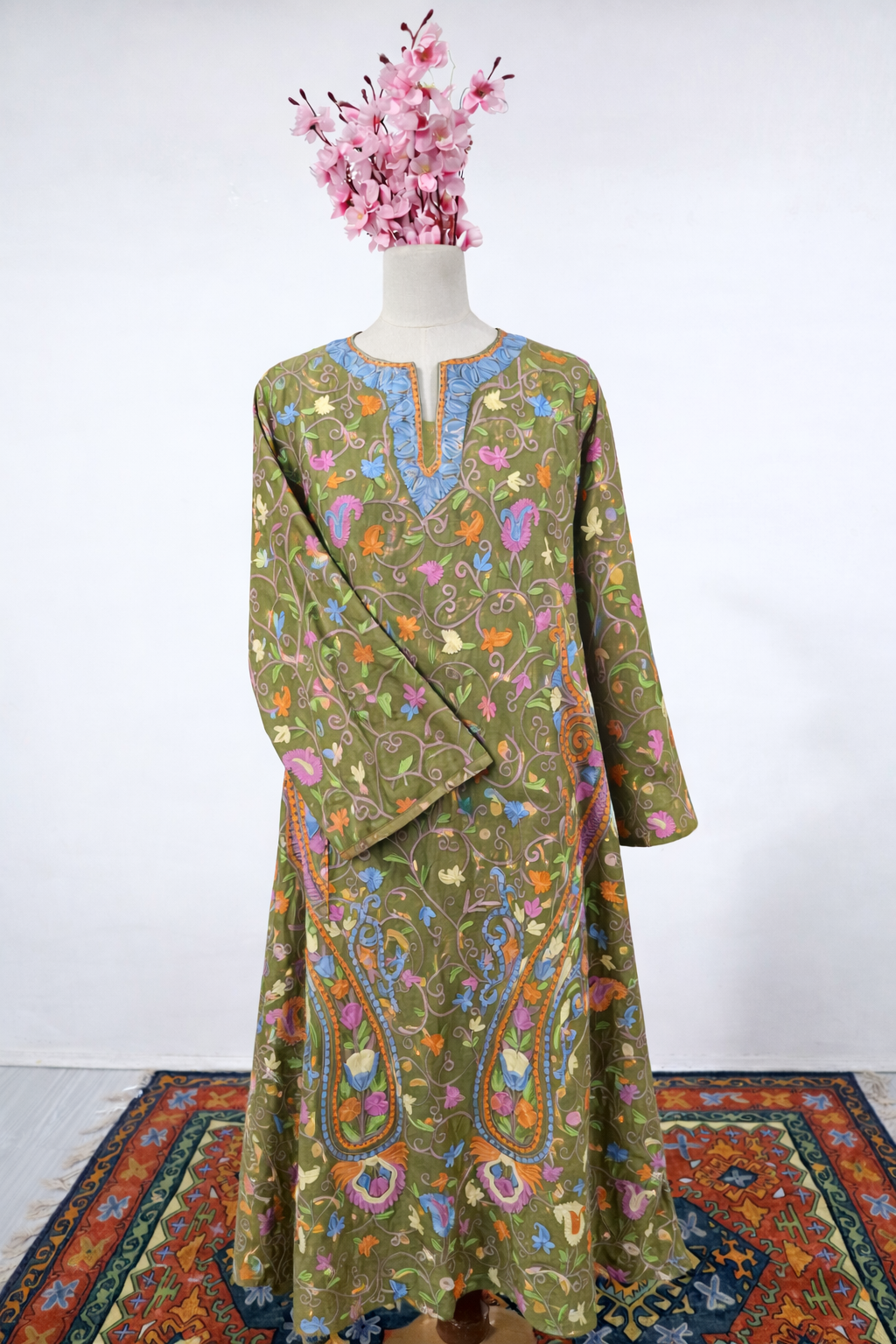 Zar-e-Gul Olive Kashmiri Dress Abaya