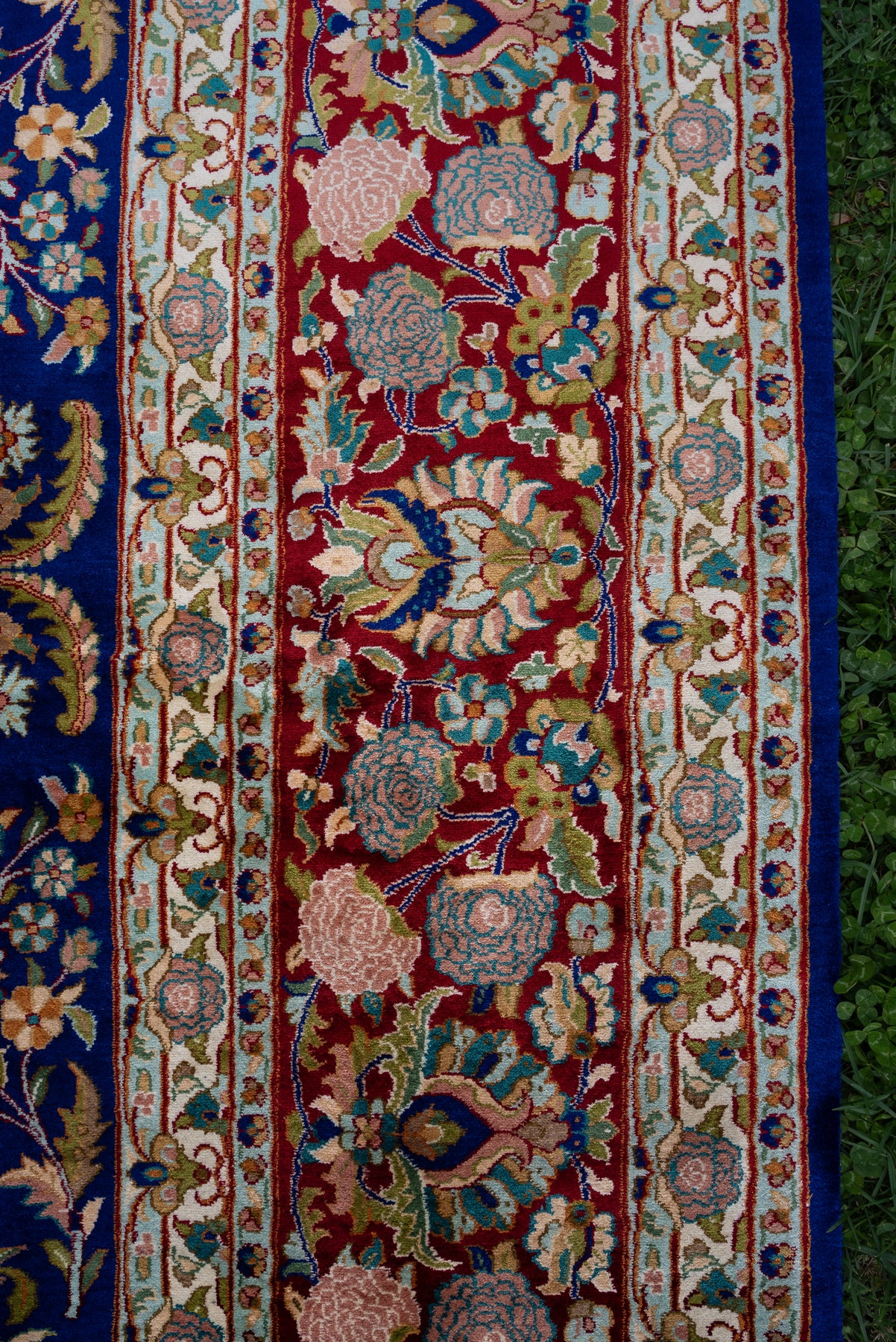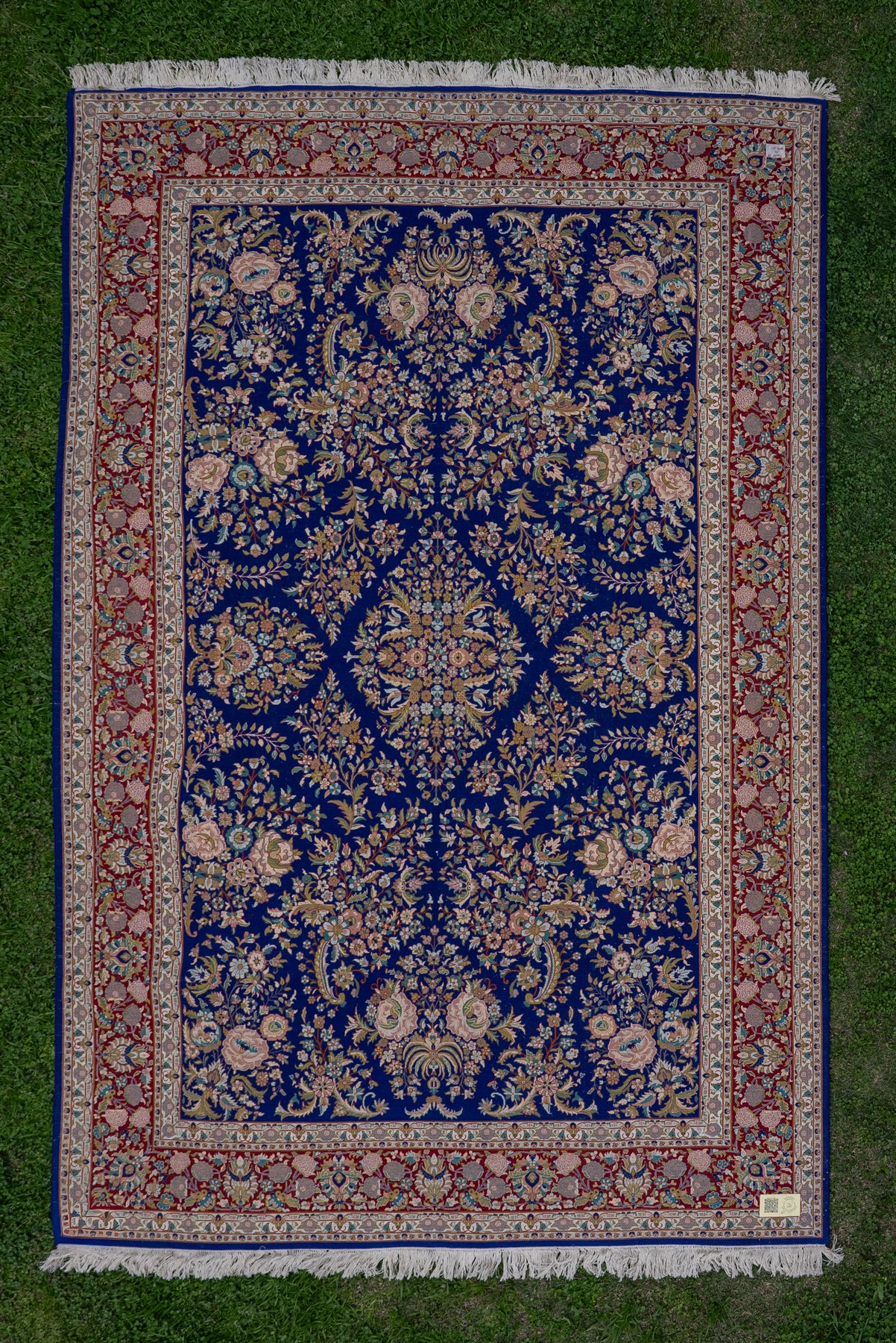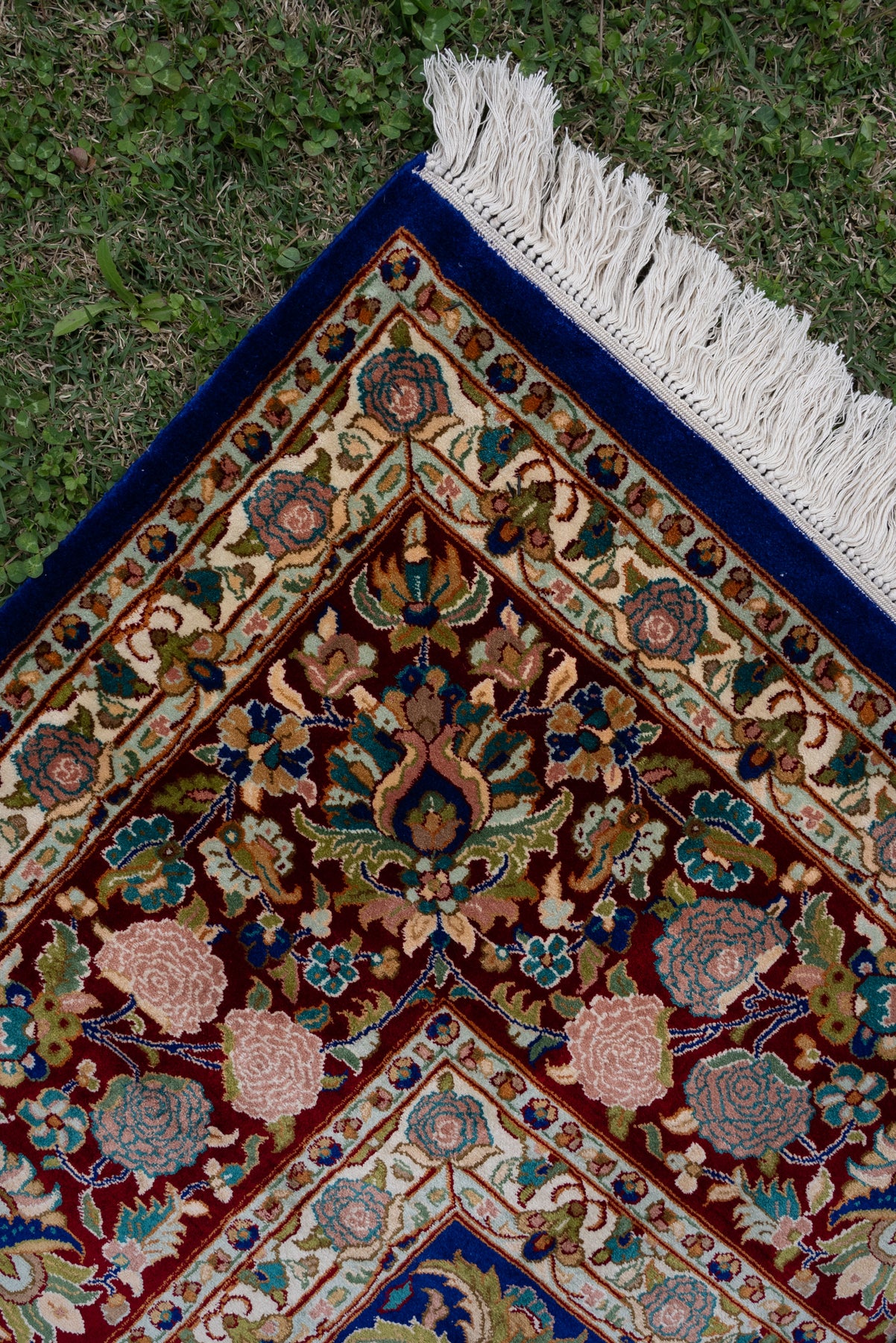 Set against a striking sapphire blue field, this carpet blossoms with an array of finely detailed floral motifs arranged in perfect balance. The vibrant border complements the rich center, creating a visual rhythm that feels both lively and elegant.