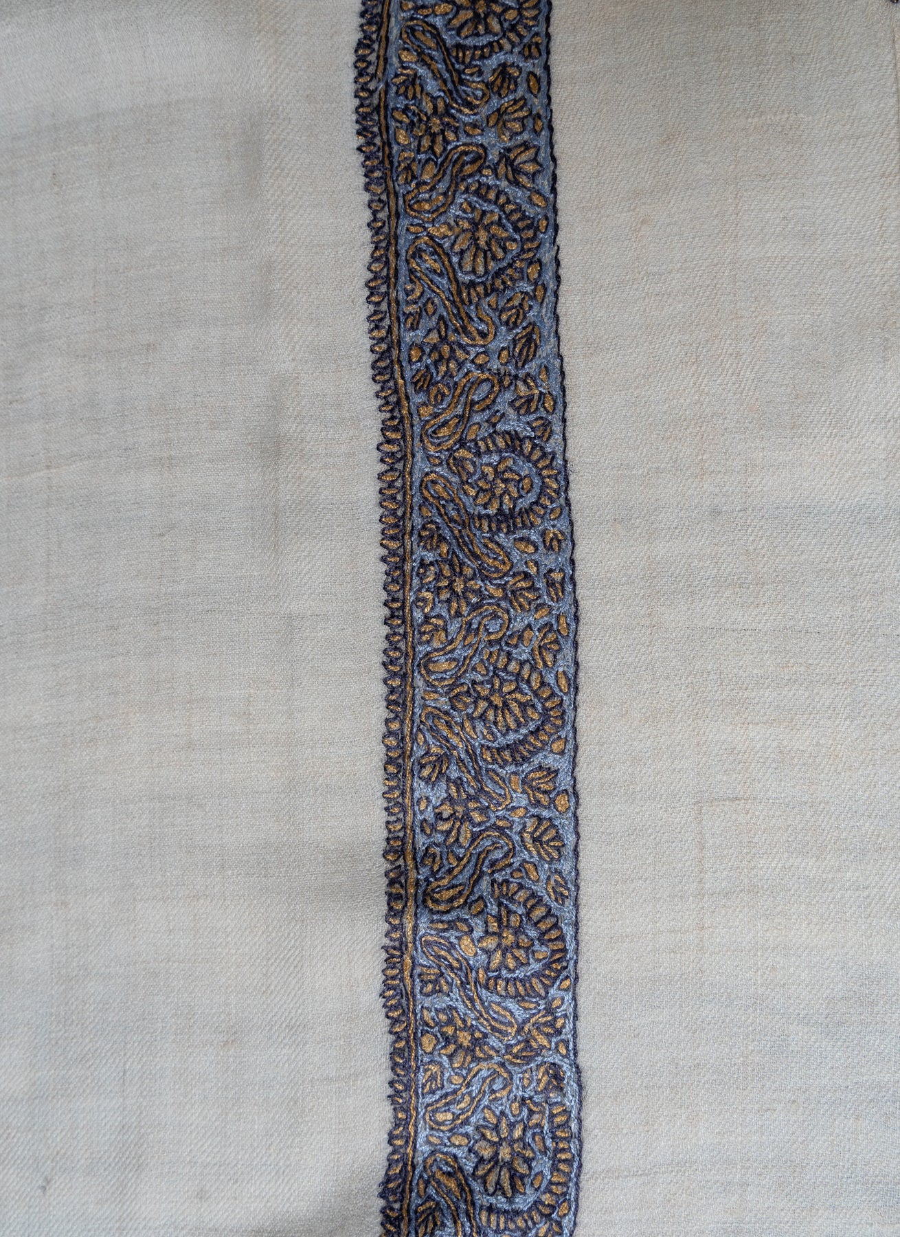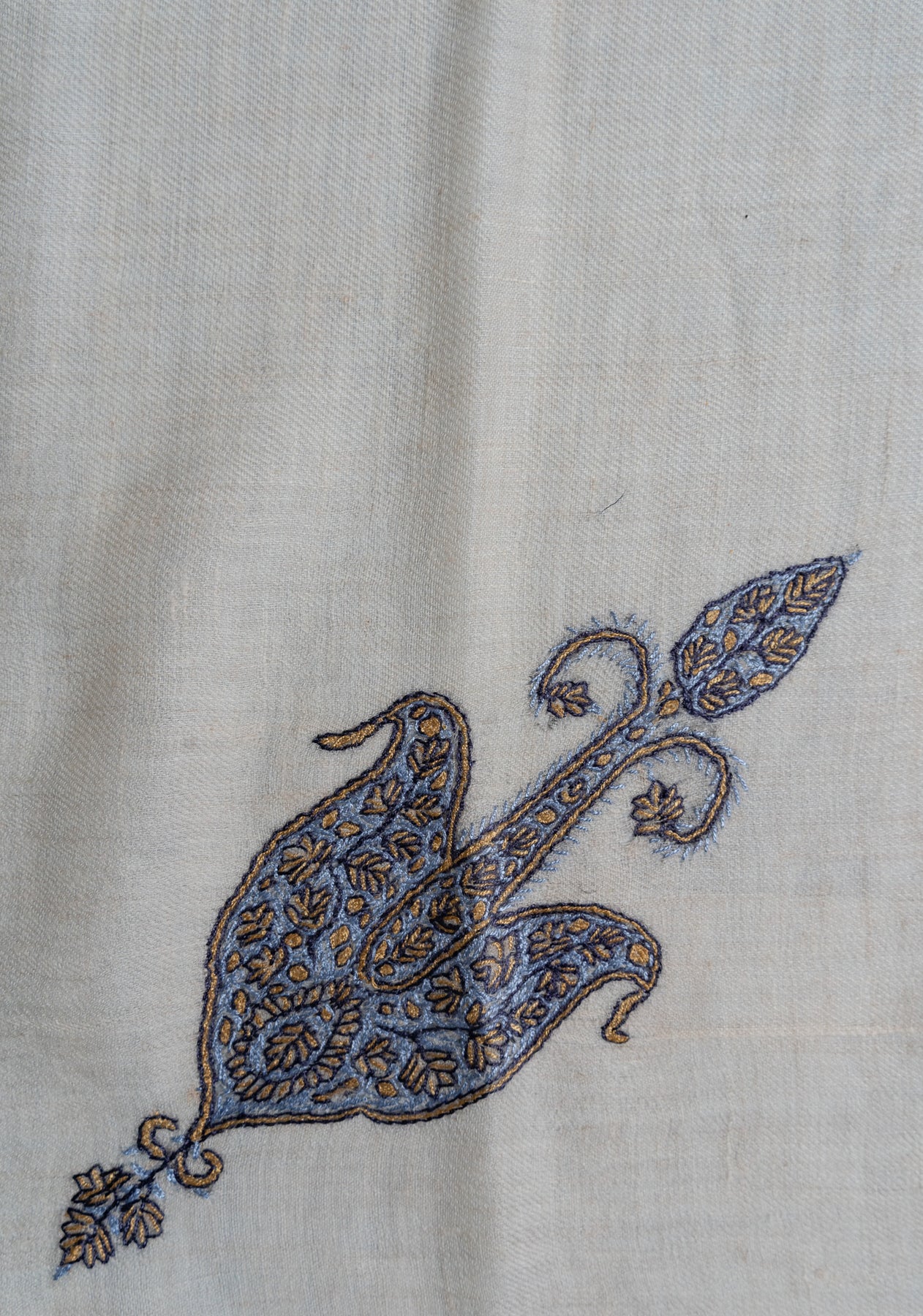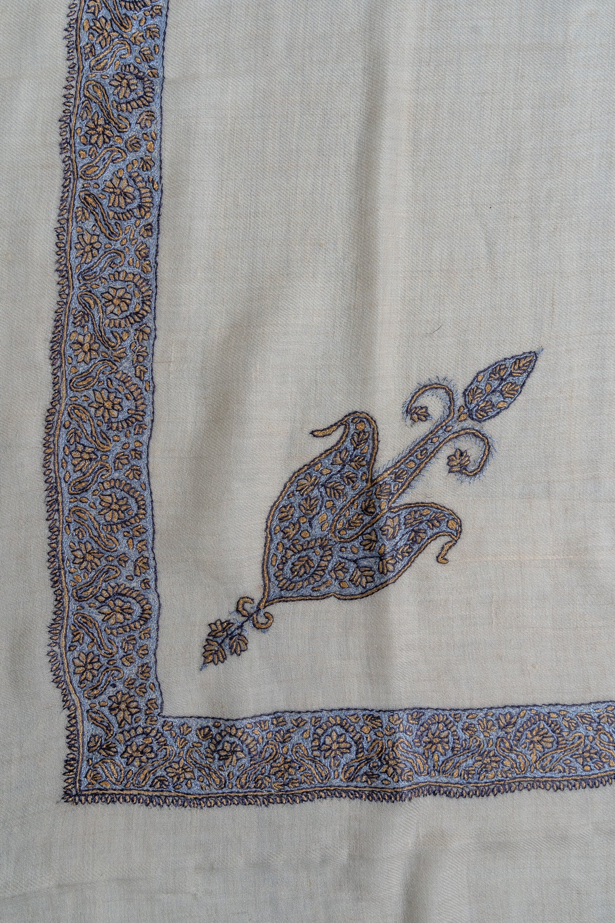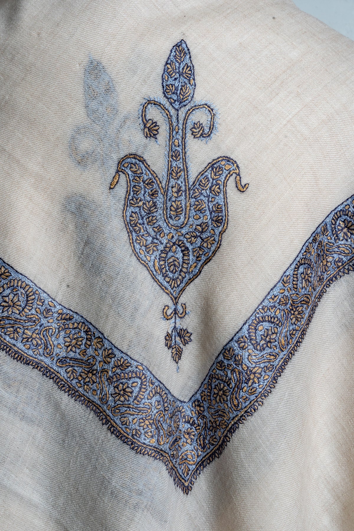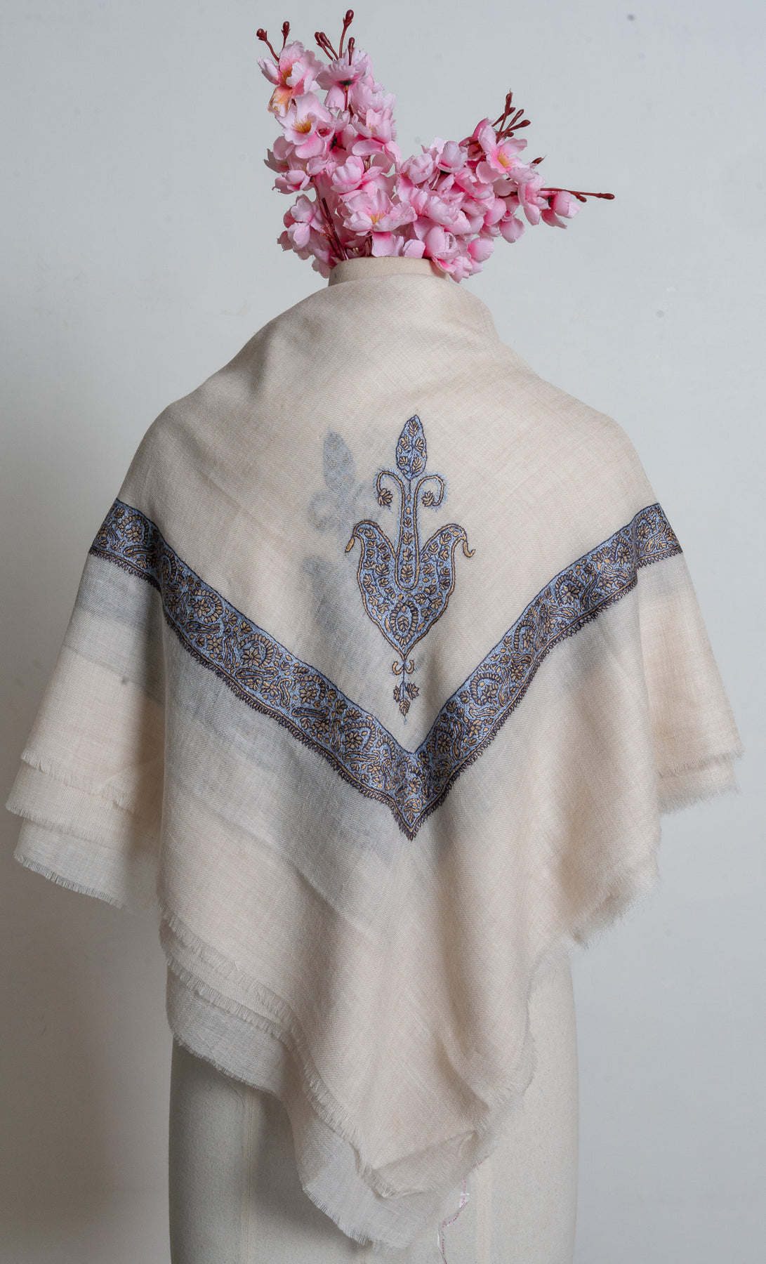 Cashmere Ivory Bluehaven Rumal — Sozni Hand Embroidered