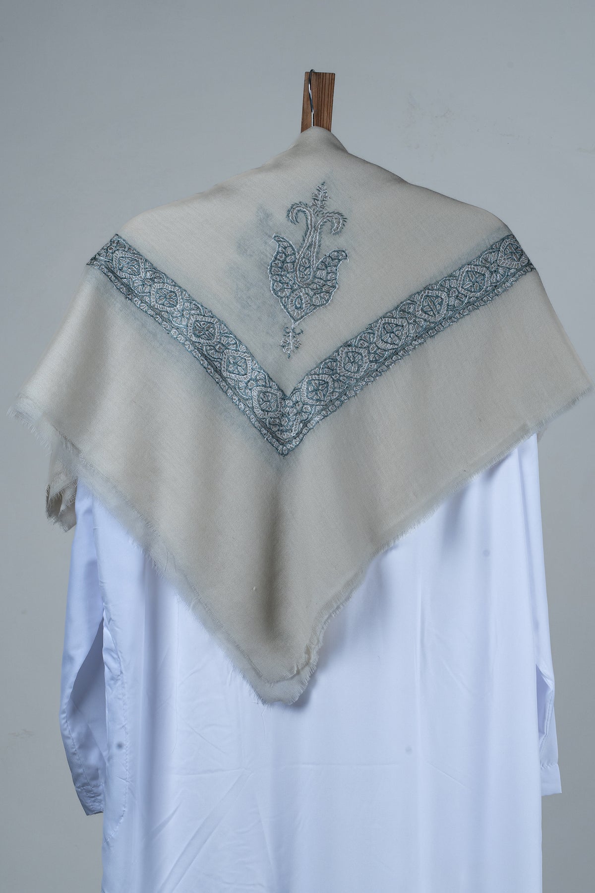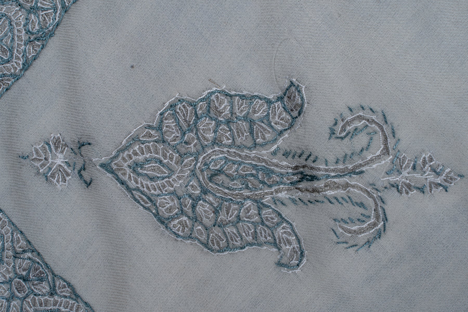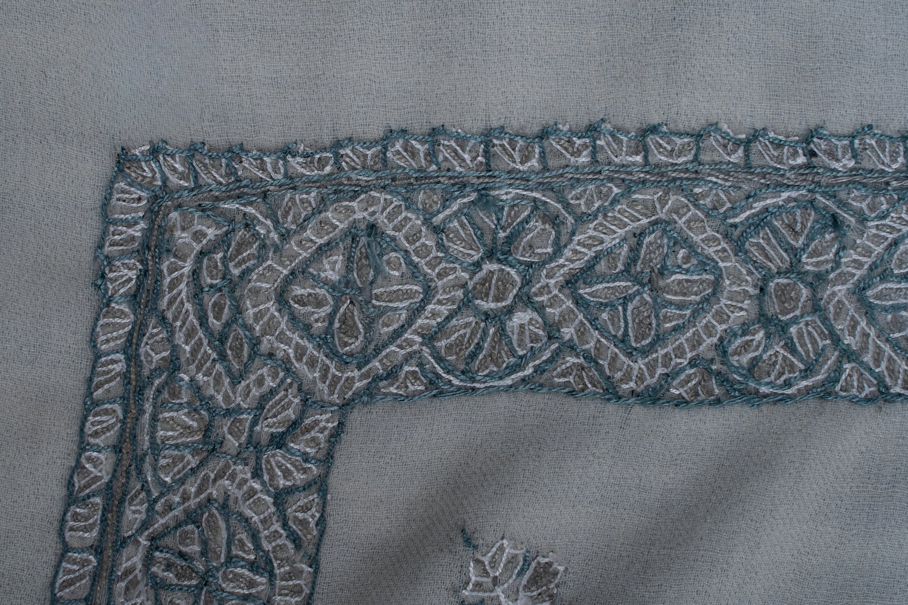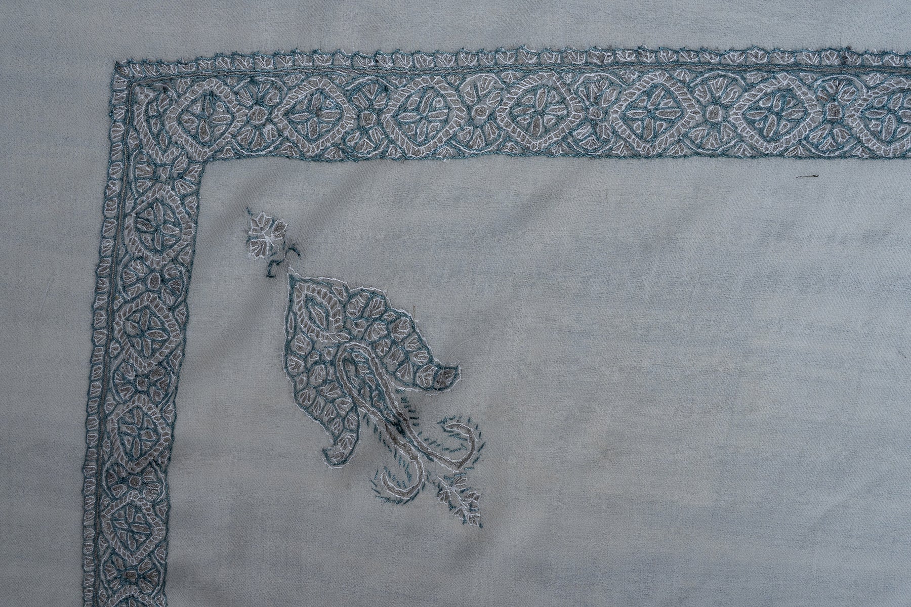 Ivory Sapphire Rumal — Sozni Hand Embroidered