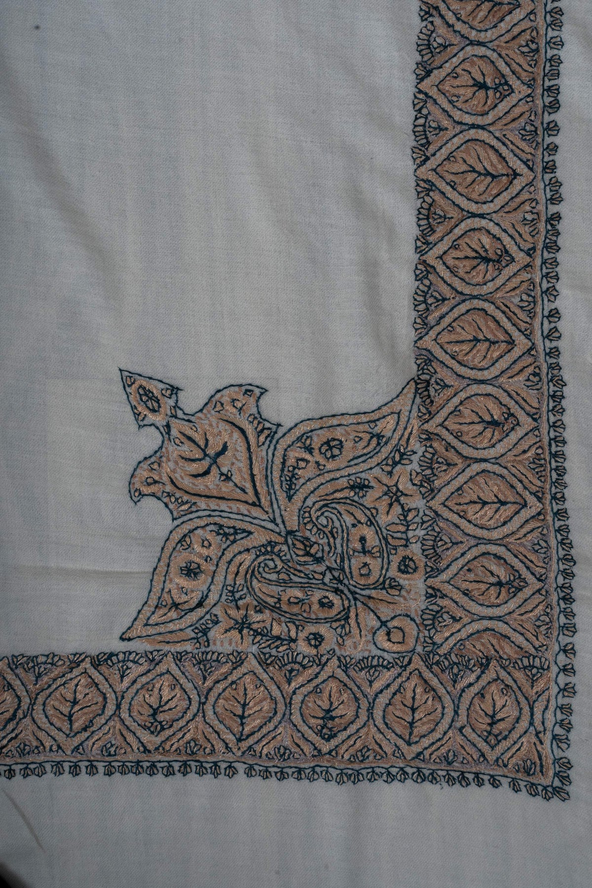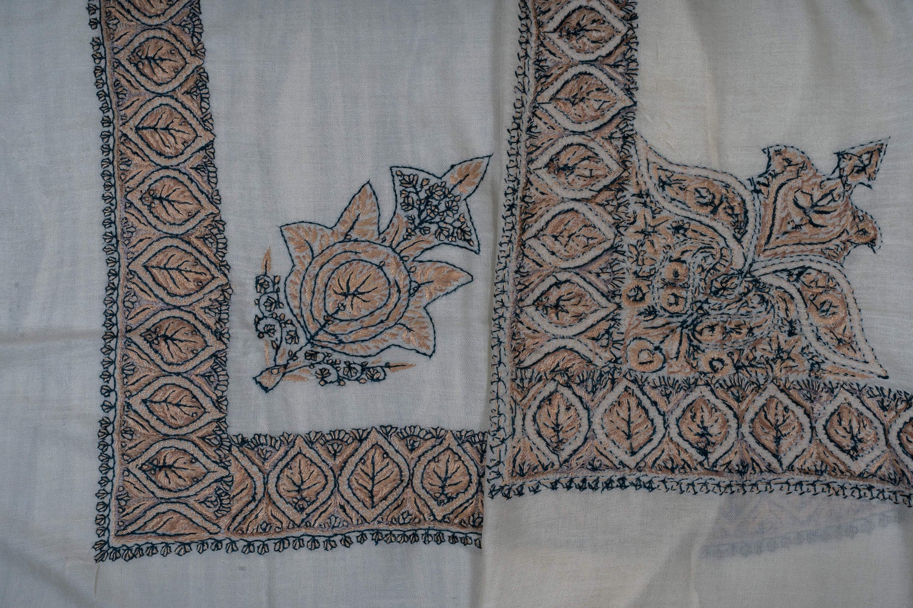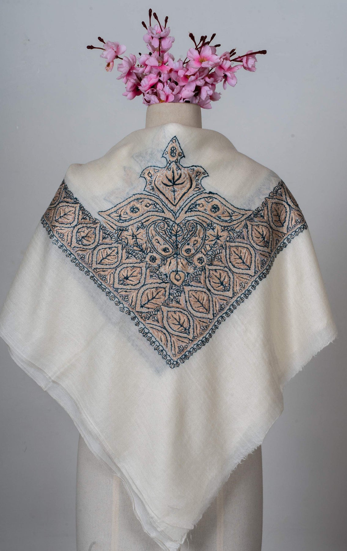 Wrap yourself in the elegance of Kashmir with the Sandstone Leaf Rumal 58 inches — Sozni Hand Embroidered, a hand-embroidered masterpiece designed for both tradition and modern grace. Crafted from Merino Wool, this Rumal is feather-light, breathable, and smooth against the skin. Measuring 58 x 58 inches square, it is ideal for styling as a tarha/hijab, shoulder wrap, or a refined everyday layer.
