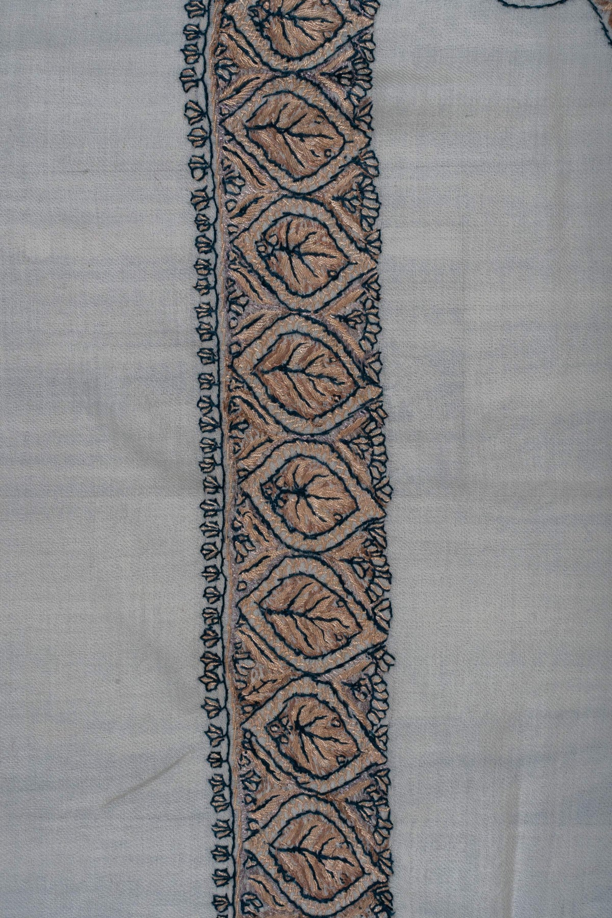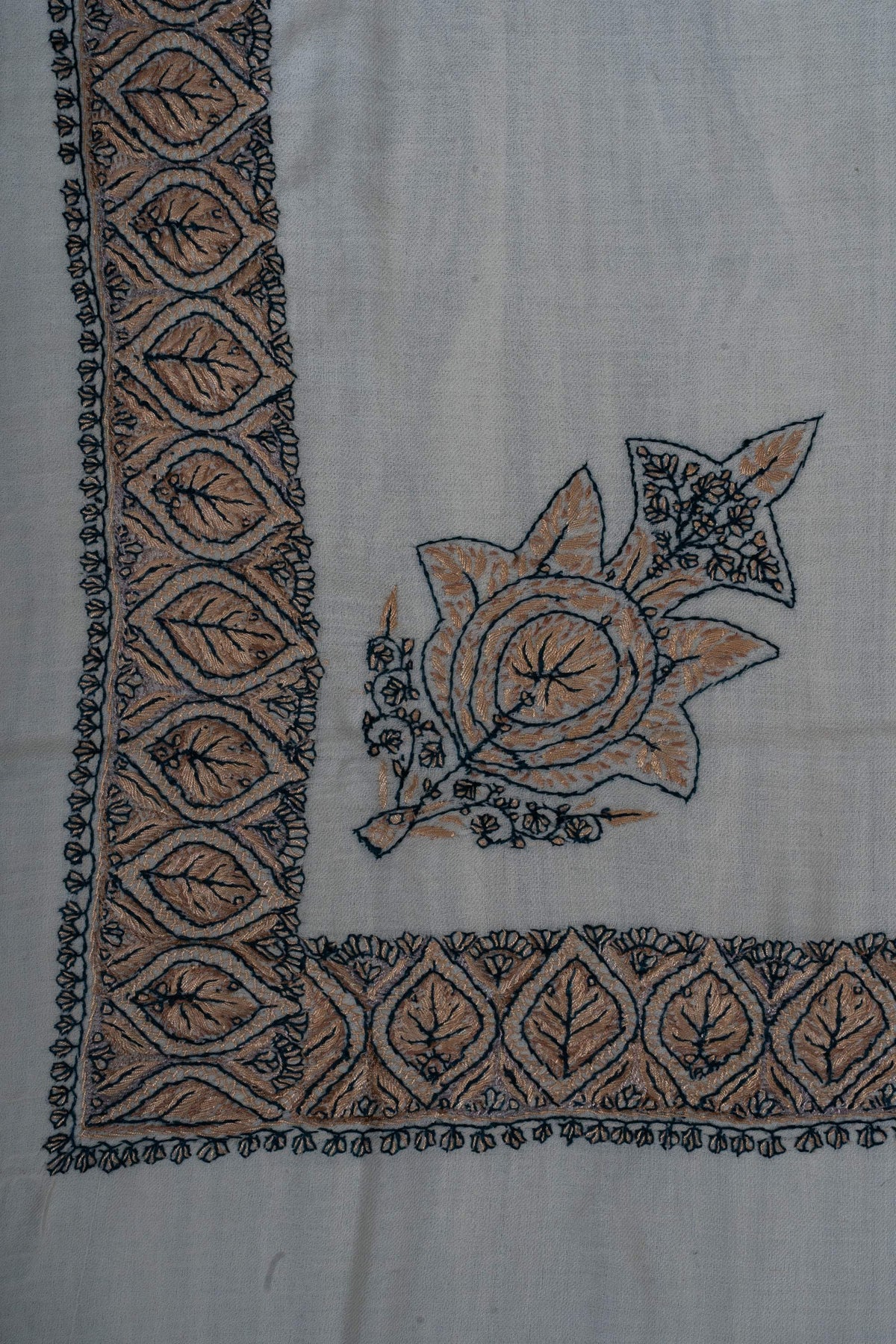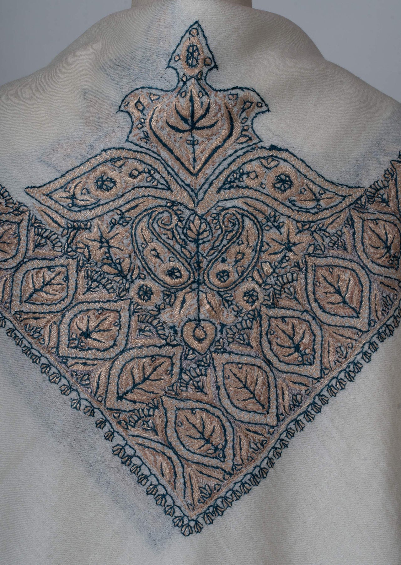 Wrap yourself in the elegance of Kashmir with the Sandstone Leaf Rumal 58 inches — Sozni Hand Embroidered, a hand-embroidered masterpiece designed for both tradition and modern grace. Crafted from Merino Wool, this Rumal is feather-light, breathable, and smooth against the skin. Measuring 58 x 58 inches square, it is ideal for styling as a tarha/hijab, shoulder wrap, or a refined everyday layer.