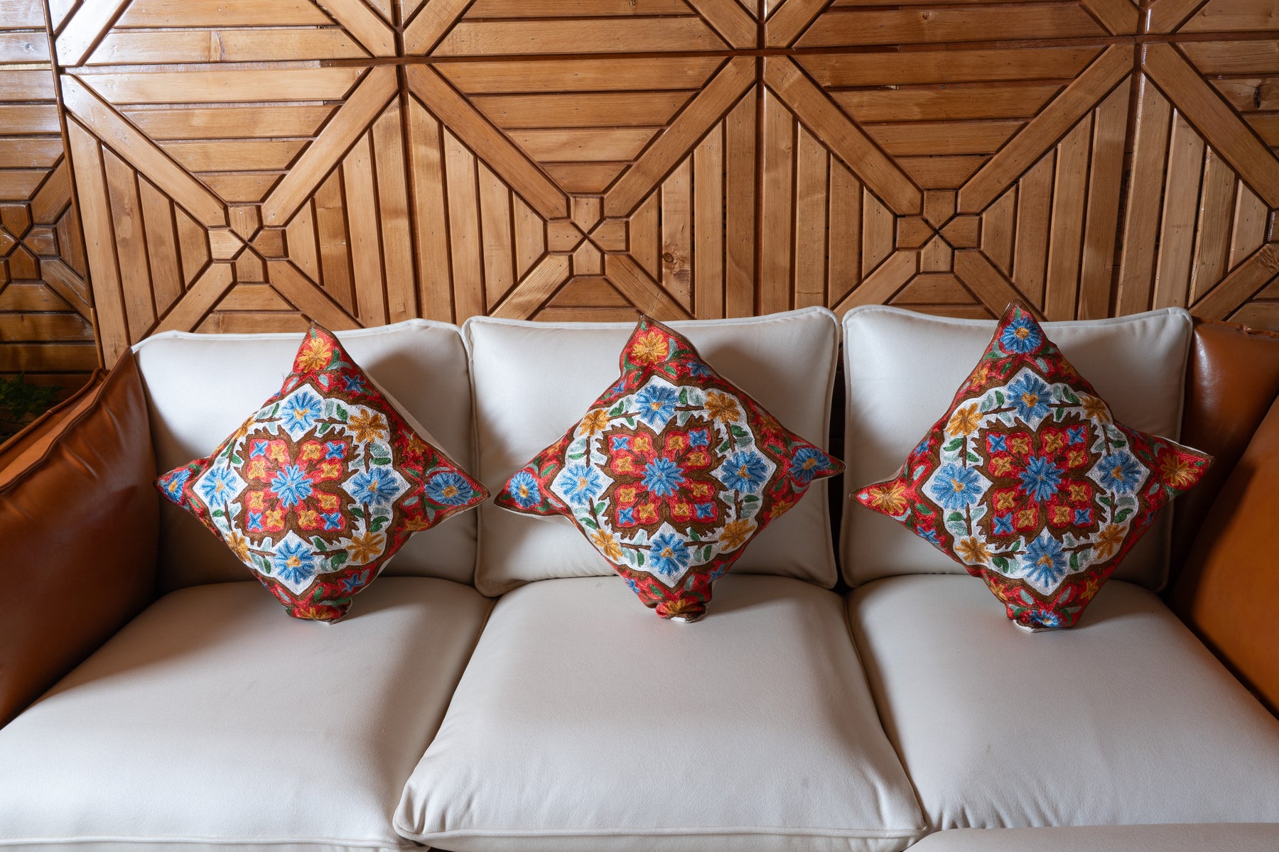With its 16x16 inches size, this pillow cover serves as a captivating statement piece. The textured embroidery adds dimension and warmth, making it ideal for energizing neutral seating areas or complementing bold décor themes.