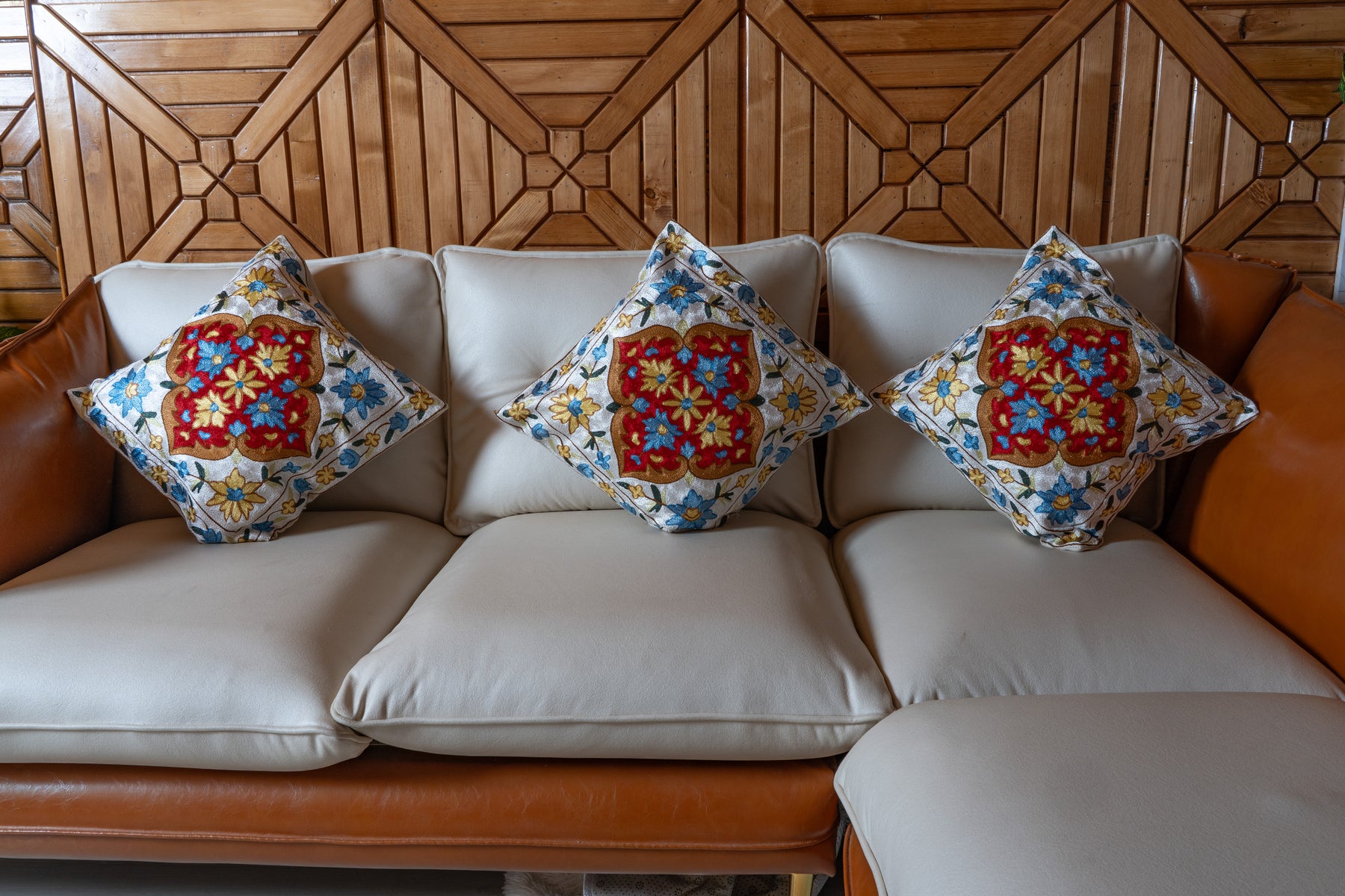 Sized at 16x16 inches, this pillow cover adds richness and warmth to sofas, accent chairs, or layered bedding. The raised embroidery enhances texture and depth, making it a refined decorative piece that blends vibrant color with timeless craftsmanship.