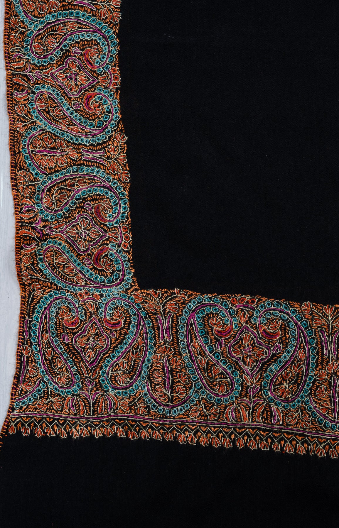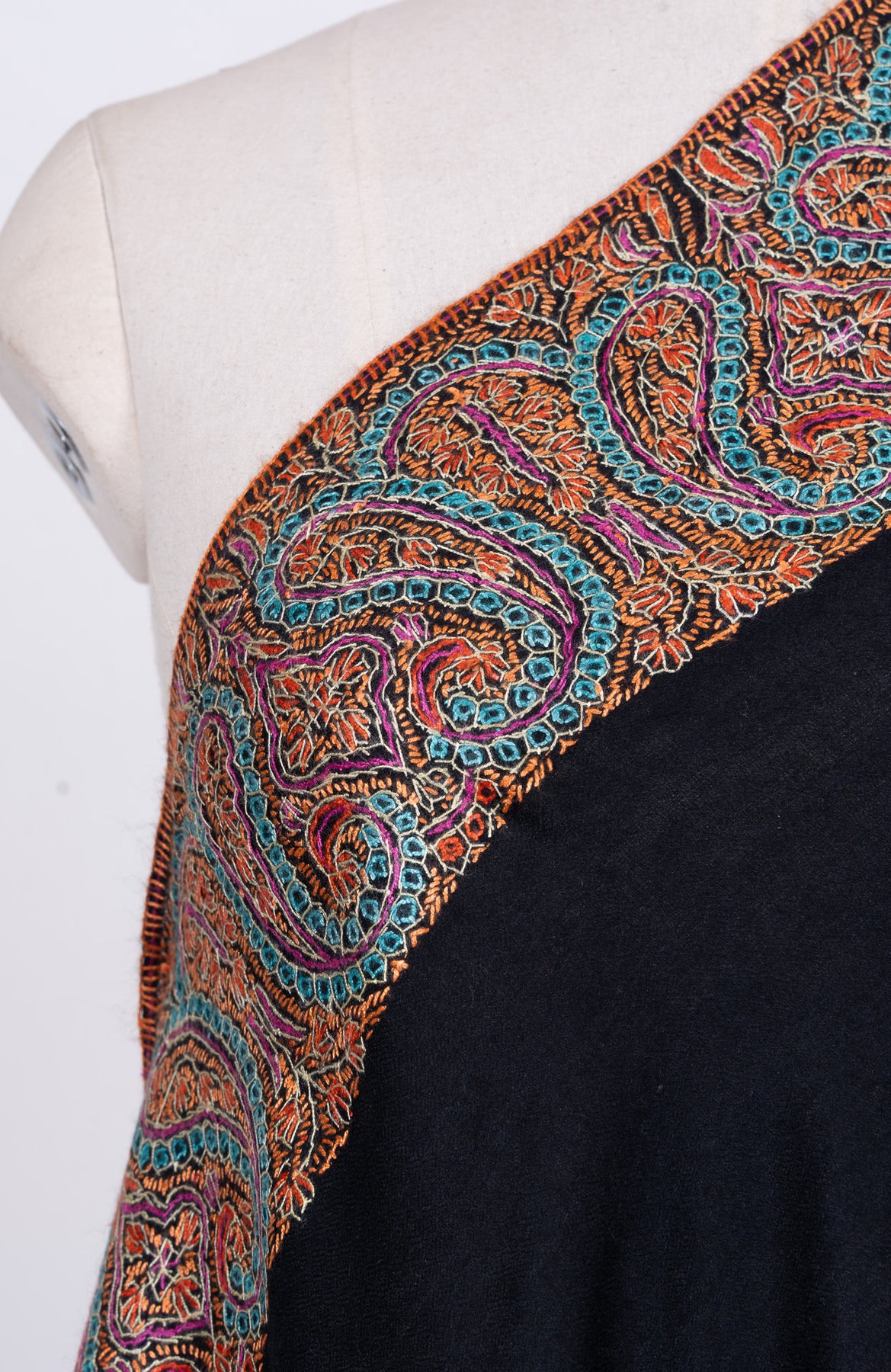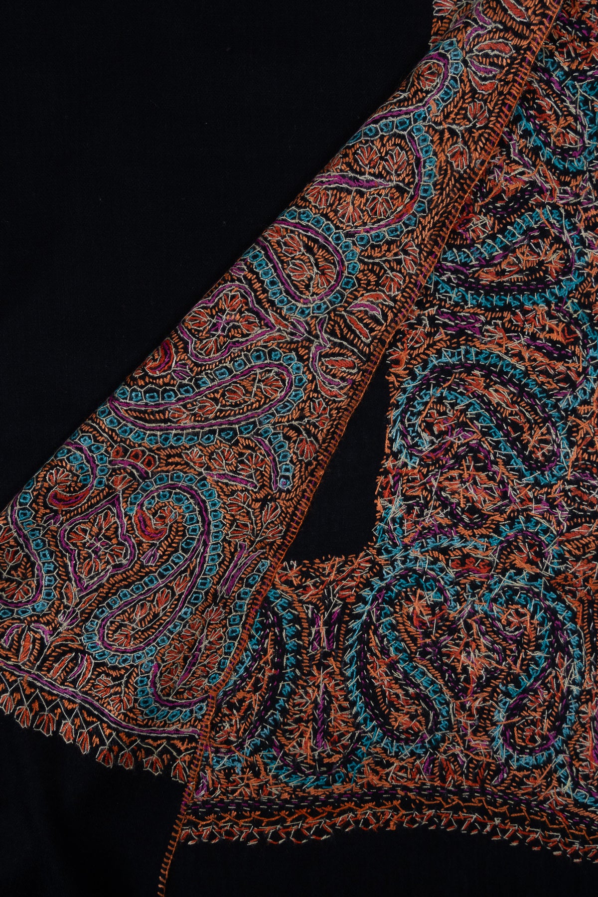 Midnight Paisley Ember 2.5 Yards Sozni Hand Embroidered Shawl