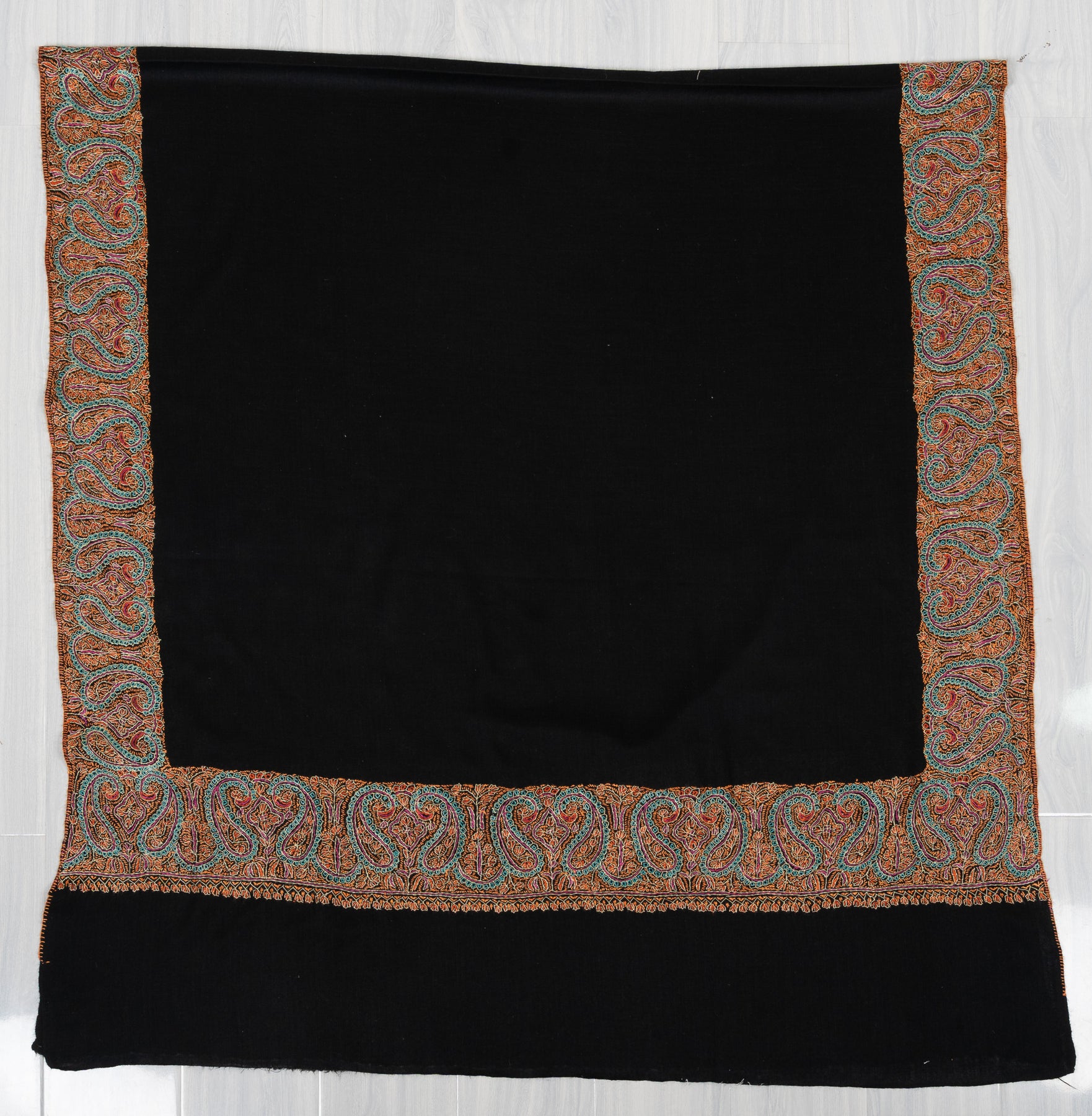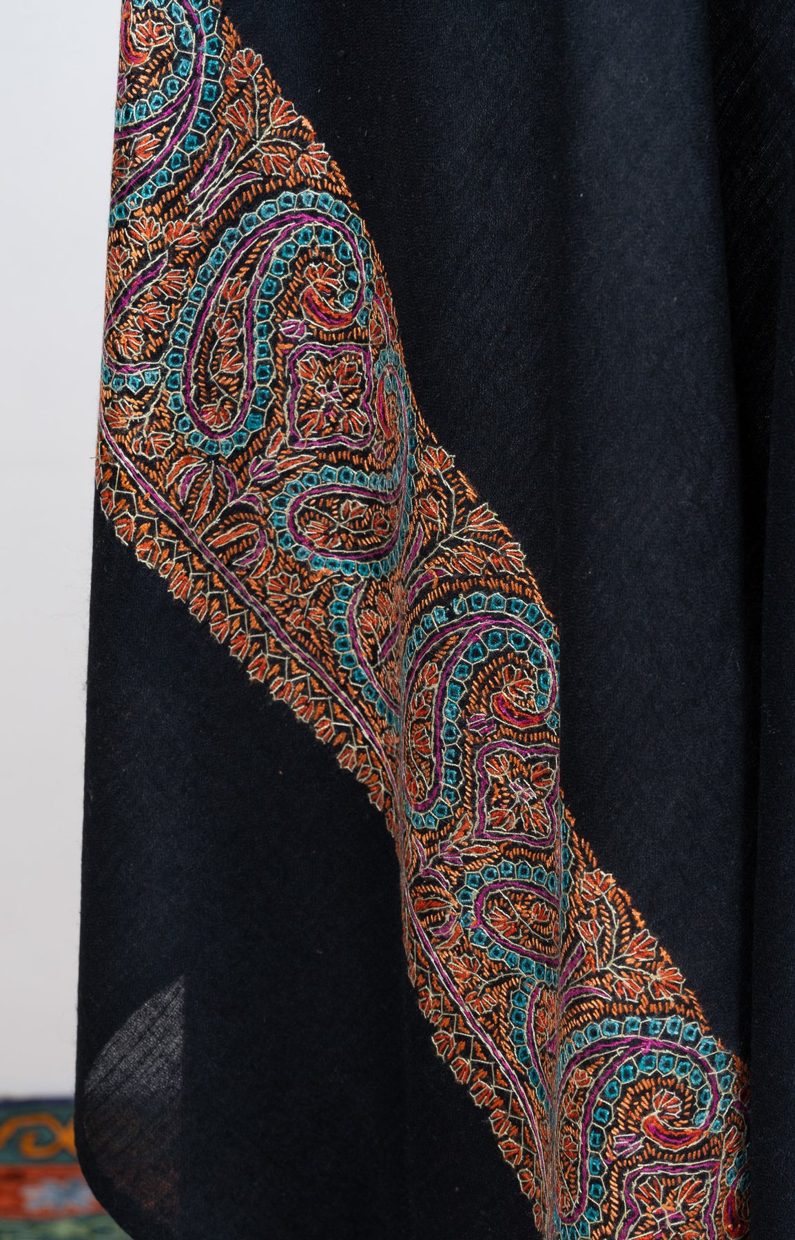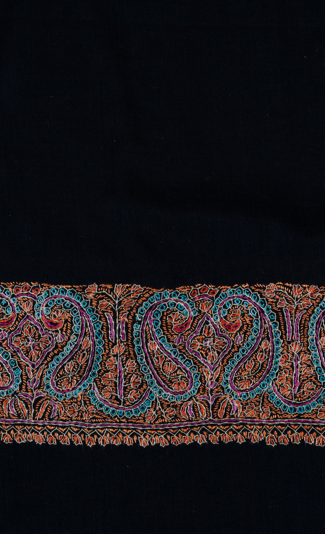 Midnight Paisley Ember 2.5 Yards Sozni Hand Embroidered Shawl