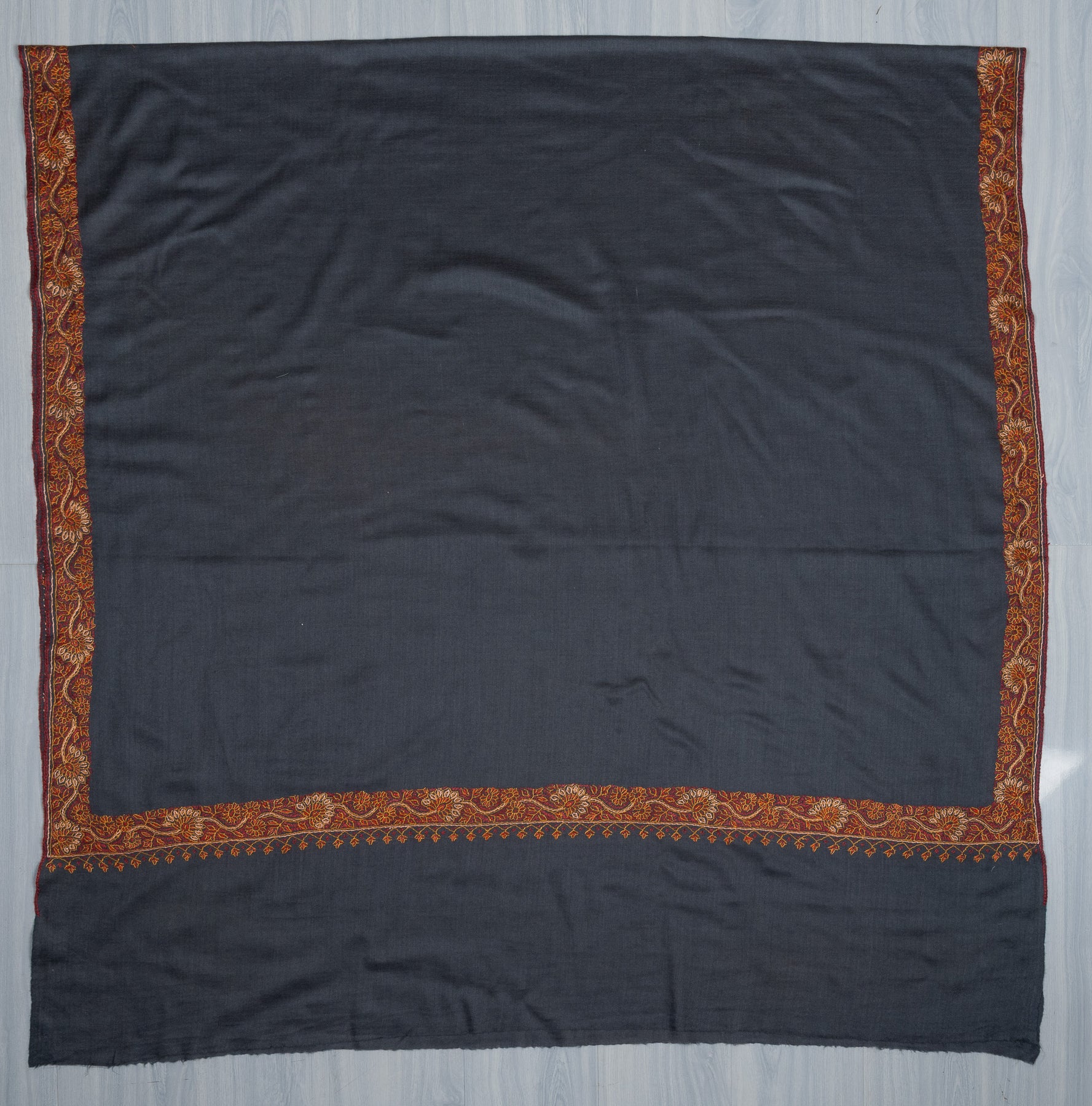 2.5 Yards Sozni Hand Embroidered Shawl in Deep Teal Floral Border