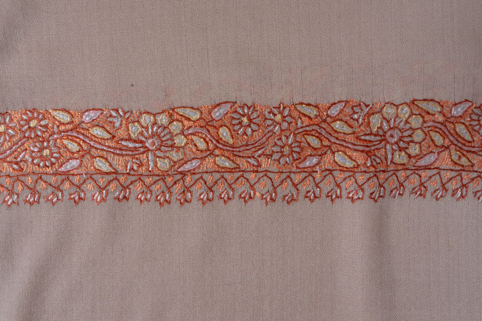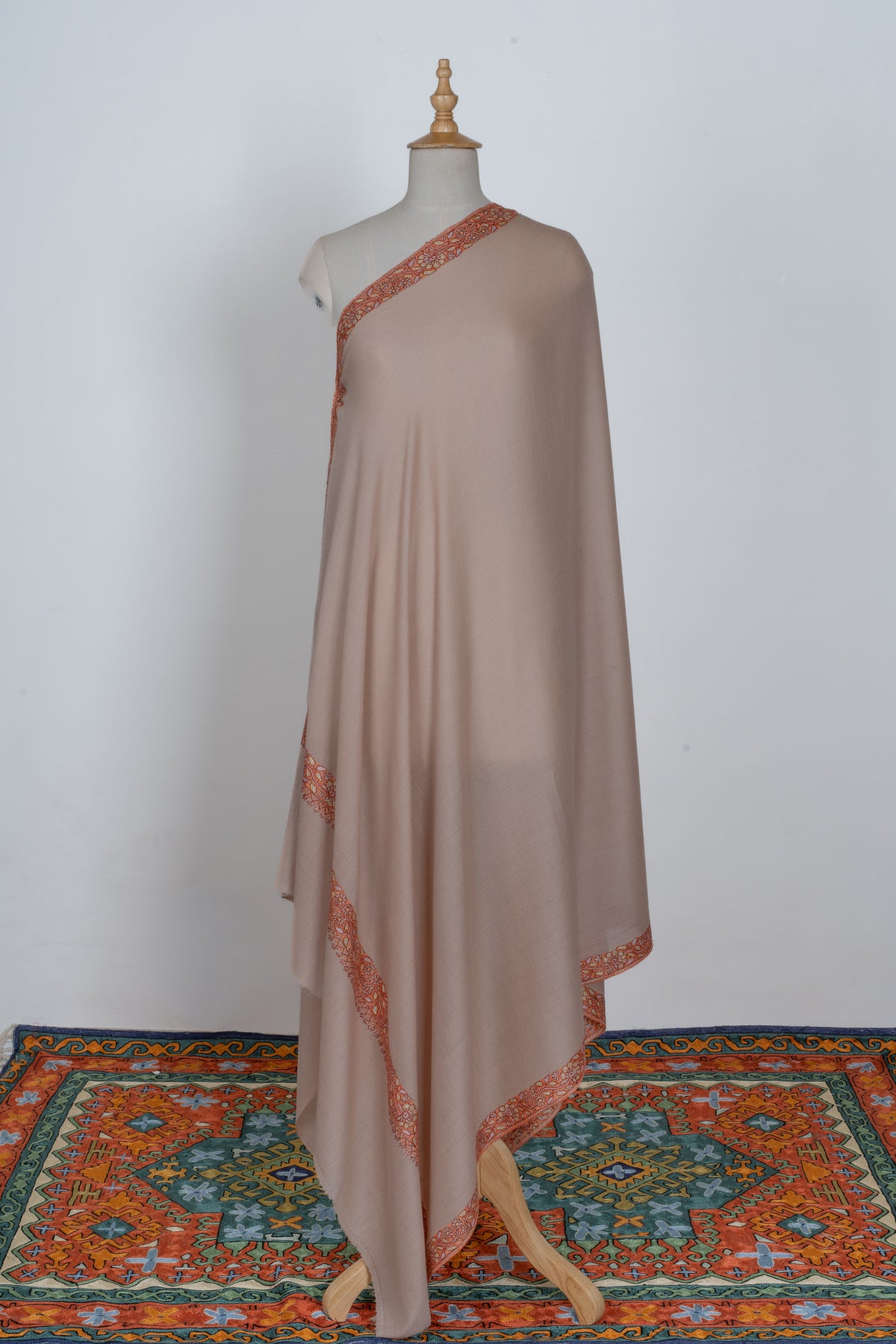 2.5 Yards | Gul-e-Narm — Sozni Hand-Embroidered Shawl in Beige with Rust & Ivory Borders