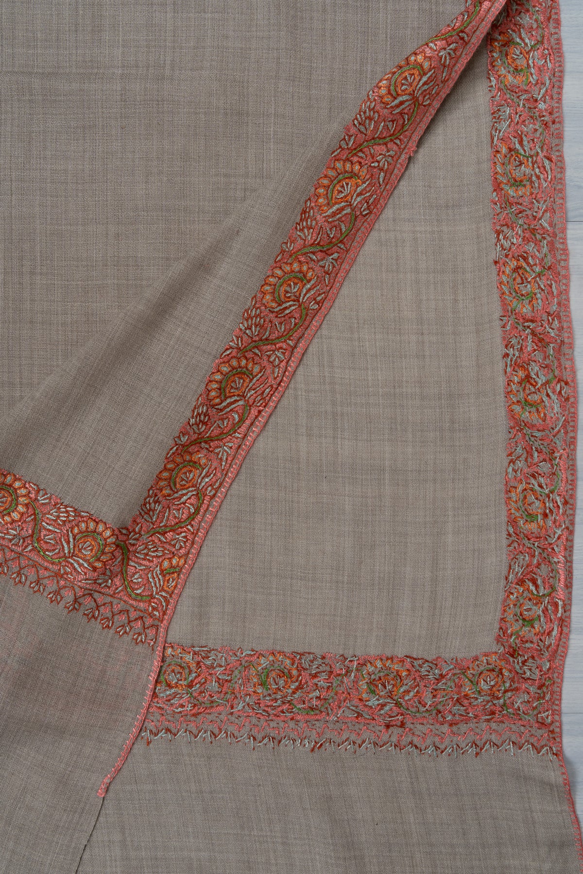 Sandstone Whisper — 2.5 Yards Sozni Hand-Embroidered Shawl