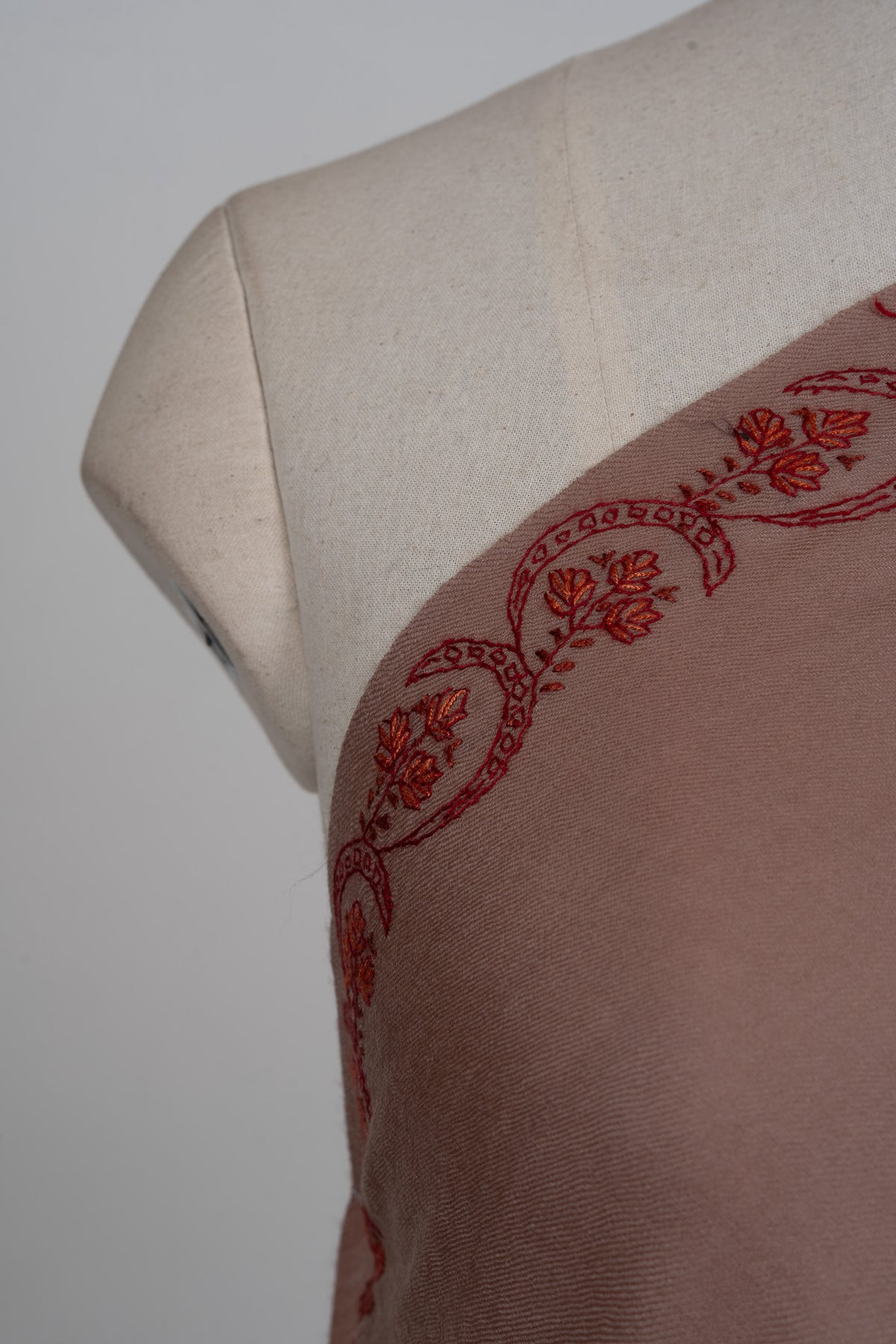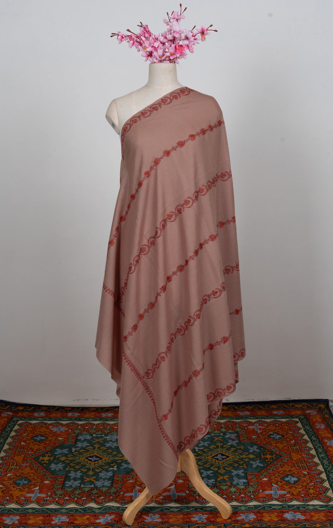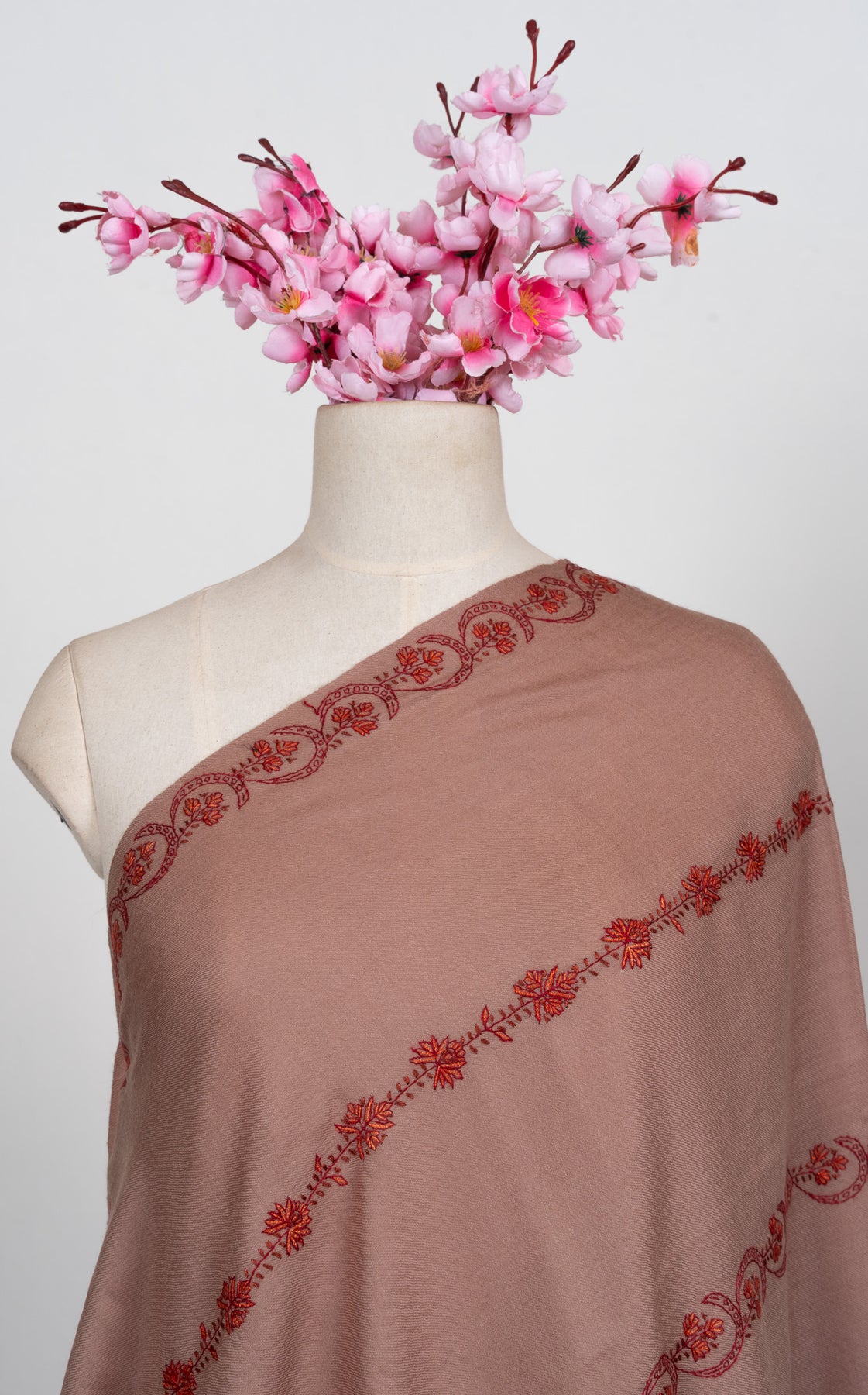 Blush Clay Sozni Hand Embroidered Merino Wool Shawl