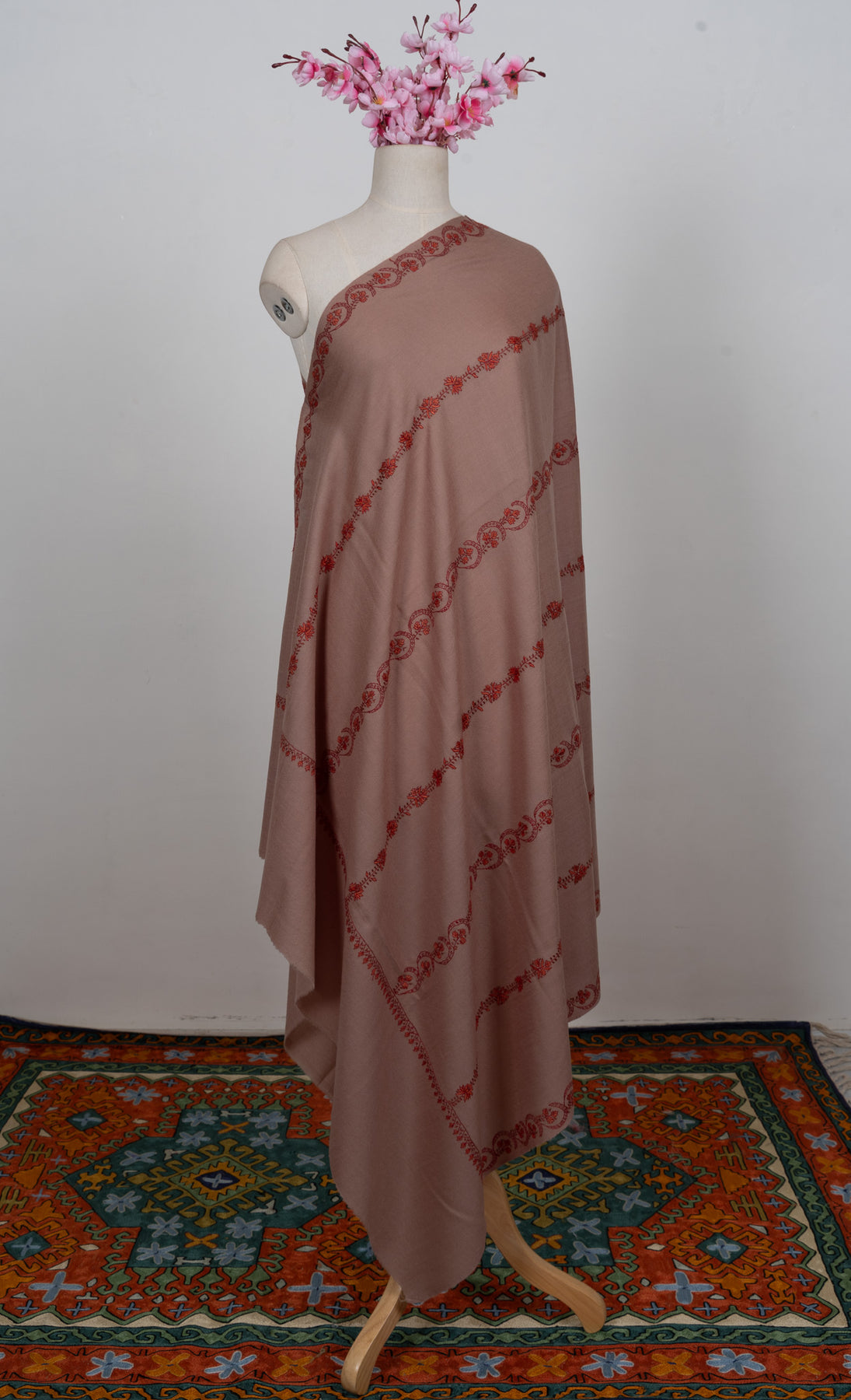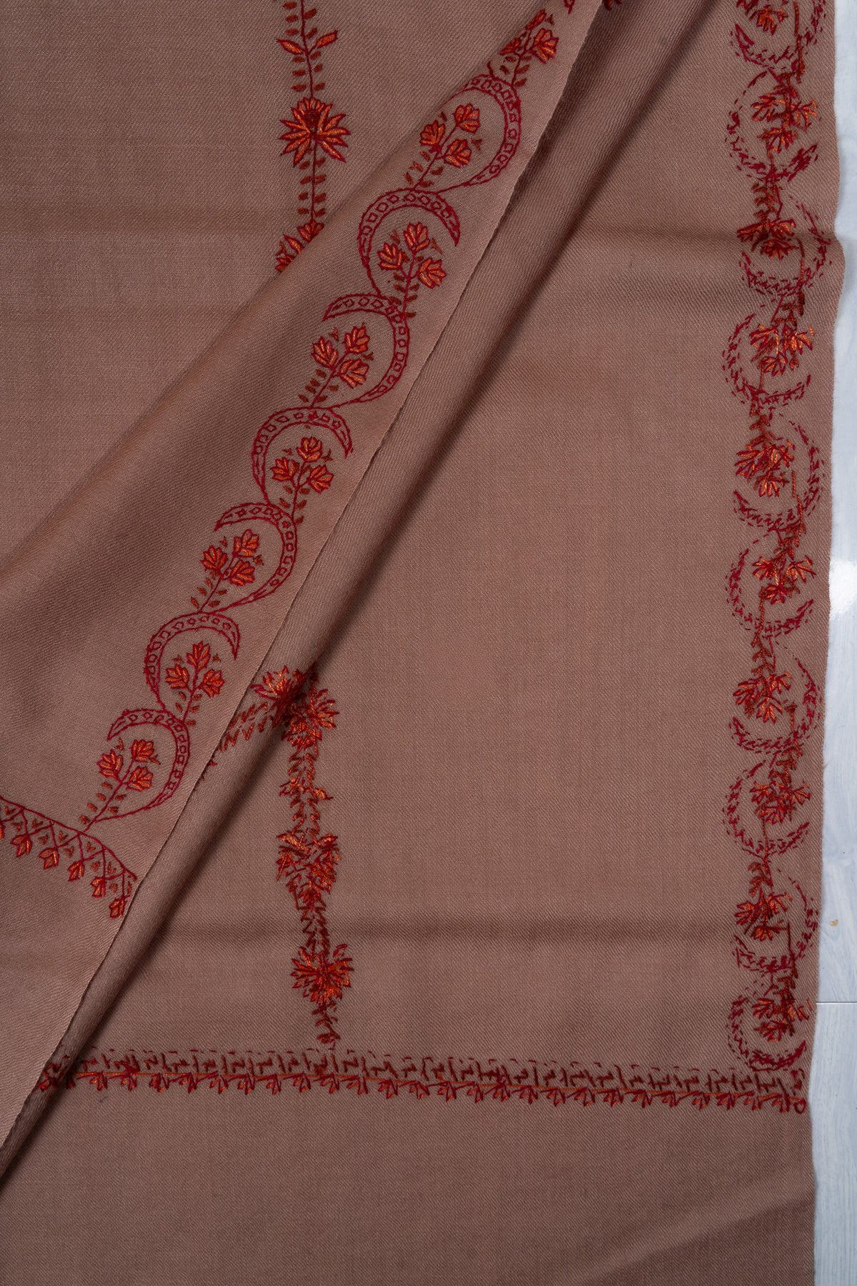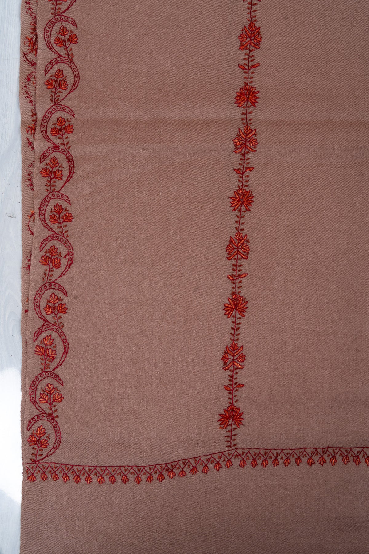 Blush Clay Sozni Hand Embroidered Merino Wool Shawl