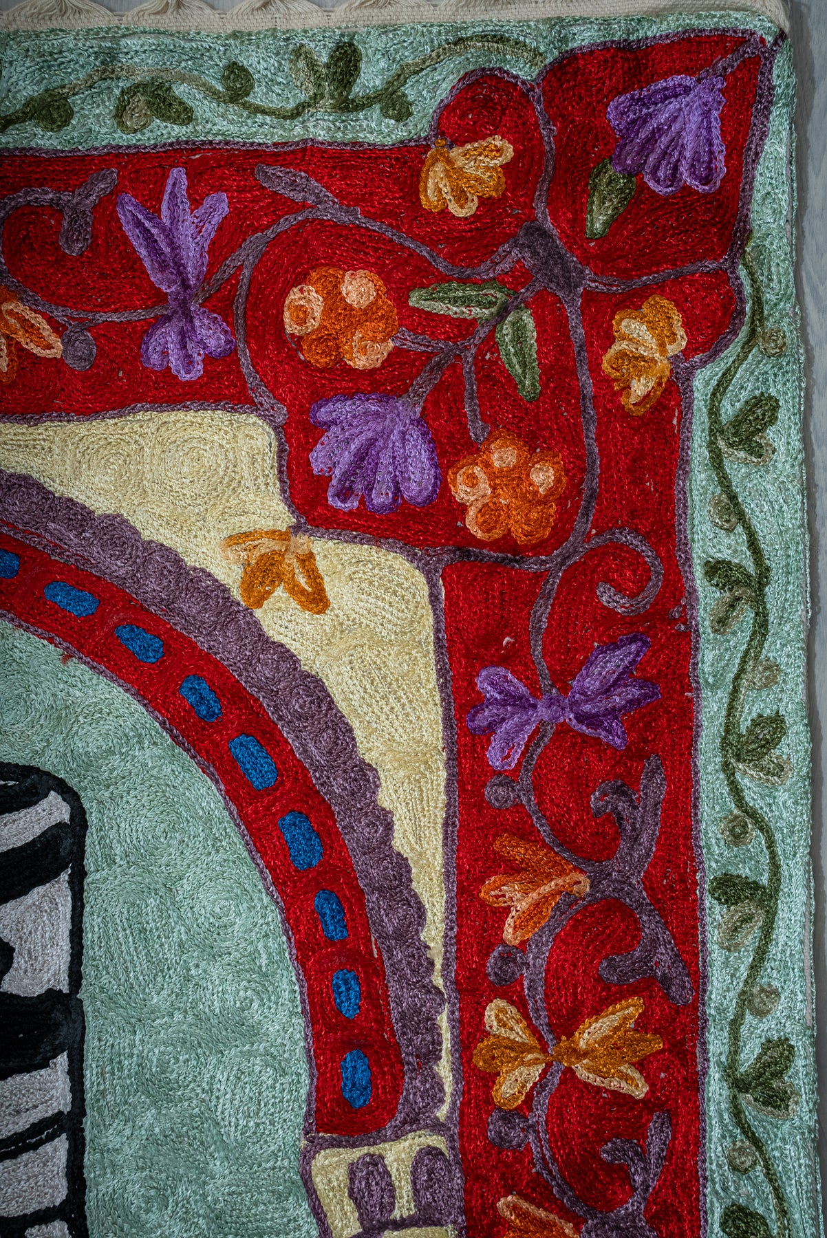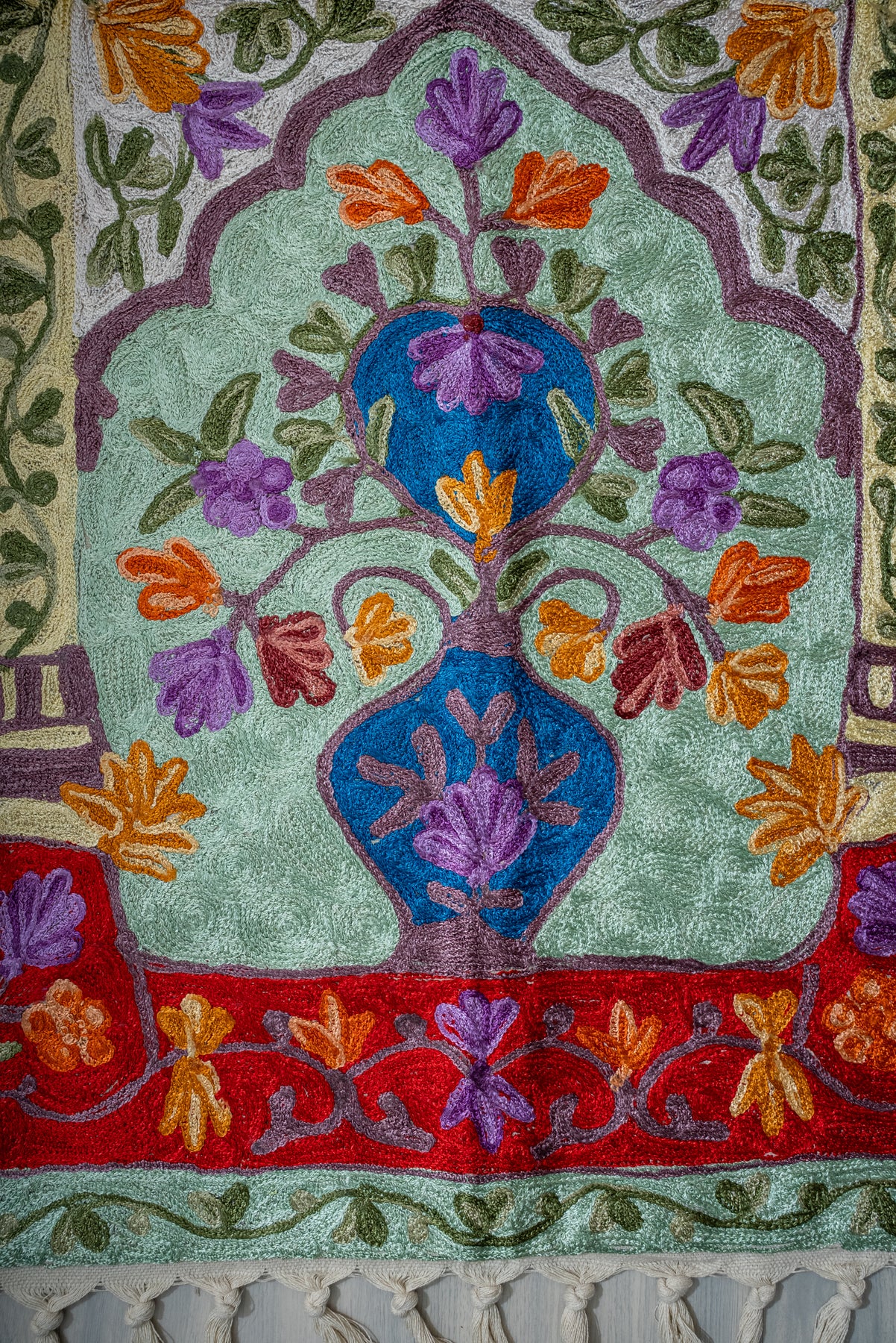Crimson Arch Sanctuary: Hand Embroidered Jainimaz (Prayer Mat)
