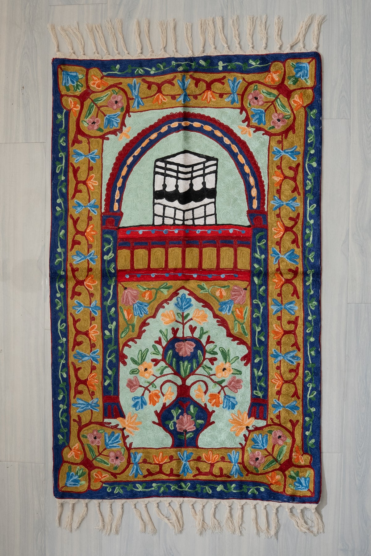 Meticulously embroidered, the detailing in every vine and motif adds richness and dimension. Its harmonious layout provides a serene and comforting space, making it both a functional and artistic addition to your prayer essentials.