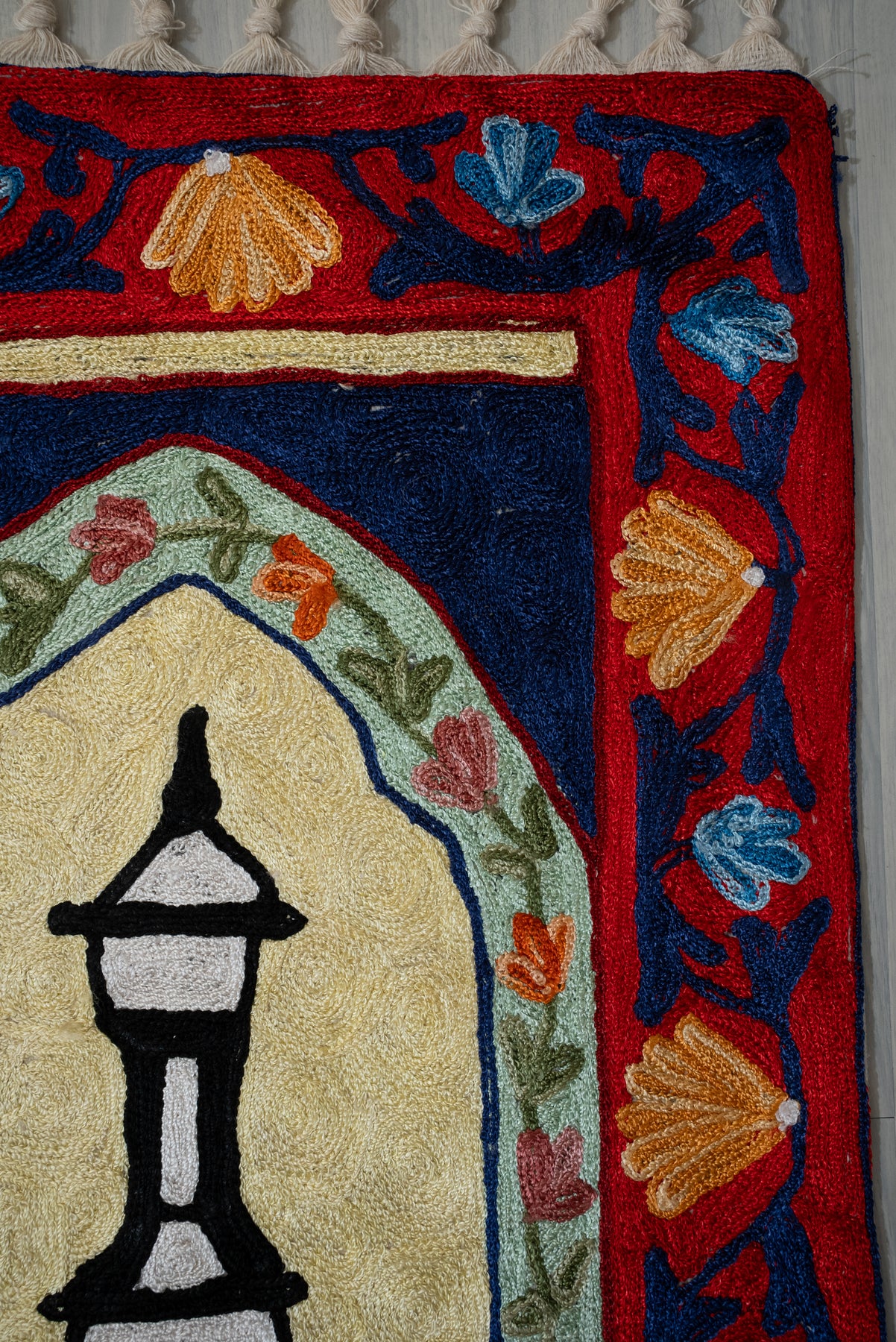 Midnight Minaret Bloom: Hand Embroidered Jainimaz (Prayer Mat)