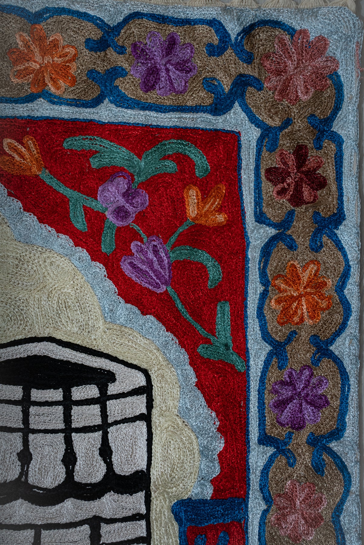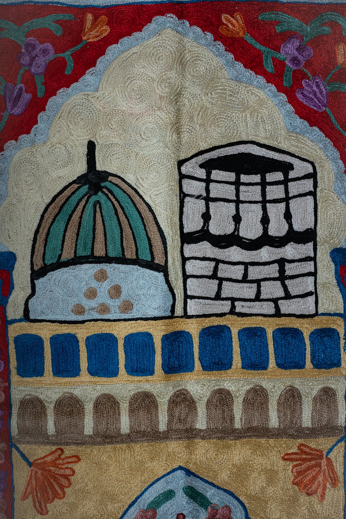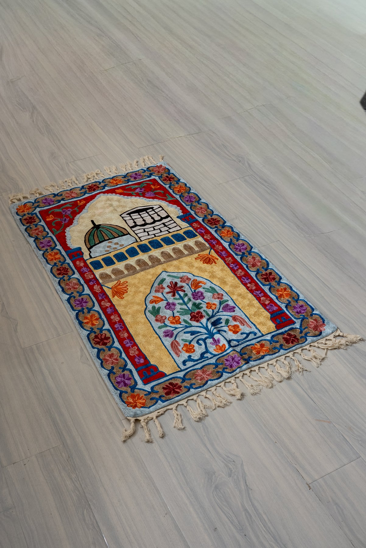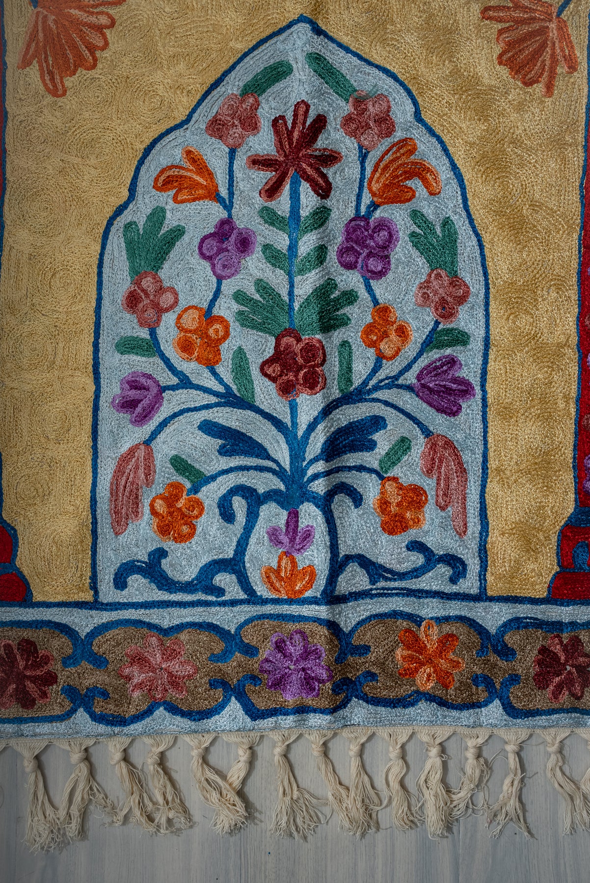 Sacred Blossom Archway: Hand Embroidered Jainimaz (Prayer Mat)