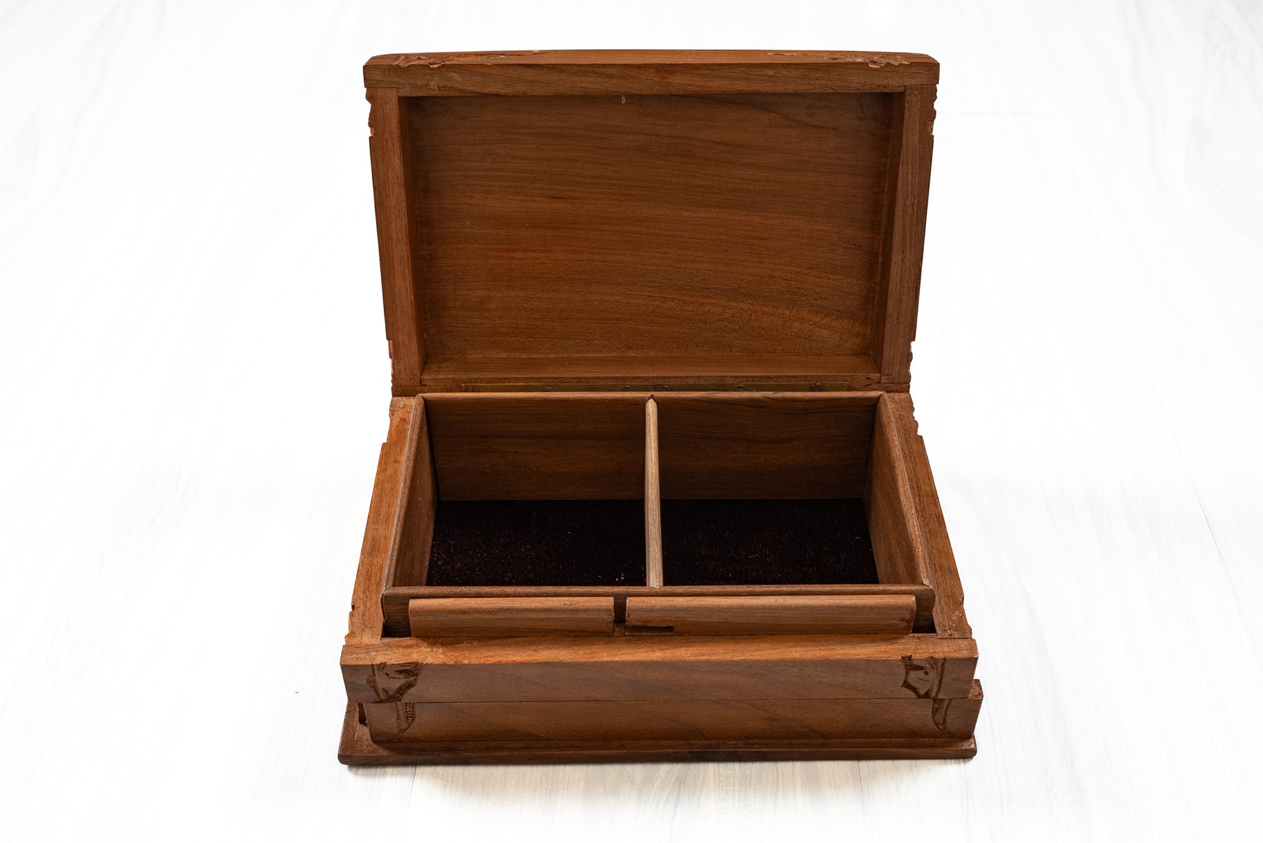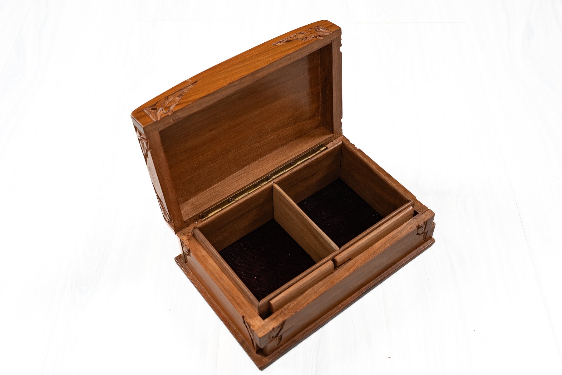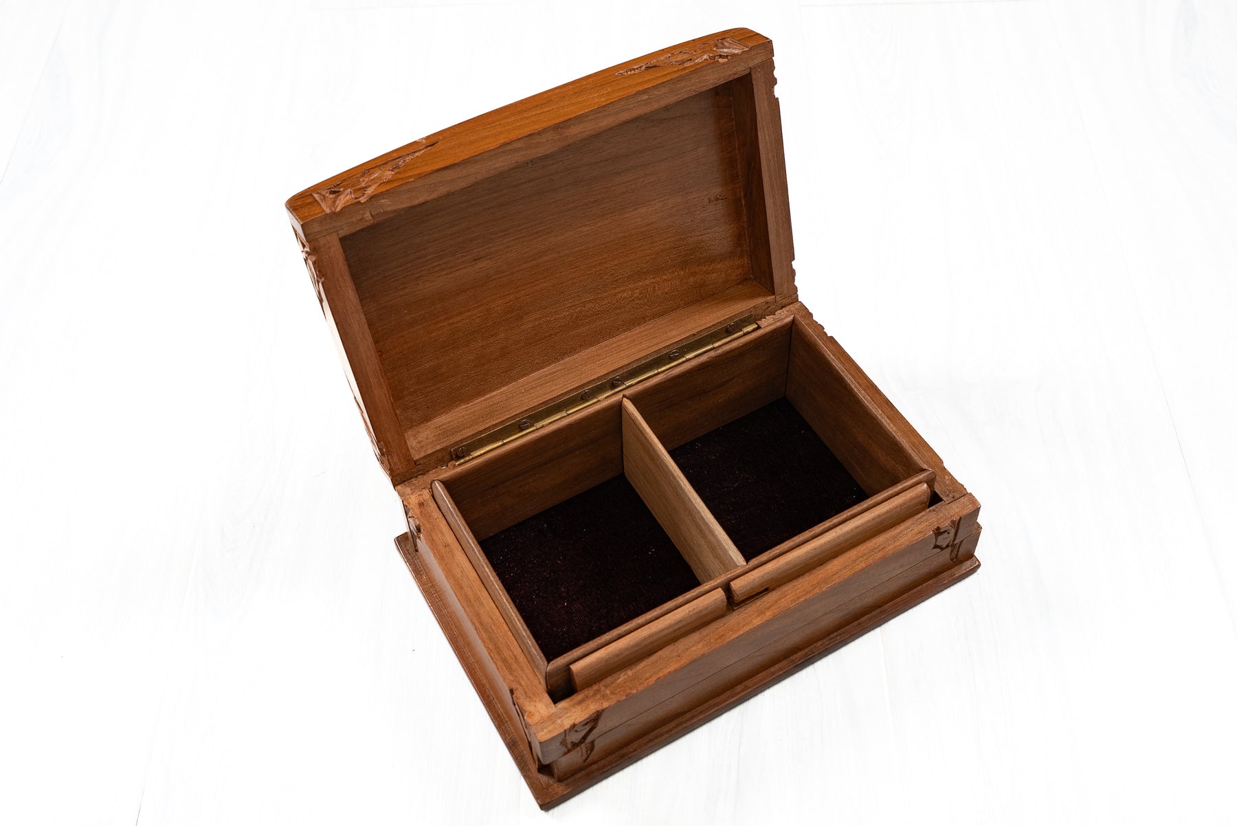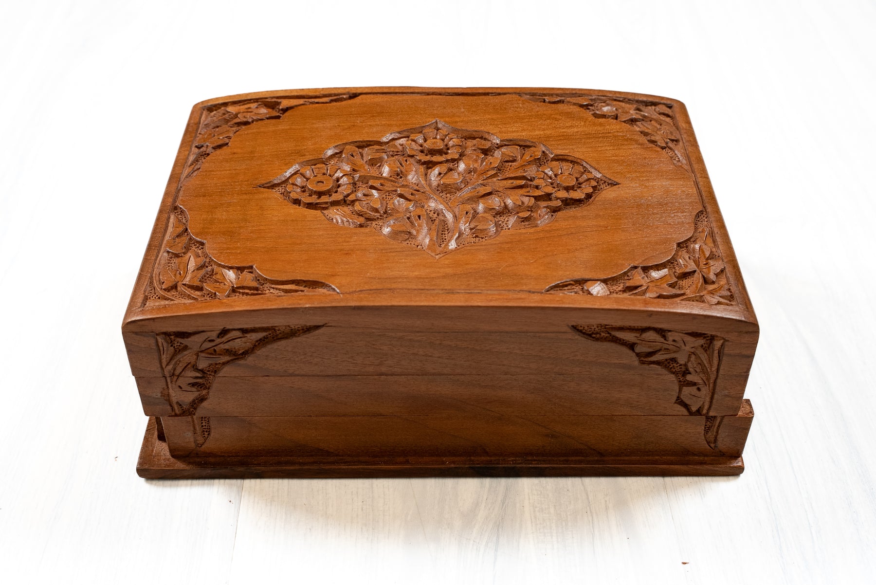 8" x 5" x 3" Petal Crest Elegance: Hand Carved Walnut Wood Wooden Box