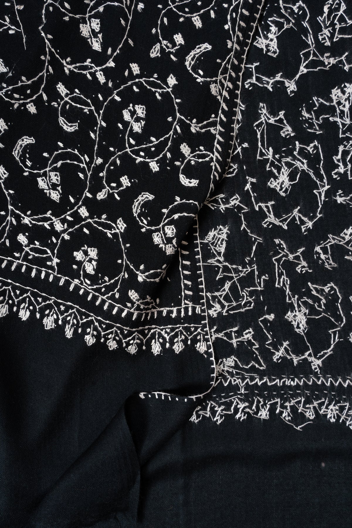 2.5 Yards | Shab-e-Gulzar — Sozni Jaal Hand-Embroidered Shawl in Midnight Black & Ivory White