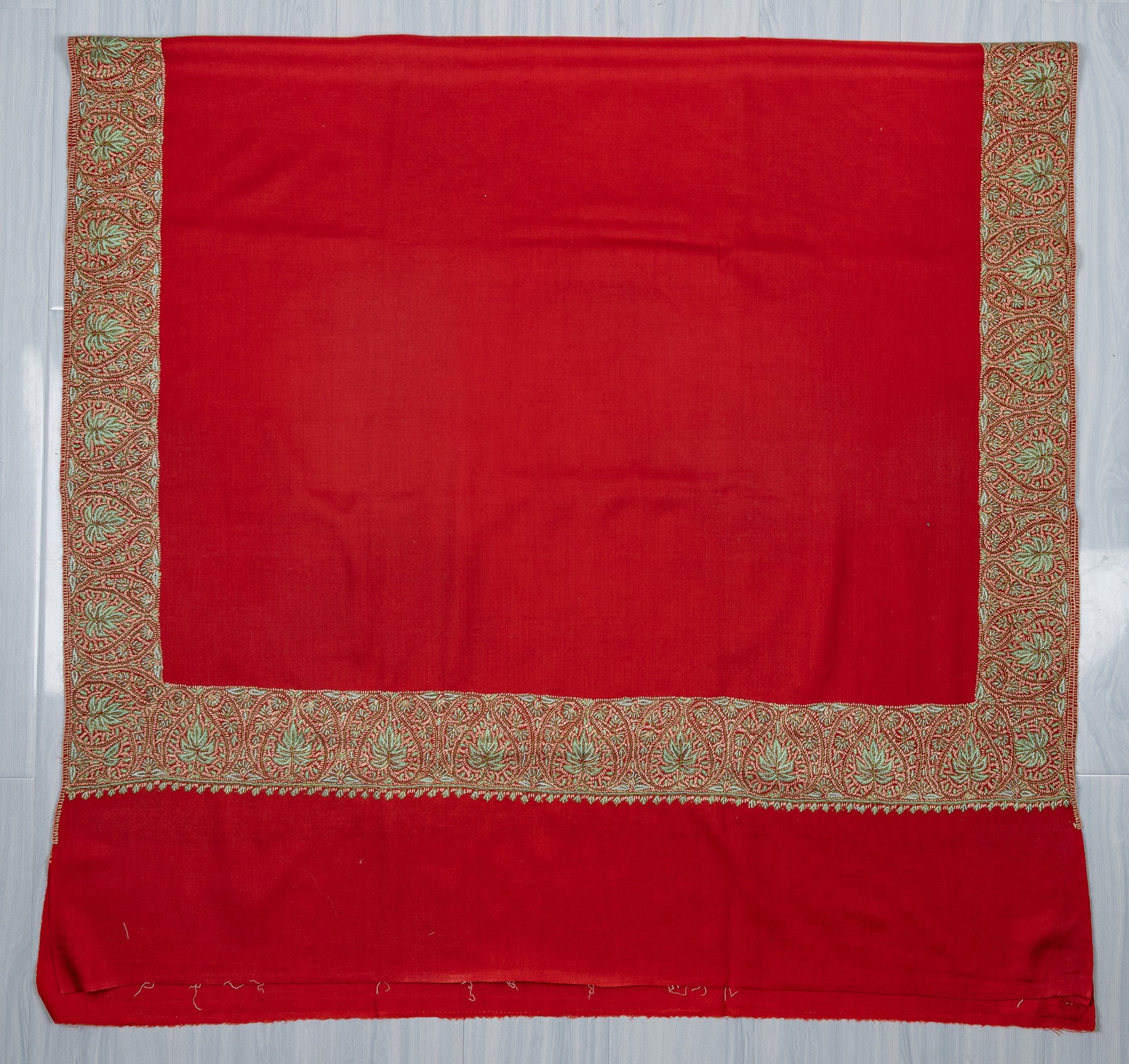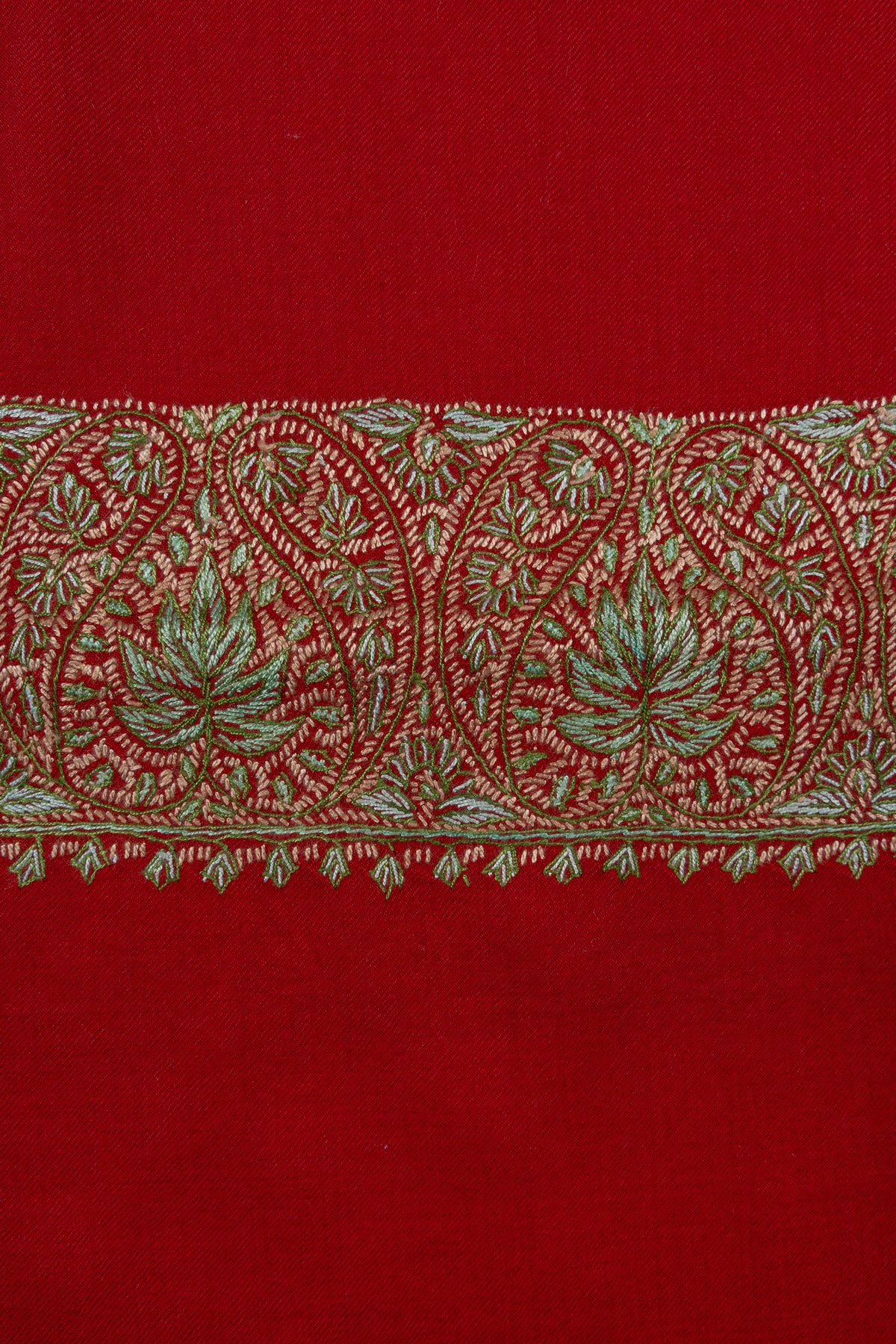 Crimson Aura Merino Wool Shawl with Sozni Hand Embroidered Border