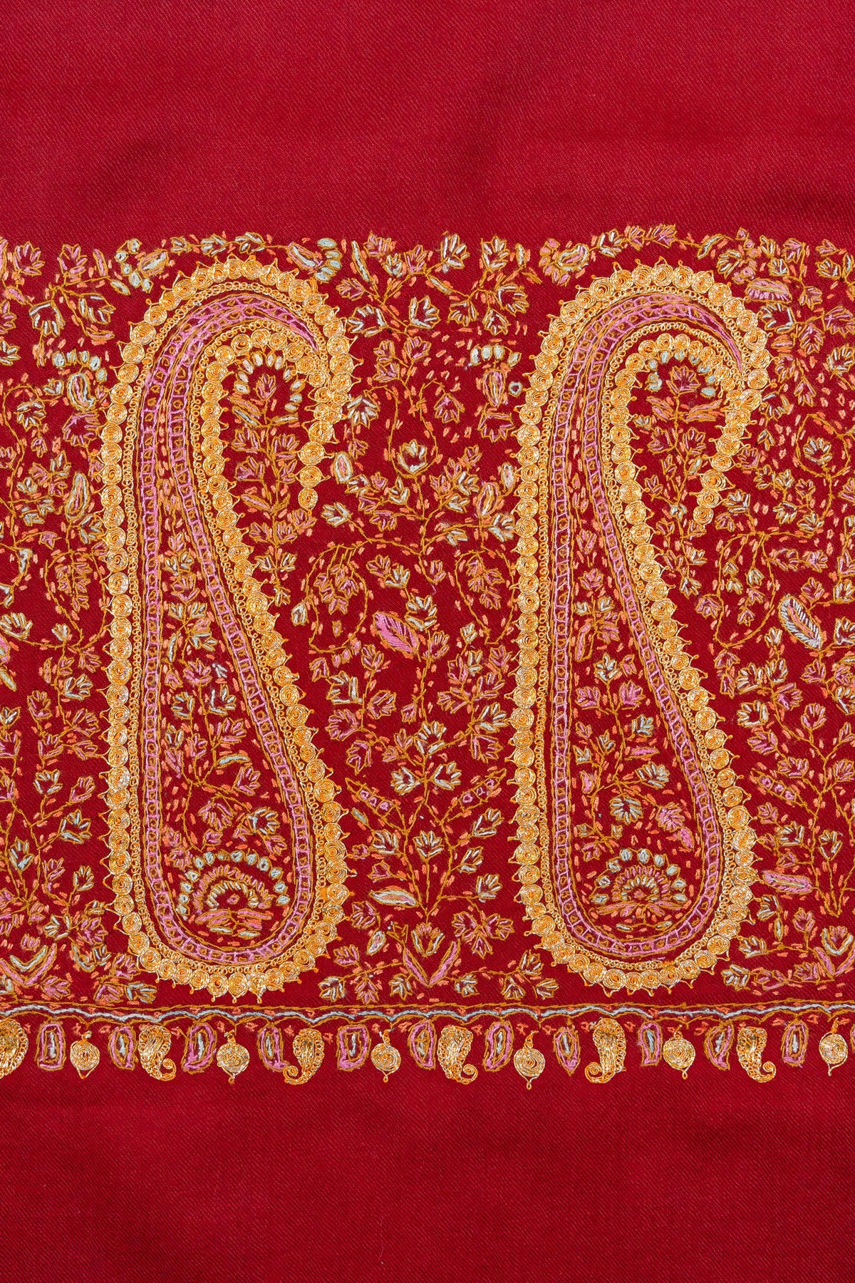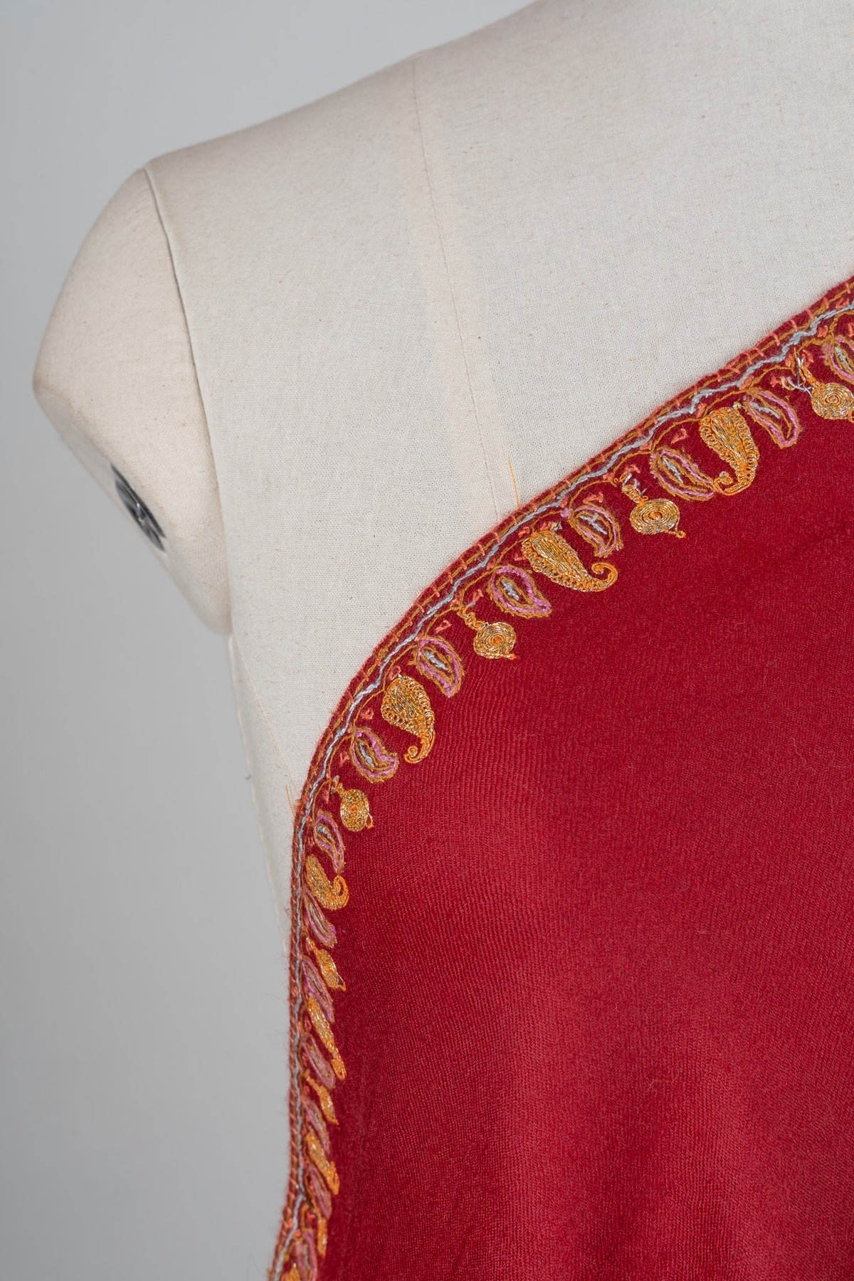 Crimson Legacy Sozni Hand Embroidered Merino Wool Shawl