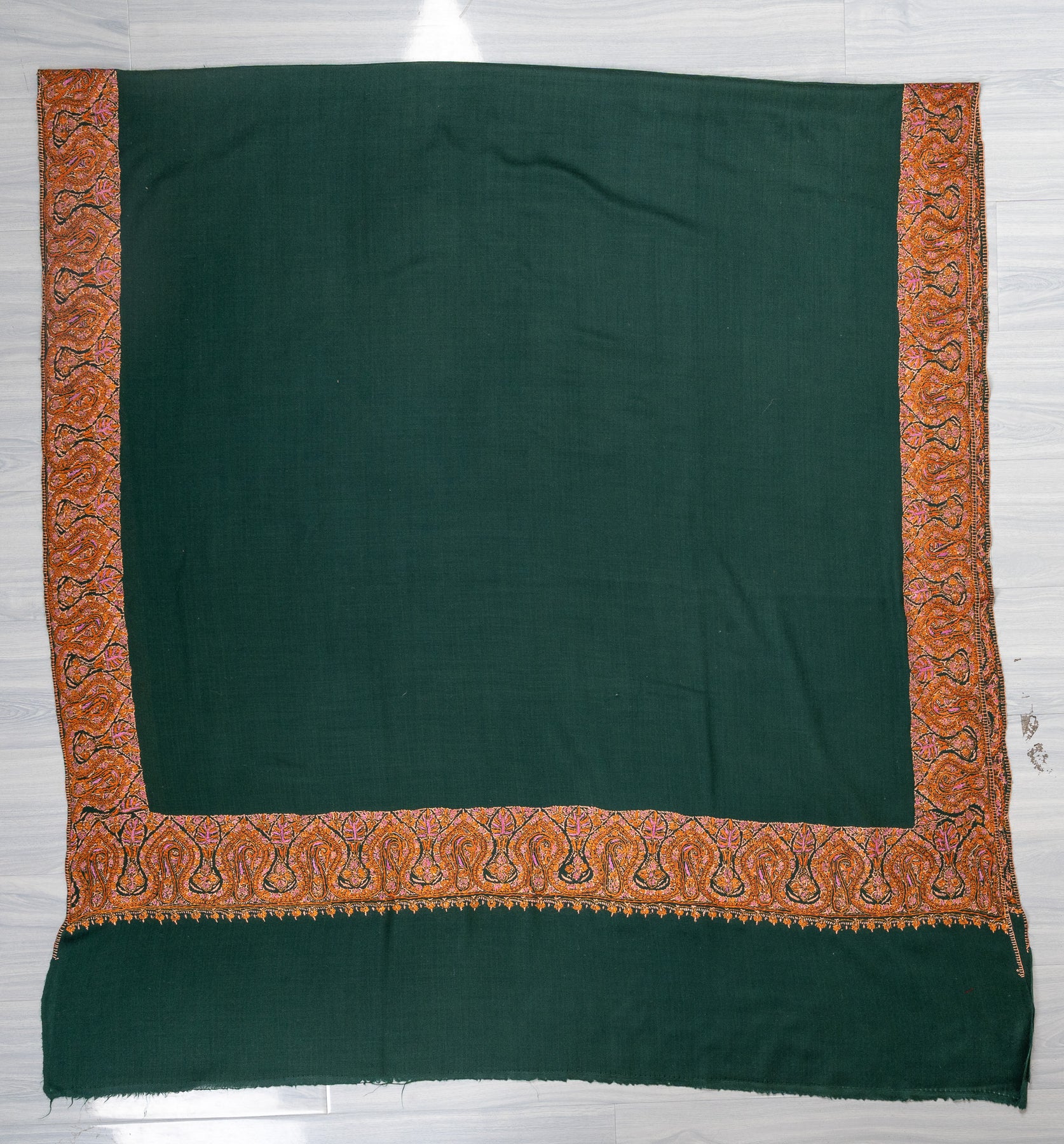 Emerald Poise — 2.5 Yards Sozni Hand-Embroidered Shawl