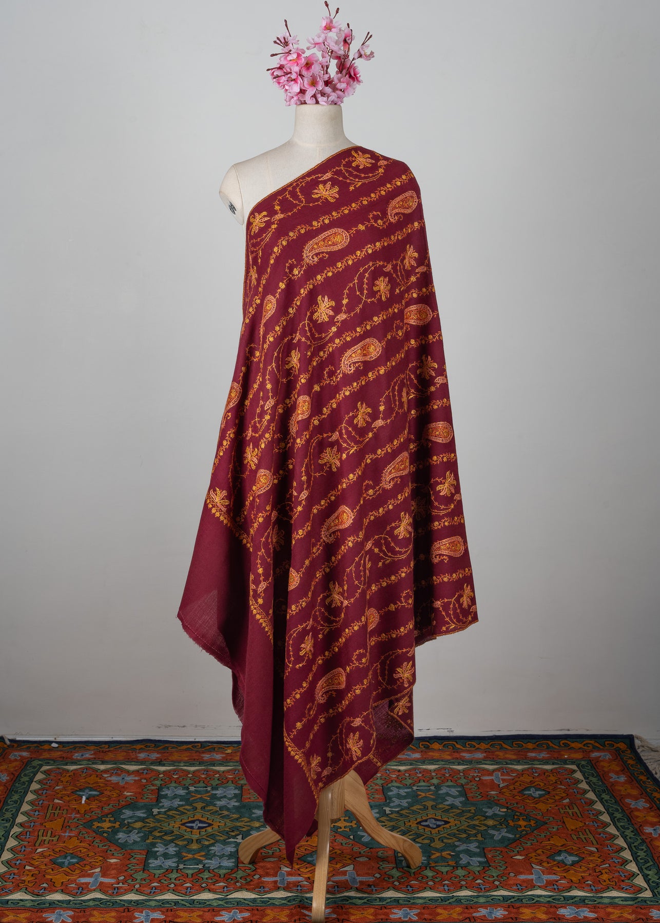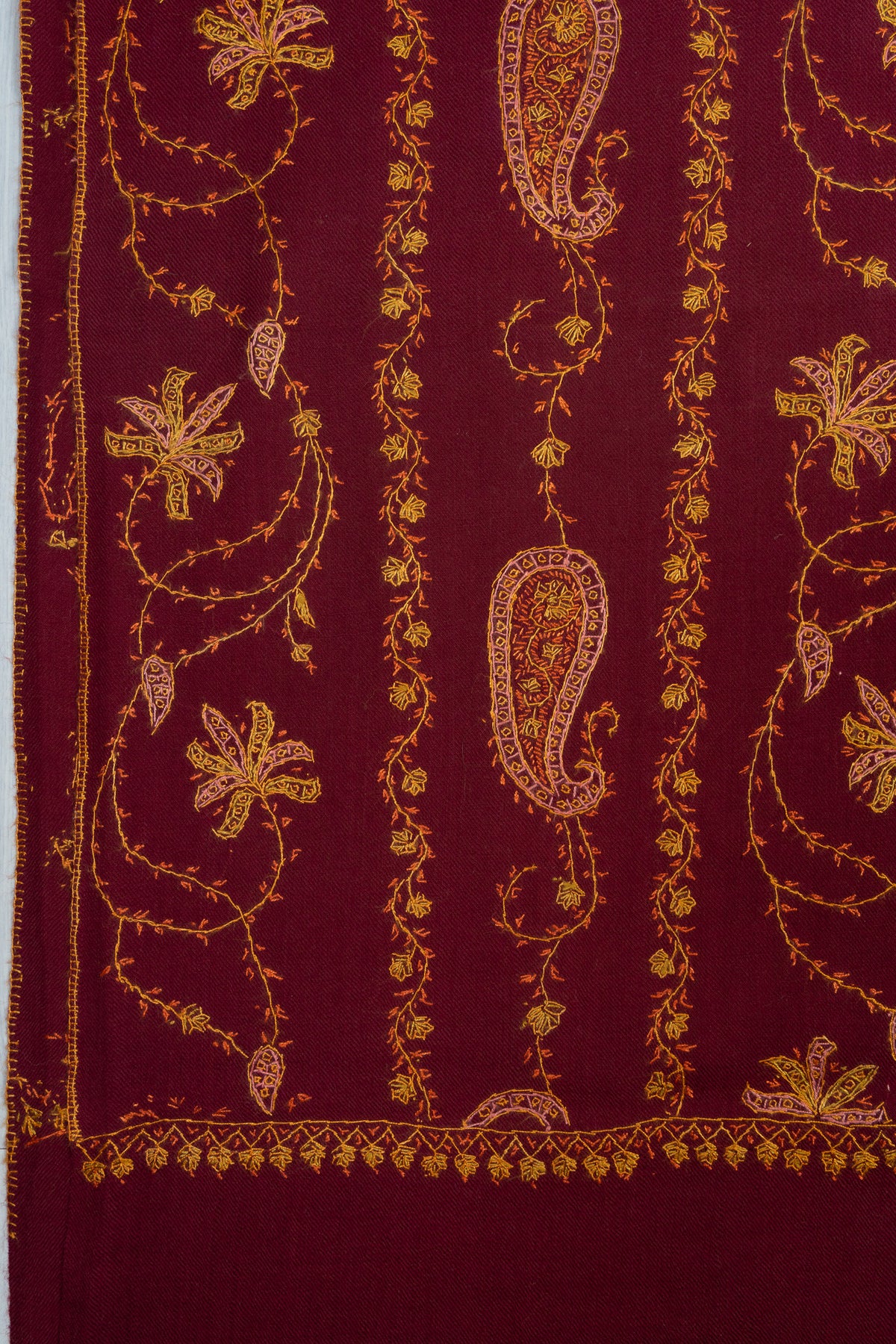 Maroon Harvest Sozni Hand Embroidered Merino Wool Shawl