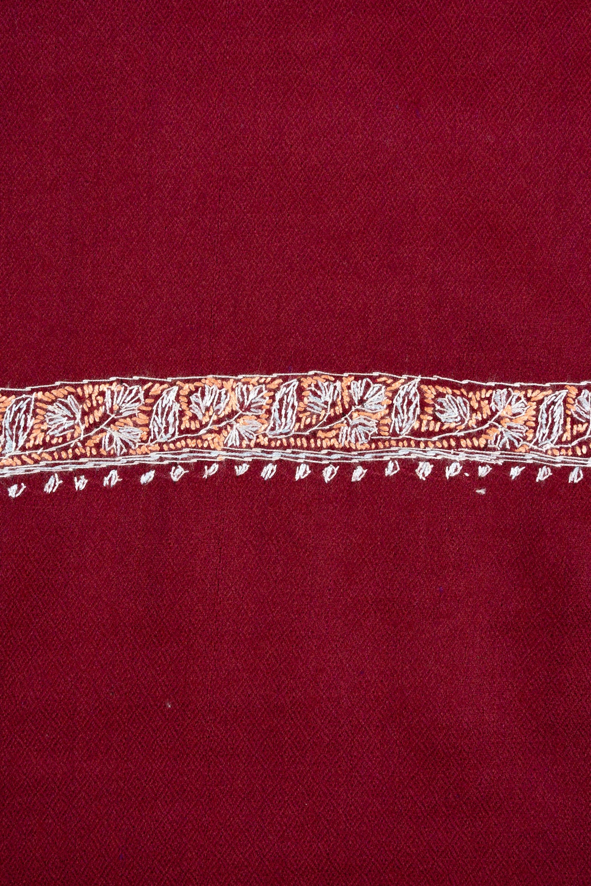 2.5 Yards Sozni Hand Embroidered Shawl in Deep Wine Grace