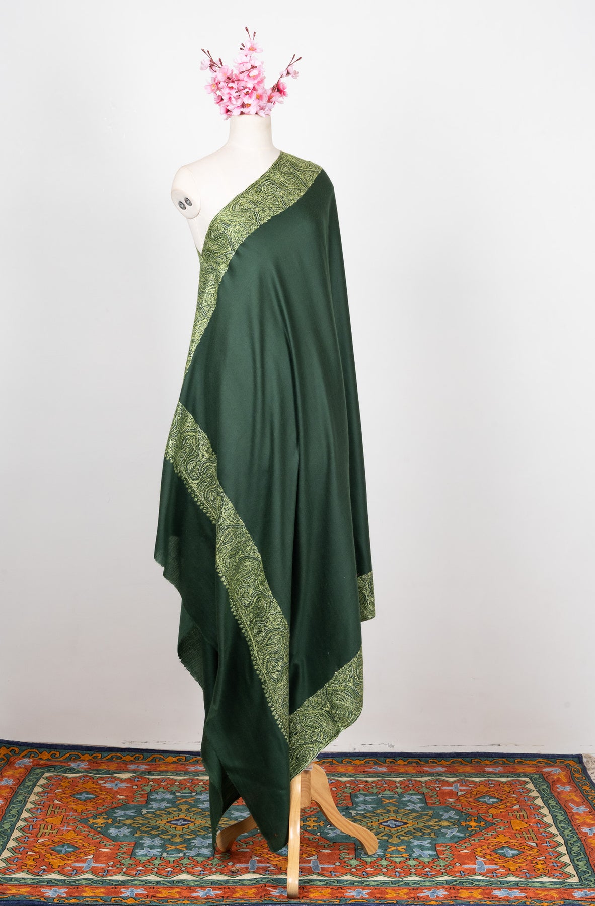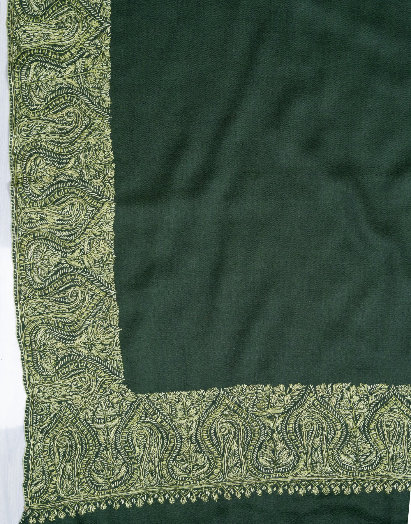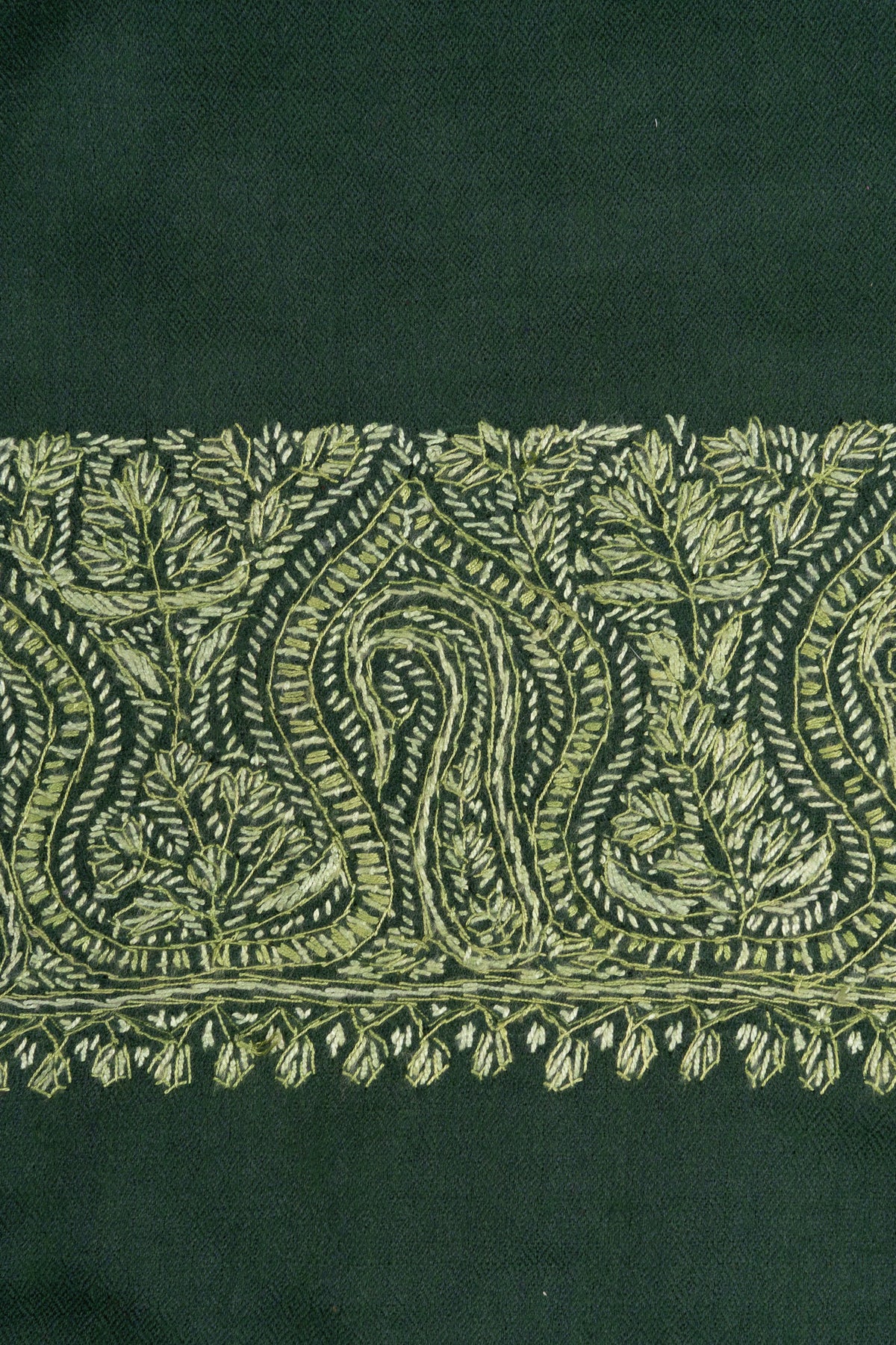 2.5 Yards Sozni Hand Embroidered Shawl in Forest Green Paisley Panel