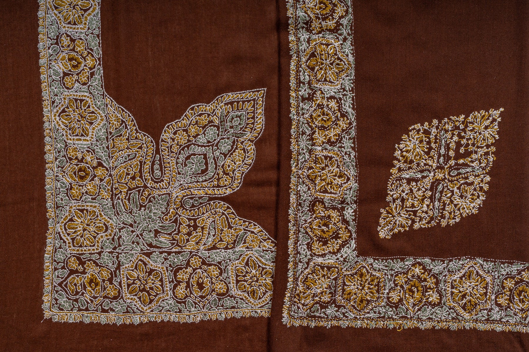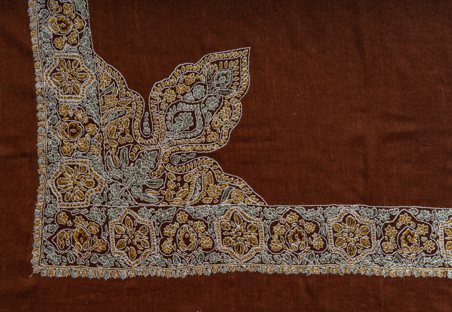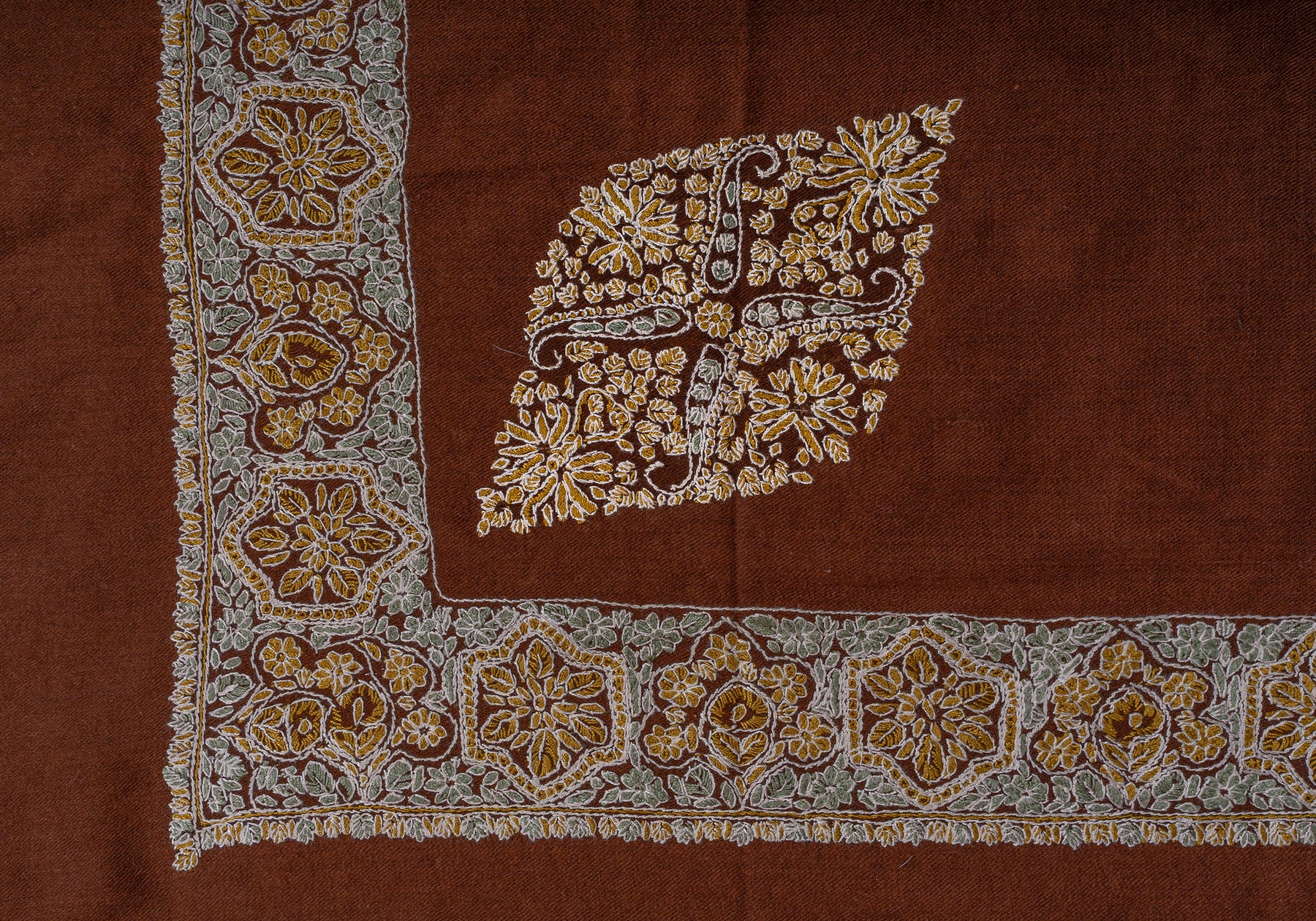 Wrap yourself in the elegance of Kashmir with the Amber Bloom Rumal — Sozni Hand Embroidered, a hand-embroidered masterpiece designed for both tradition and modern grace. Crafted from ultra-fine 120-count merino wool, this Rumal is feather-light, breathable, and soft against the skin. Measuring 54 inches square, it is the perfect size for styling as a tarha/hijab, shoulder wrap, or refined layering piece.