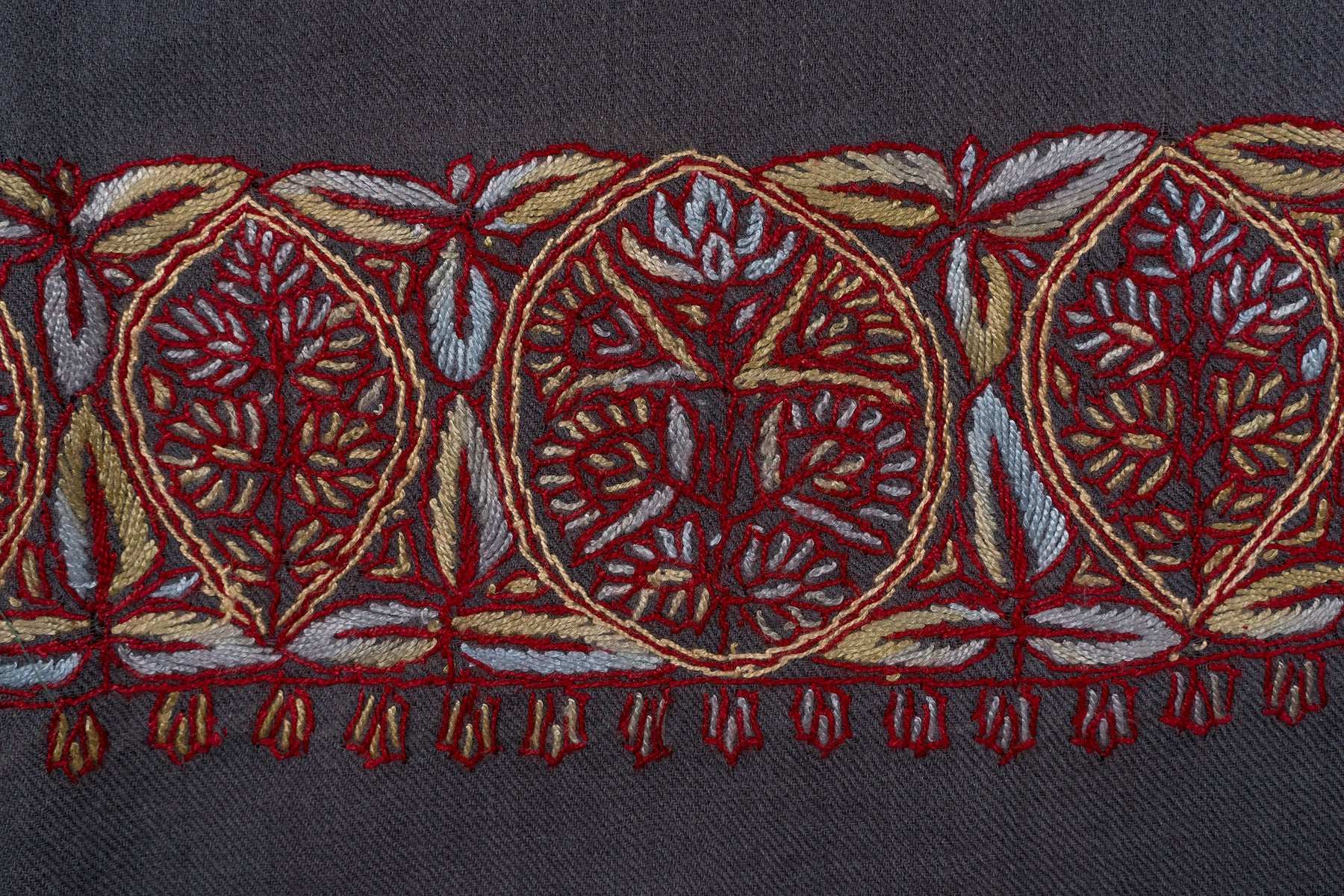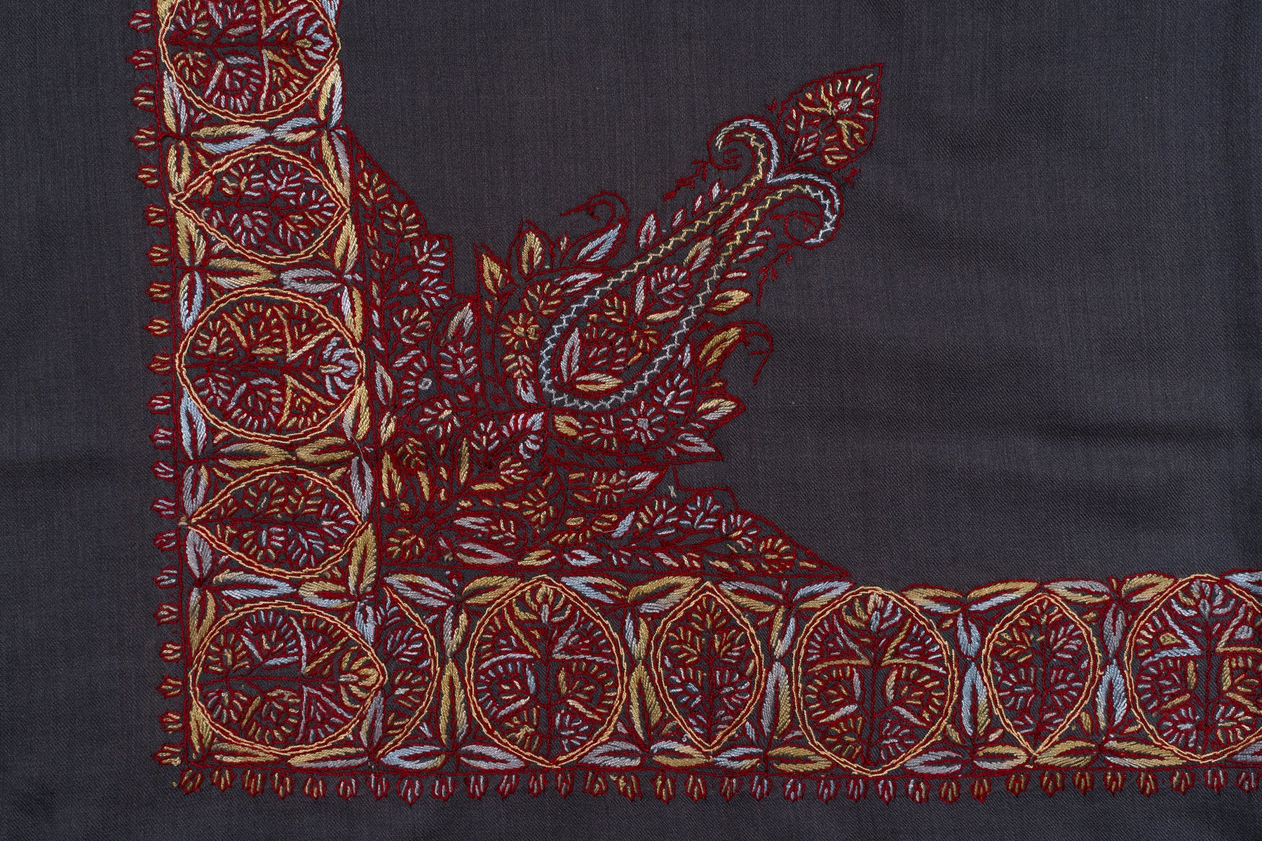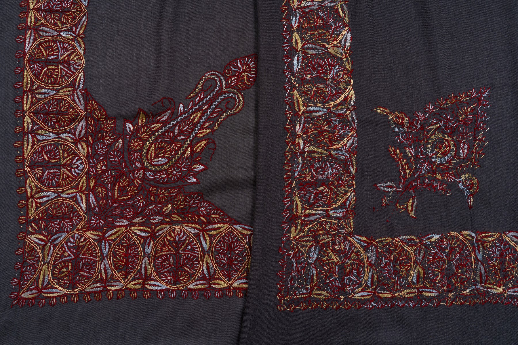Charcoal Crimson Rumal — Sozni Hand Embroidered