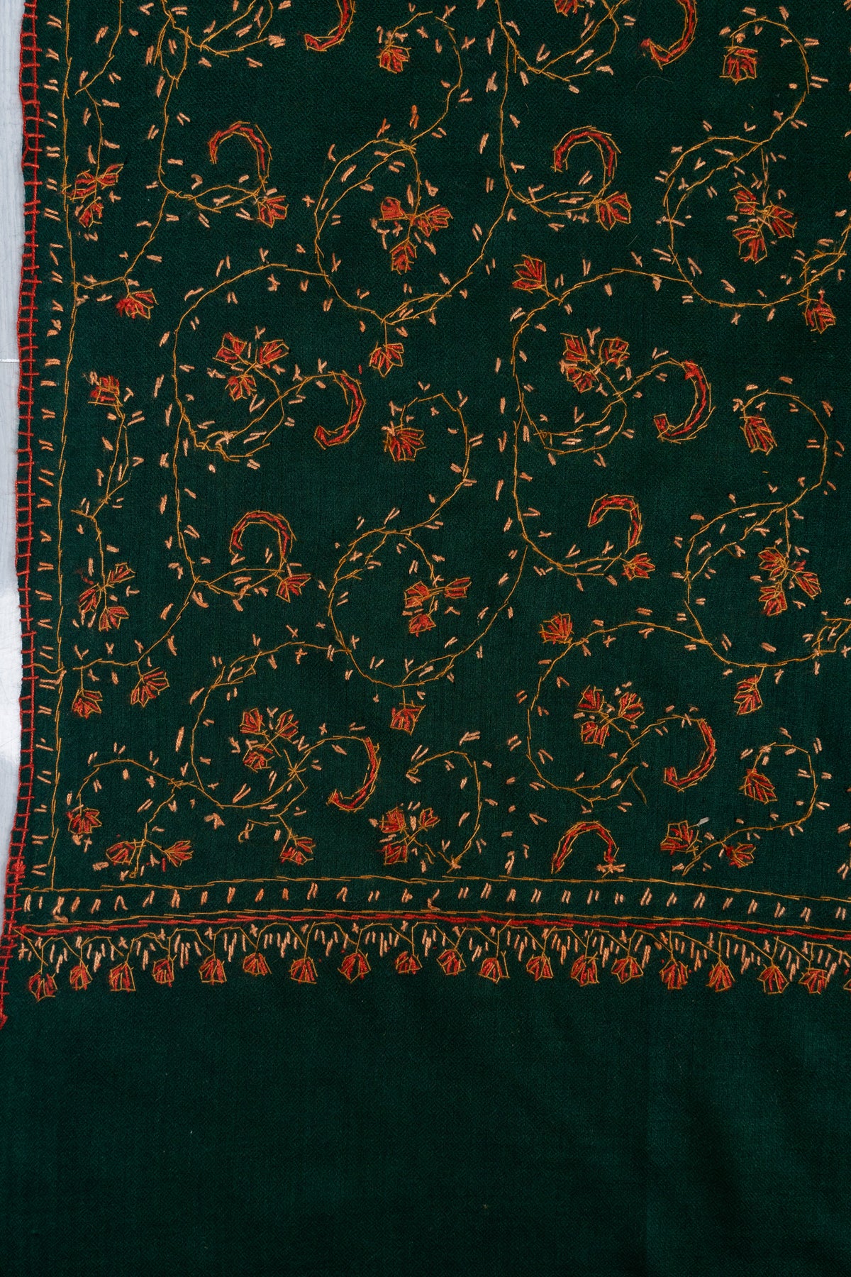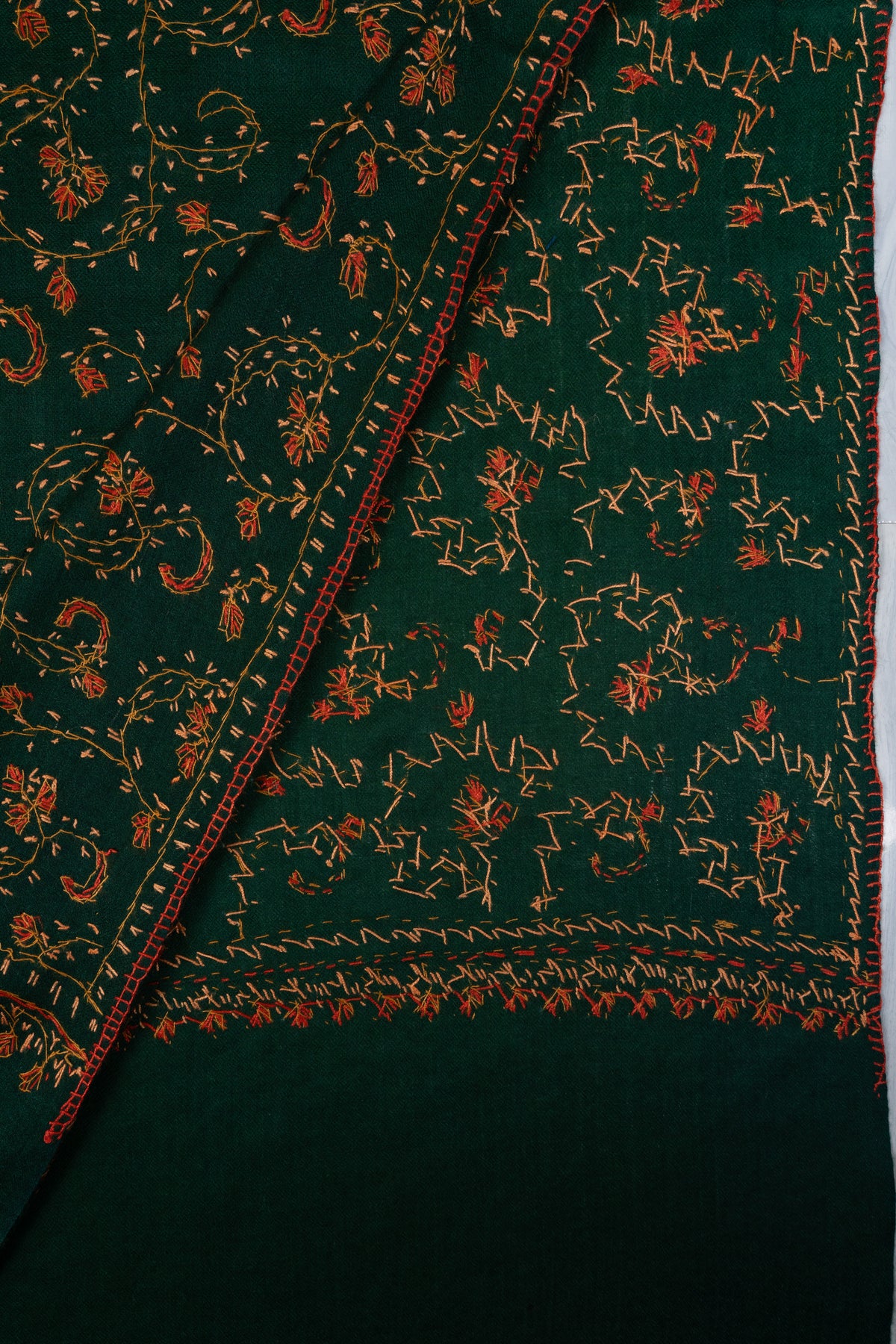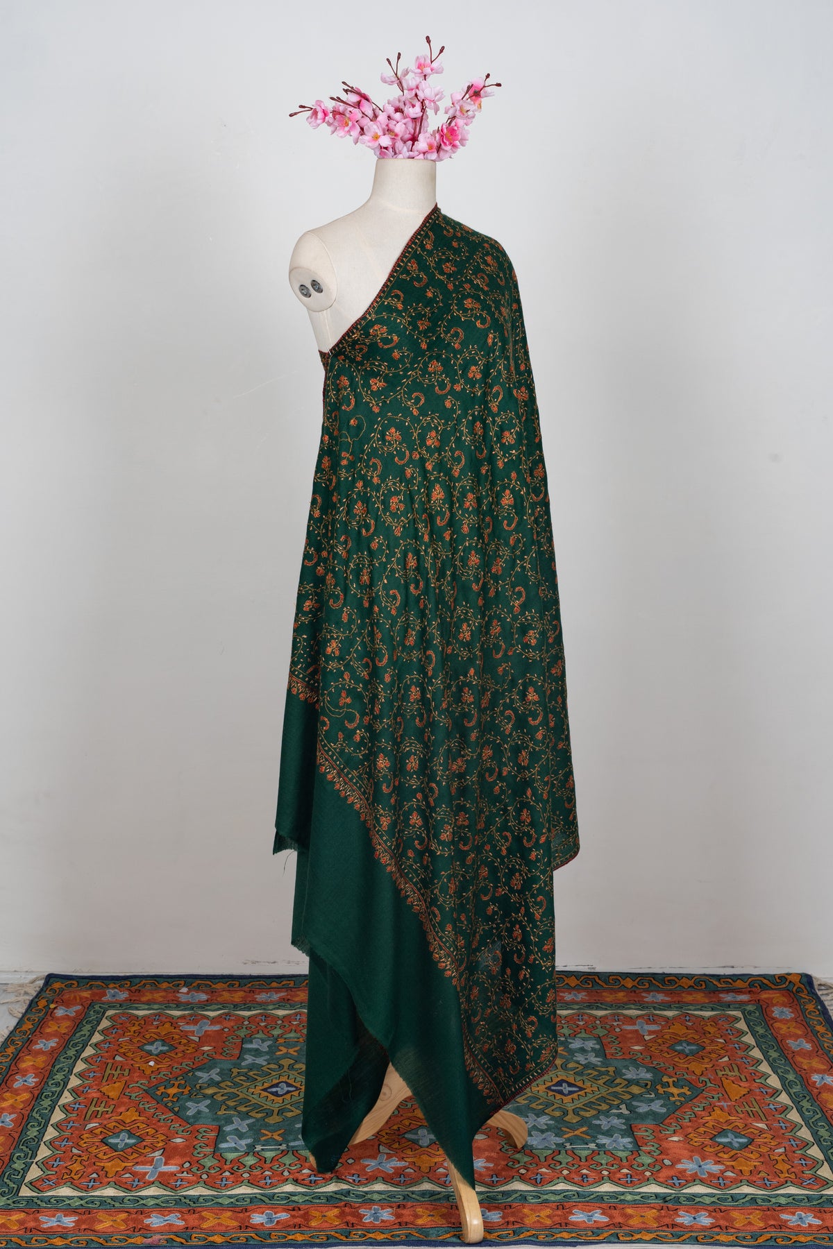 Emerald Heritage Bloom: Merino wool 2.5 Yards Sozni Hand Embroidered Shawl