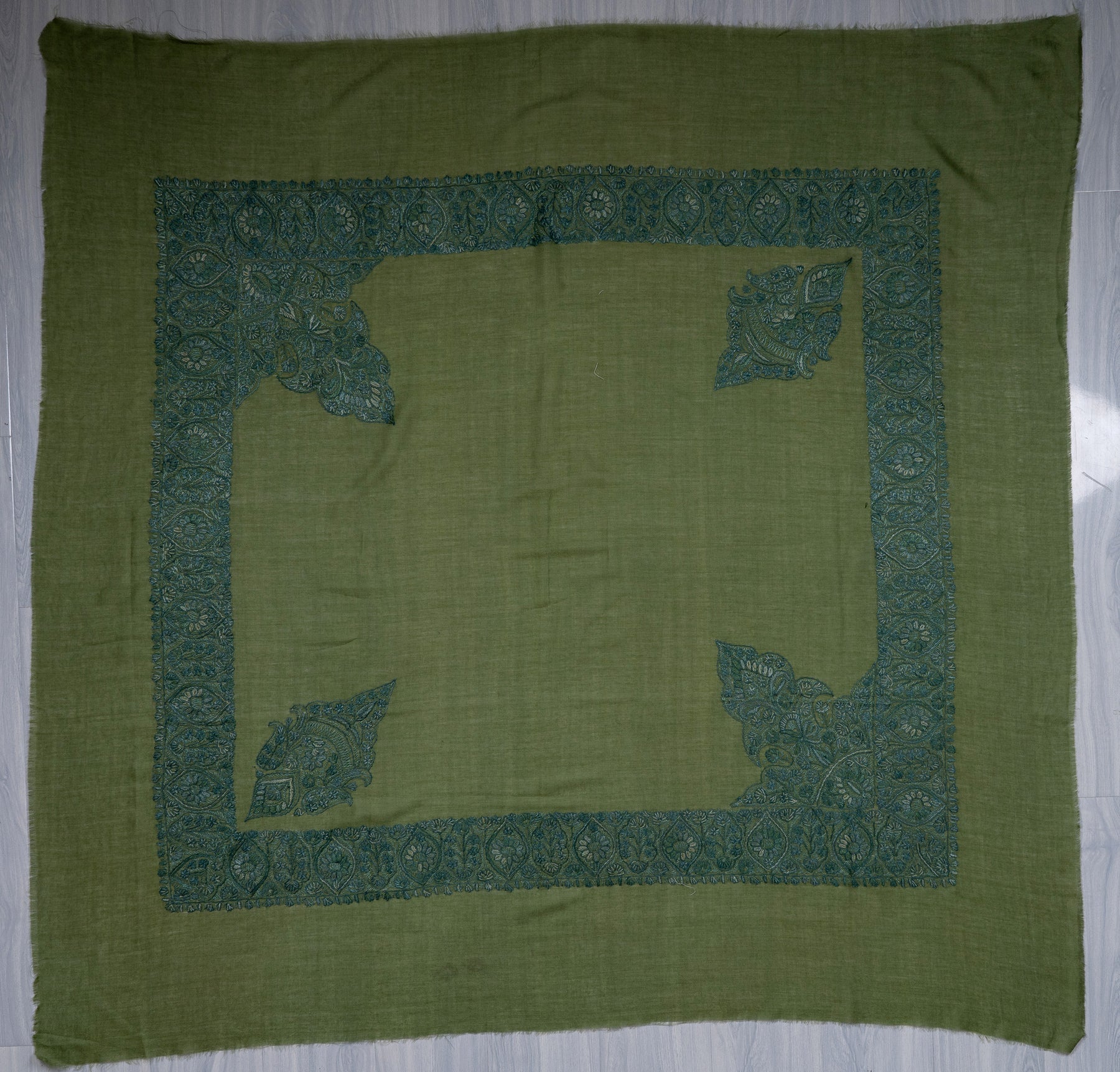 Immerse yourself in Kashmiri grace with the Meadow Leaf Rumal — Sozni Hand Embroidered, crafted from ultra-fine 120-count merino wool for supreme softness. Sized at 54 inches, this feather-light rumal is perfect as a tarha/hijab, layering wrap, or statement piece.