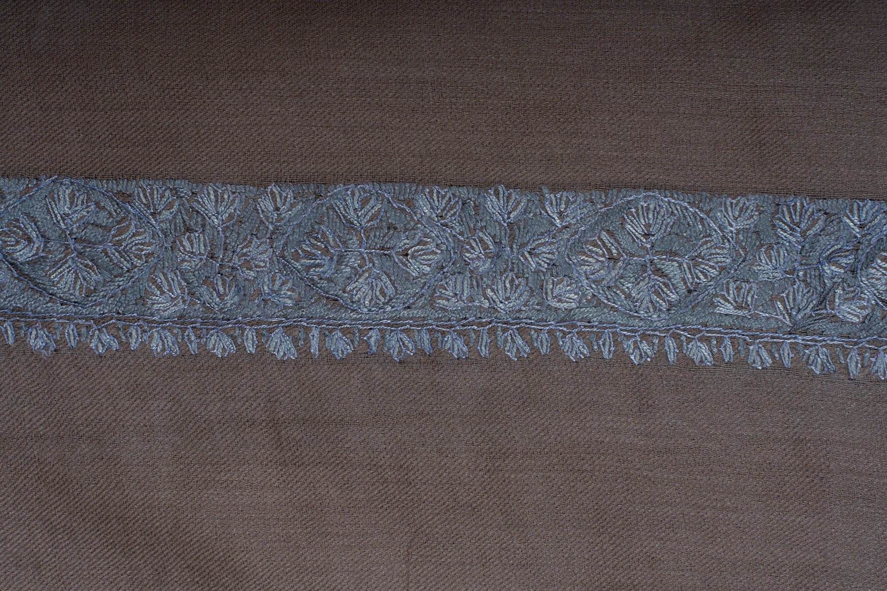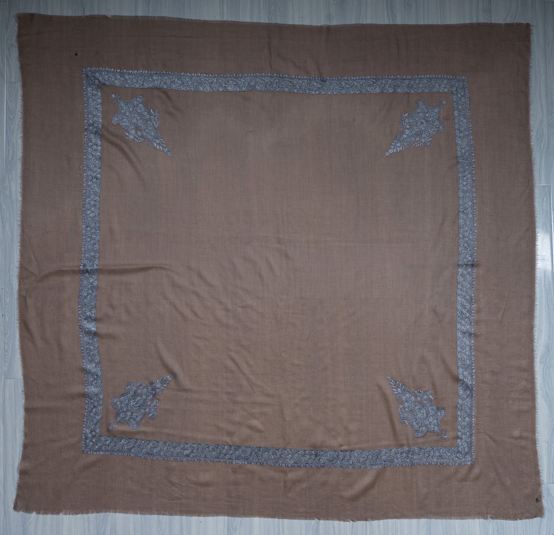 Wrap yourself in the elegance of Kashmir with the Mocha Frost Rumal — Sozni Hand Embroidered, a hand-embroidered masterpiece designed for both tradition and modern grace. Crafted from ultra-fine 120-count merino wool, this Rumal is feather-light, breathable, and soft against the skin. Measuring 54 inches square, it is the perfect size for styling as a tarha/hijab, shoulder wrap, or refined layering piece.