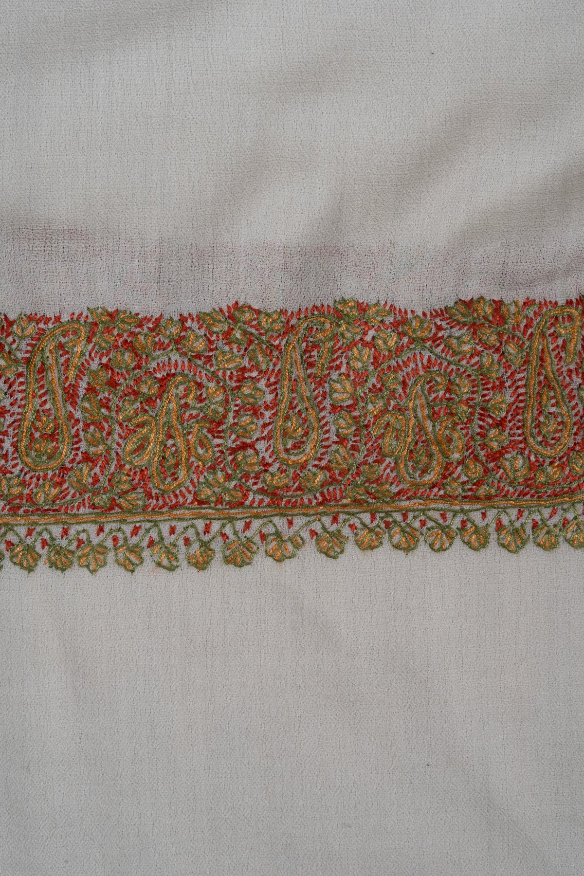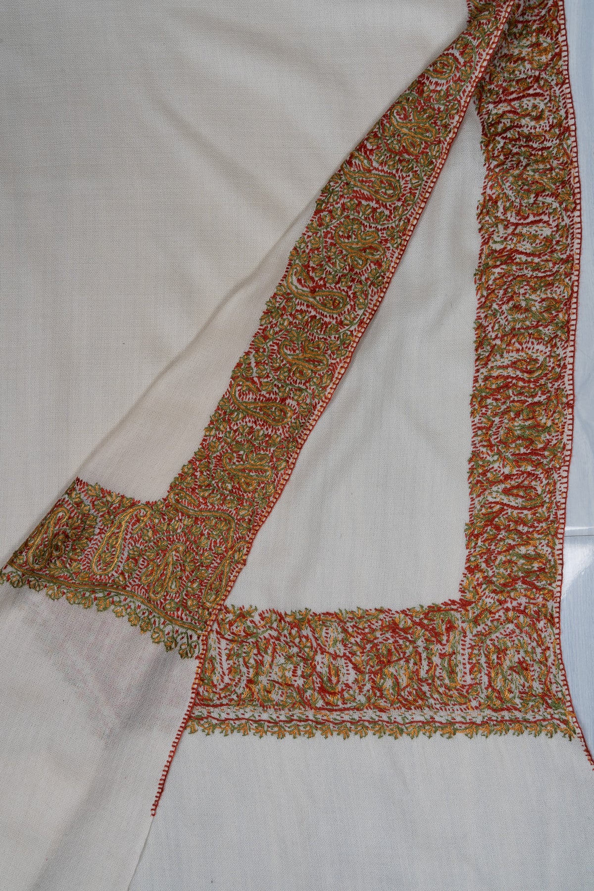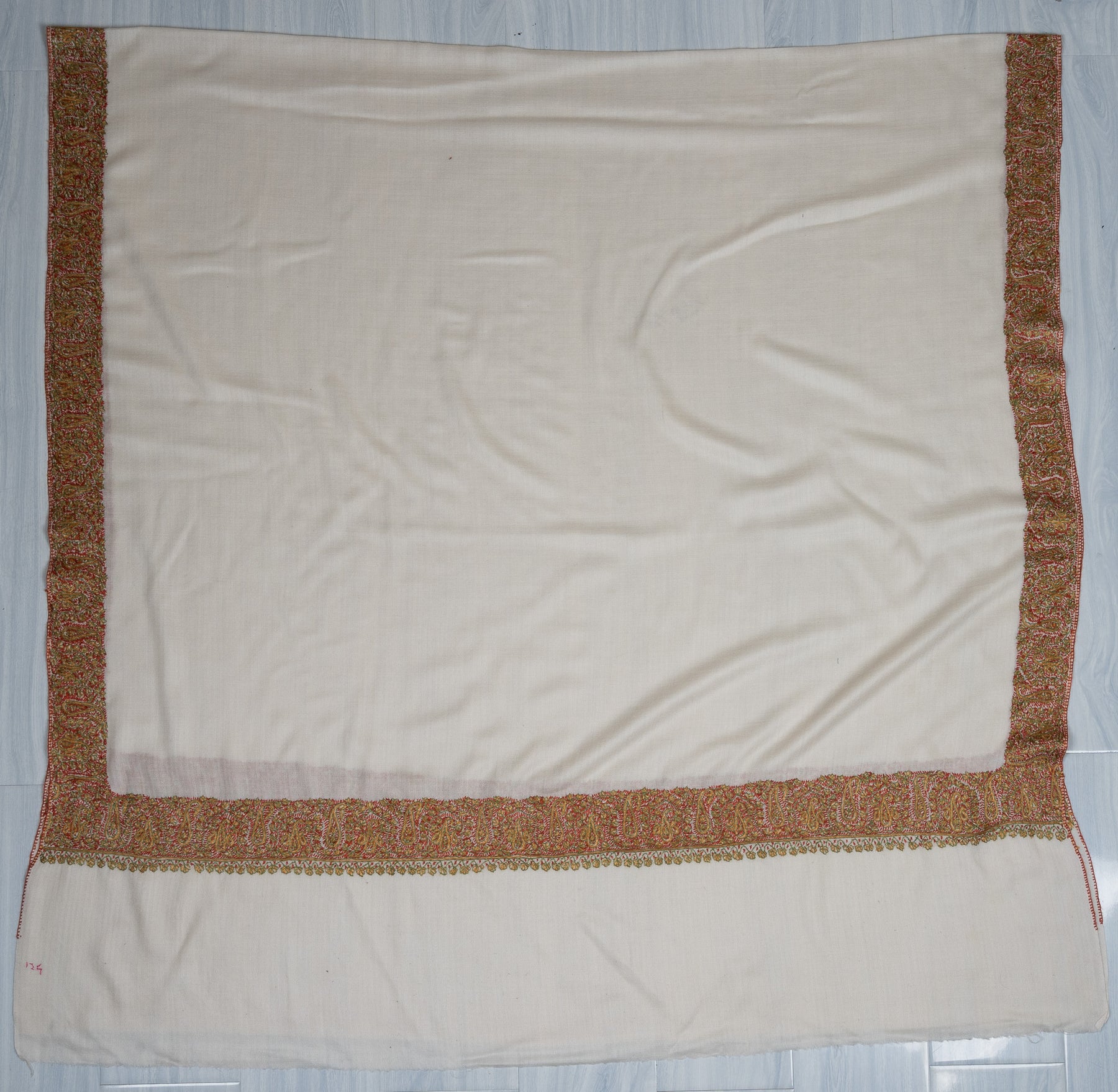2.5 Yards Sozni Hand Embroidered Shawl in Classic Ivory Gold Border