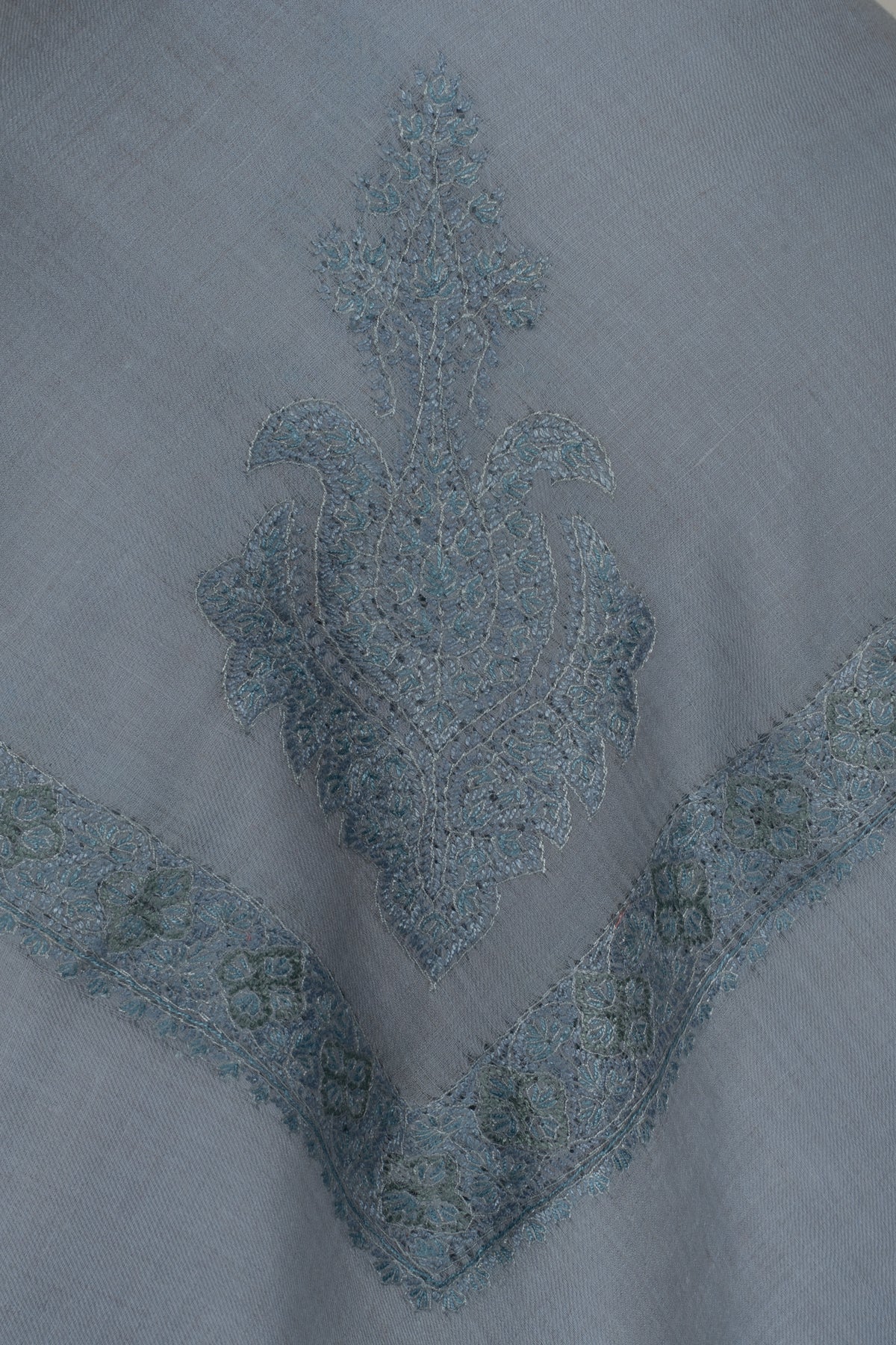 Wrap yourself in the elegance of Kashmir with the Blue Haze Rumal — Sozni Hand Embroidered, a hand-embroidered masterpiece designed for both tradition and modern grace. Crafted from Cashmere wool, this Rumal is feather-light, breathable, and soft against the skin. Measuring 54 x 54 inches square, it is the perfect size for styling as a tarha/hijab, shoulder wrap, or a refined layering piece.