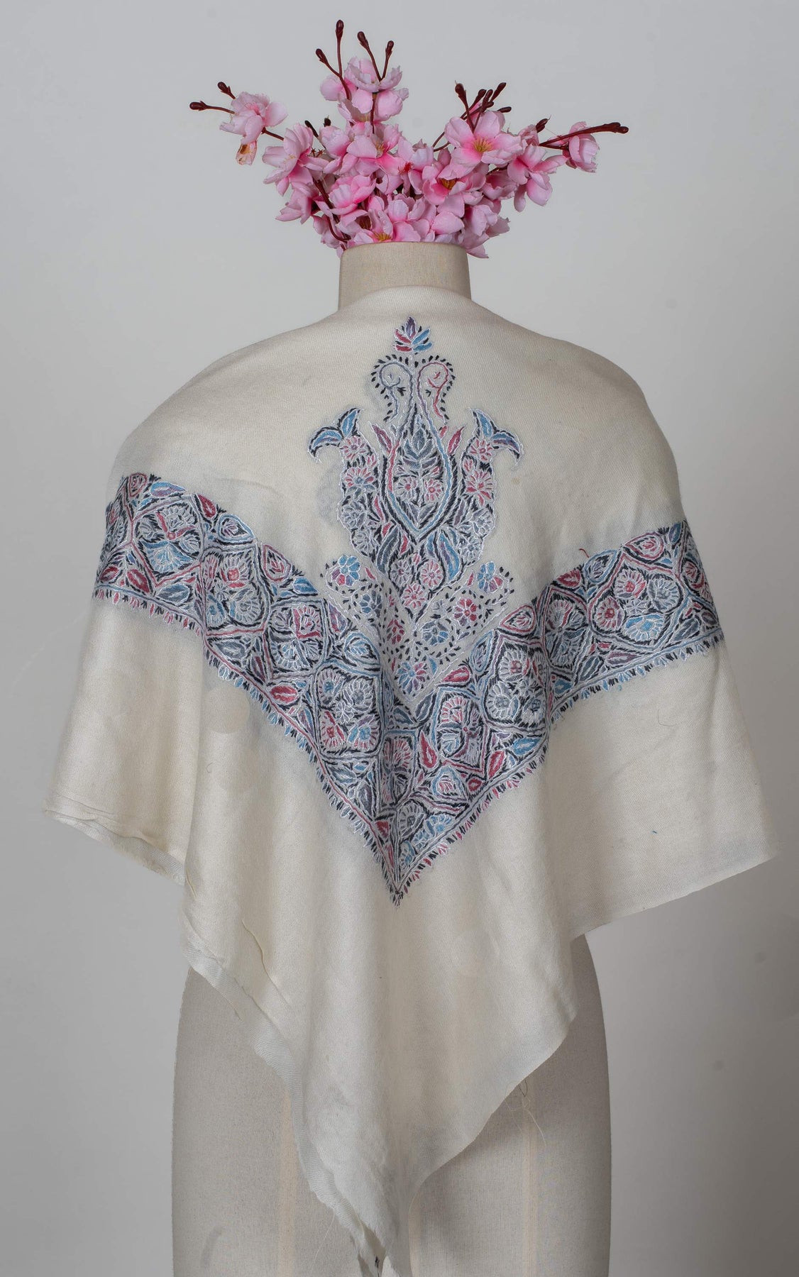 Wrap yourself in the elegance of Kashmir with the Ivory Petal Rumal 58 inches — Sozni Hand Embroidered, a hand-embroidered masterpiece designed for both tradition and modern grace. Crafted from premium Merino Wool, this Rumal drapes beautifully while remaining lightweight and breathable. The balanced 58 x 58 inches square makes it ideal for styling as a tarha/hijab, shawl-style wrap, or elevated accent.