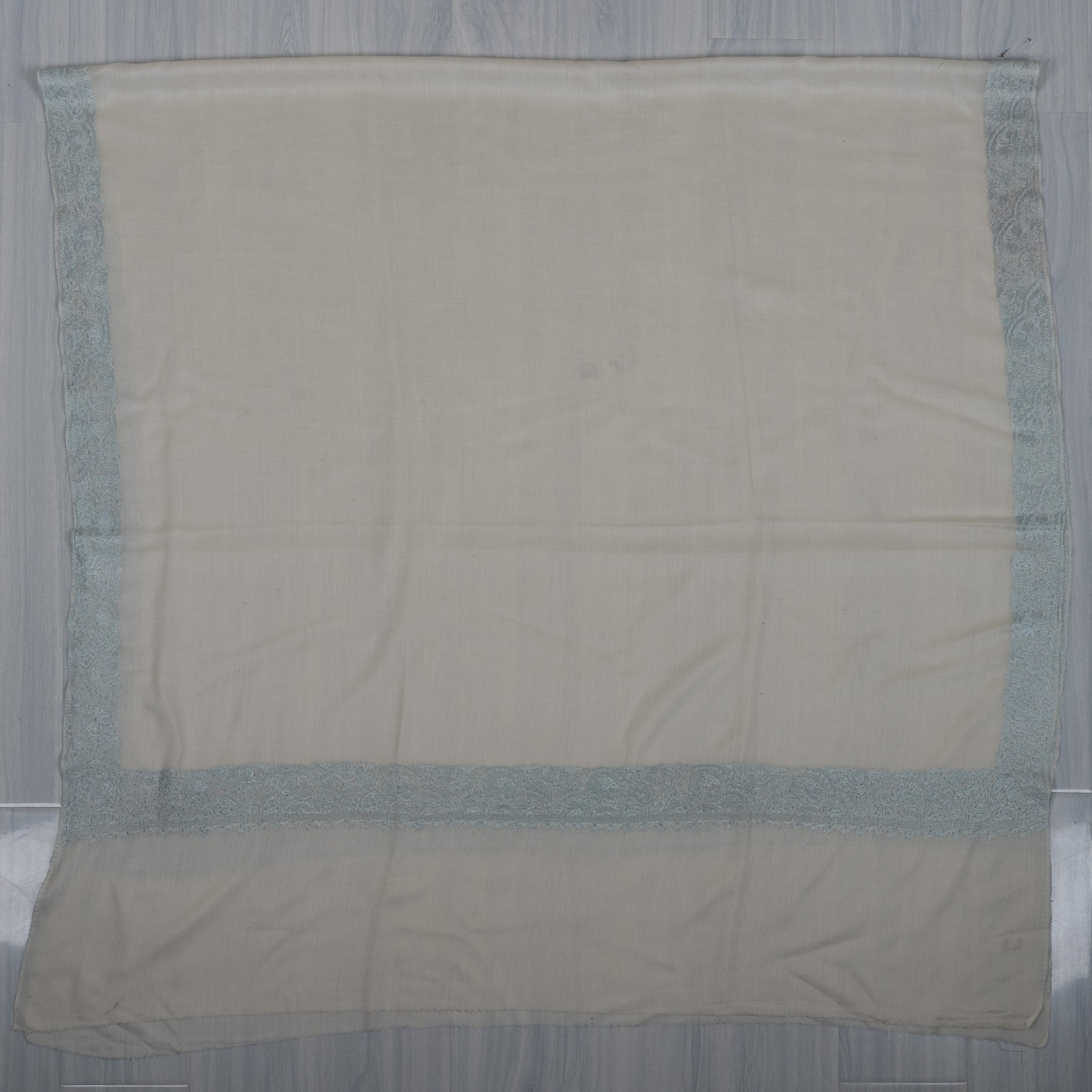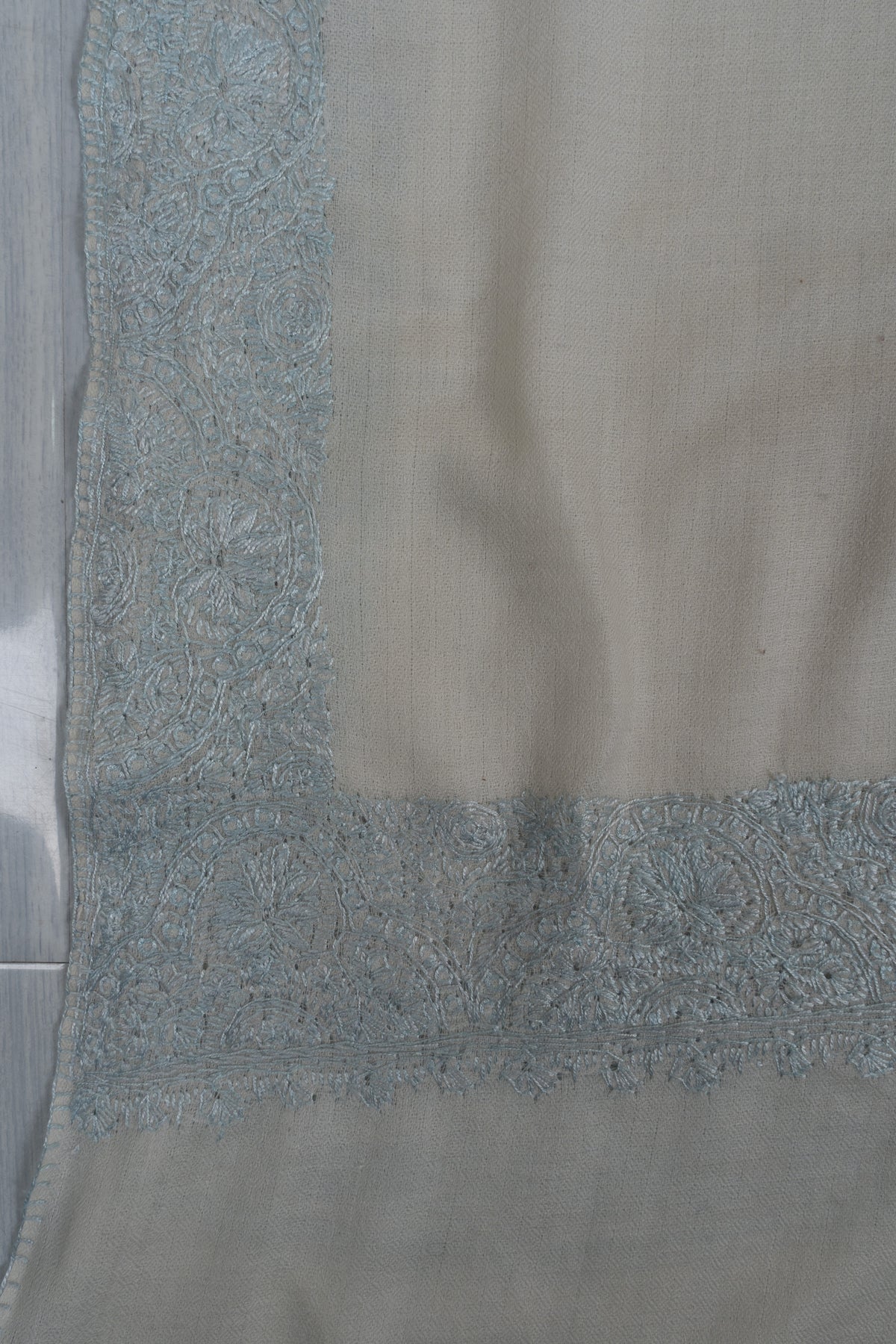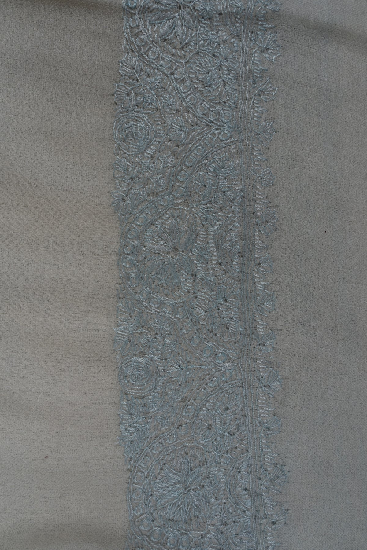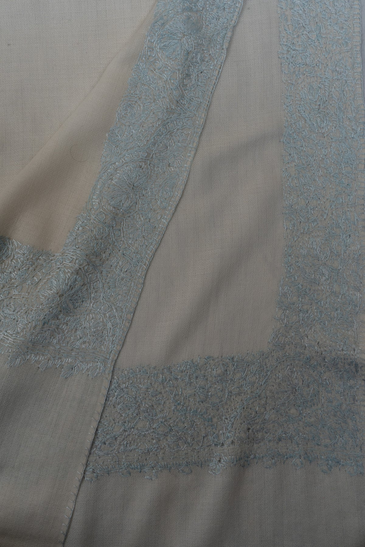 Snow Mist Serenity: Merino wool 2.5 Yards Sozni Hand Embroidered Shawl