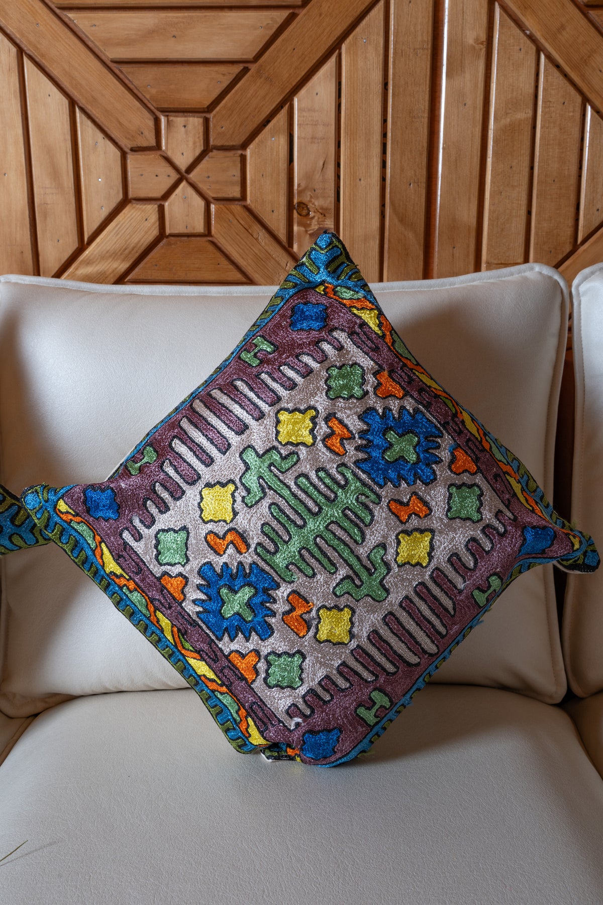 👐 Handcrafted with care, each cushion cover is Hand Embroidered by skilled Kashmiri artisans, reflecting refined craftsmanship.