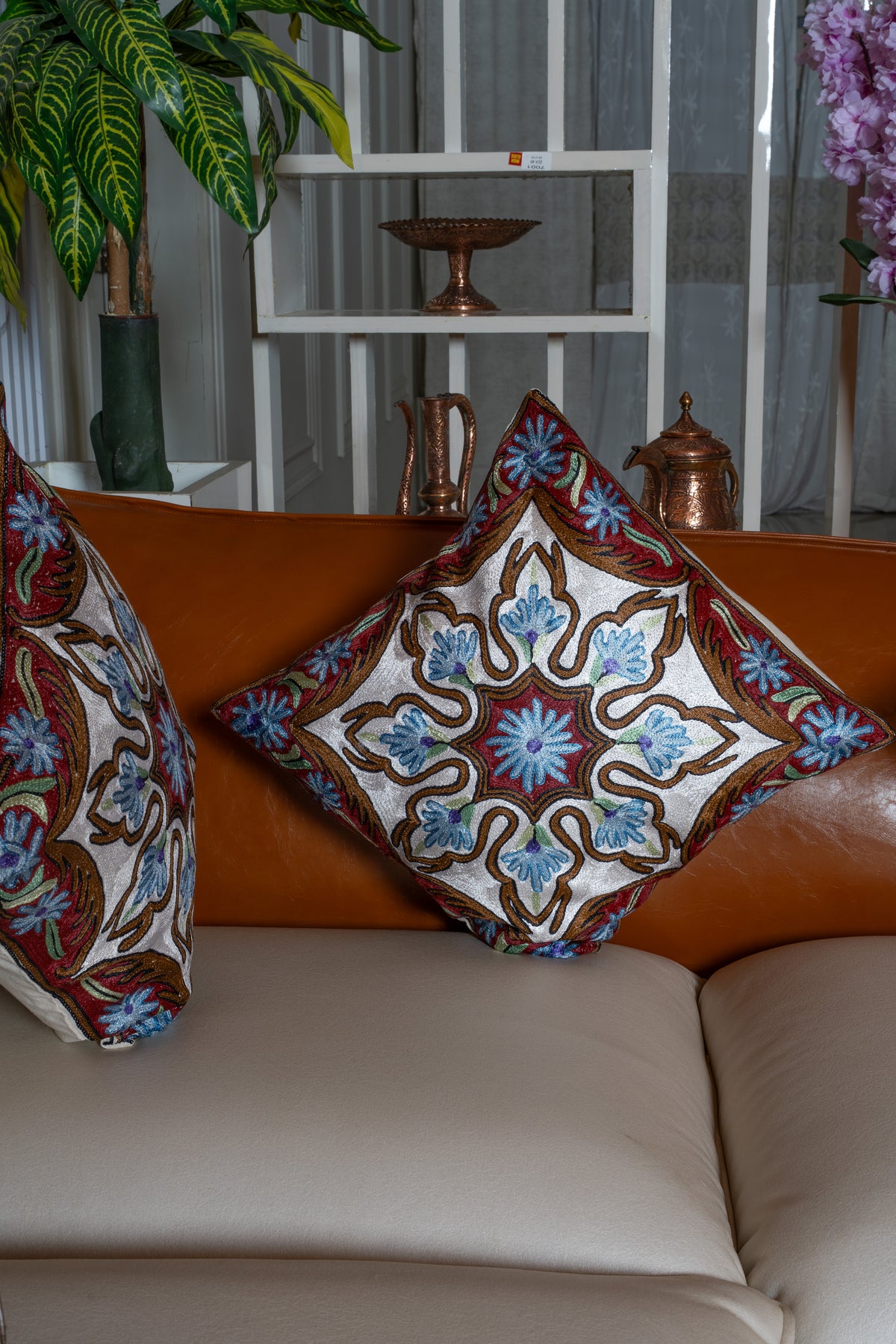 👐 Handcrafted with care, each cushion cover is Hand Embroidered by skilled Kashmiri artisans, reflecting refined craftsmanship.