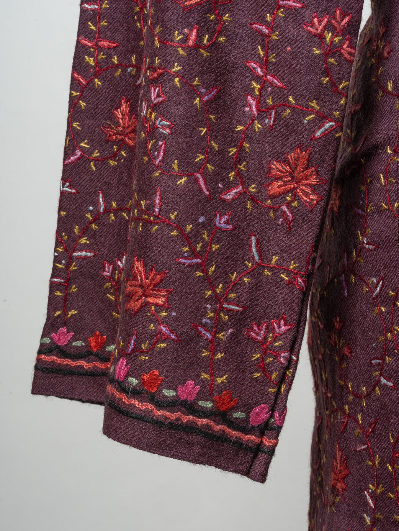 Noor Garden Sozni Hand Embroidered Fine Merino Wool Pheran