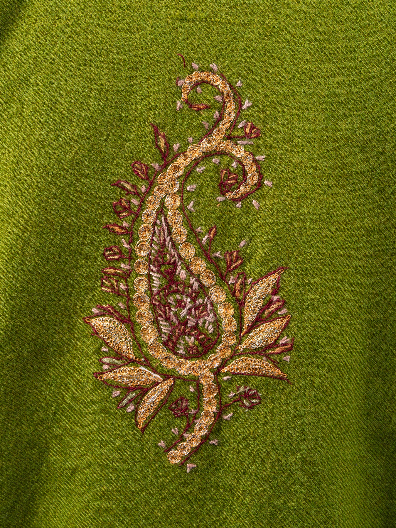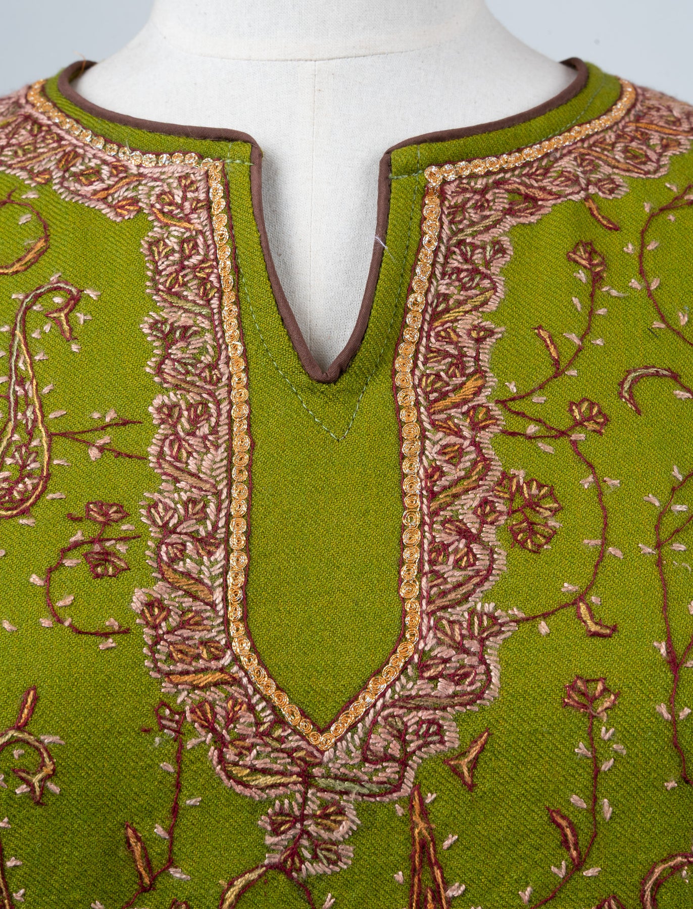 Verdant Vine Sozni Hand Embroidered Fine Merino Wool Pheran