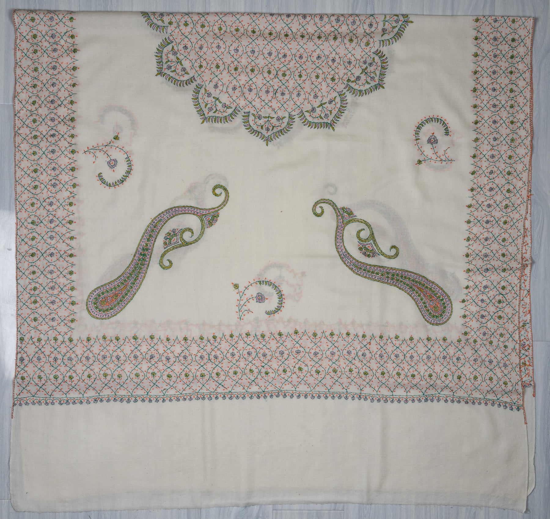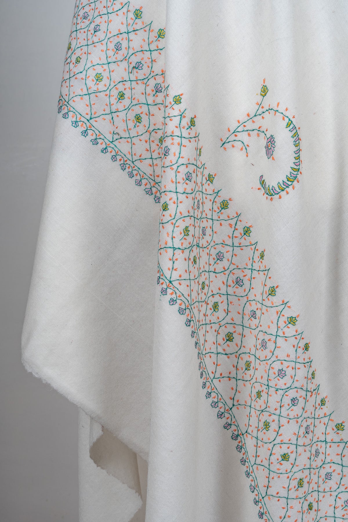 Ivory Garden Sozni Hand Embroidered Merino Wool Shawl