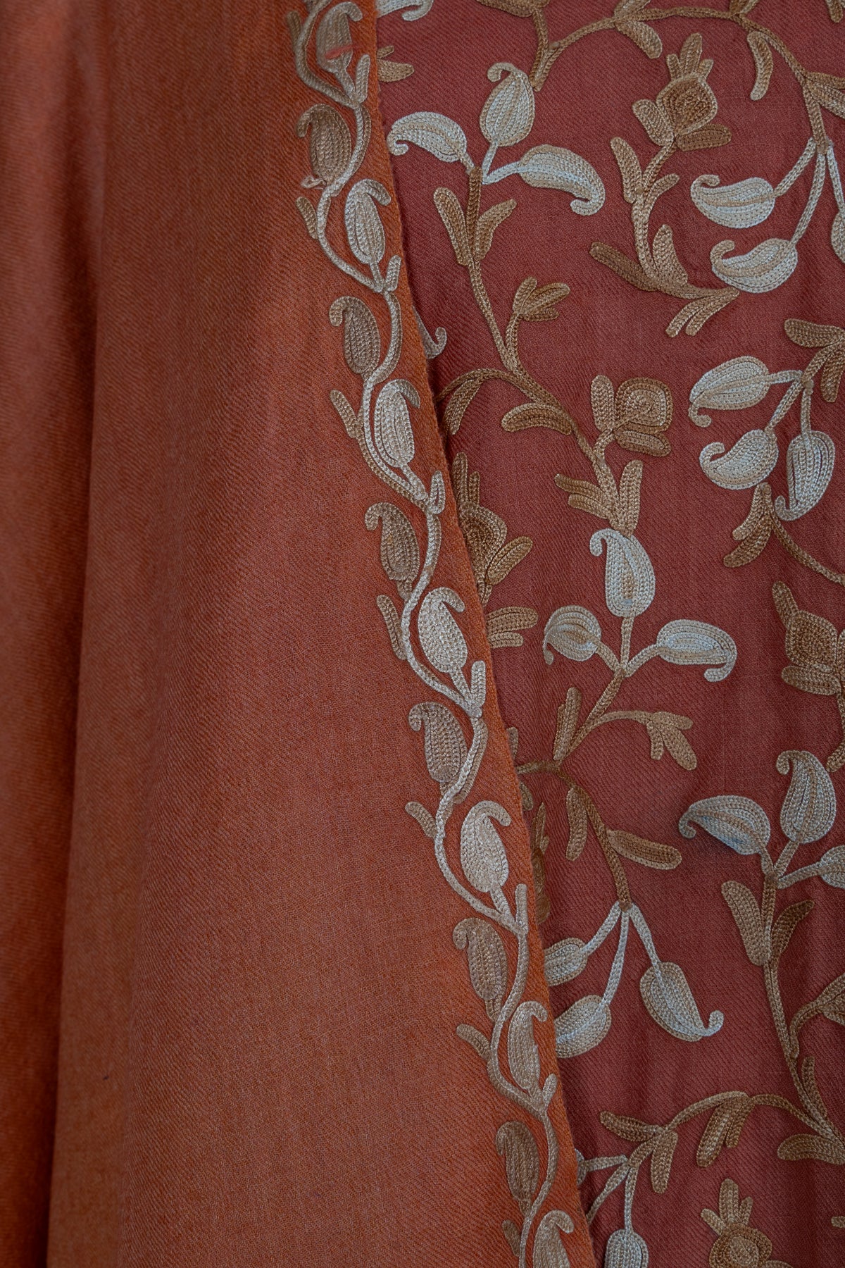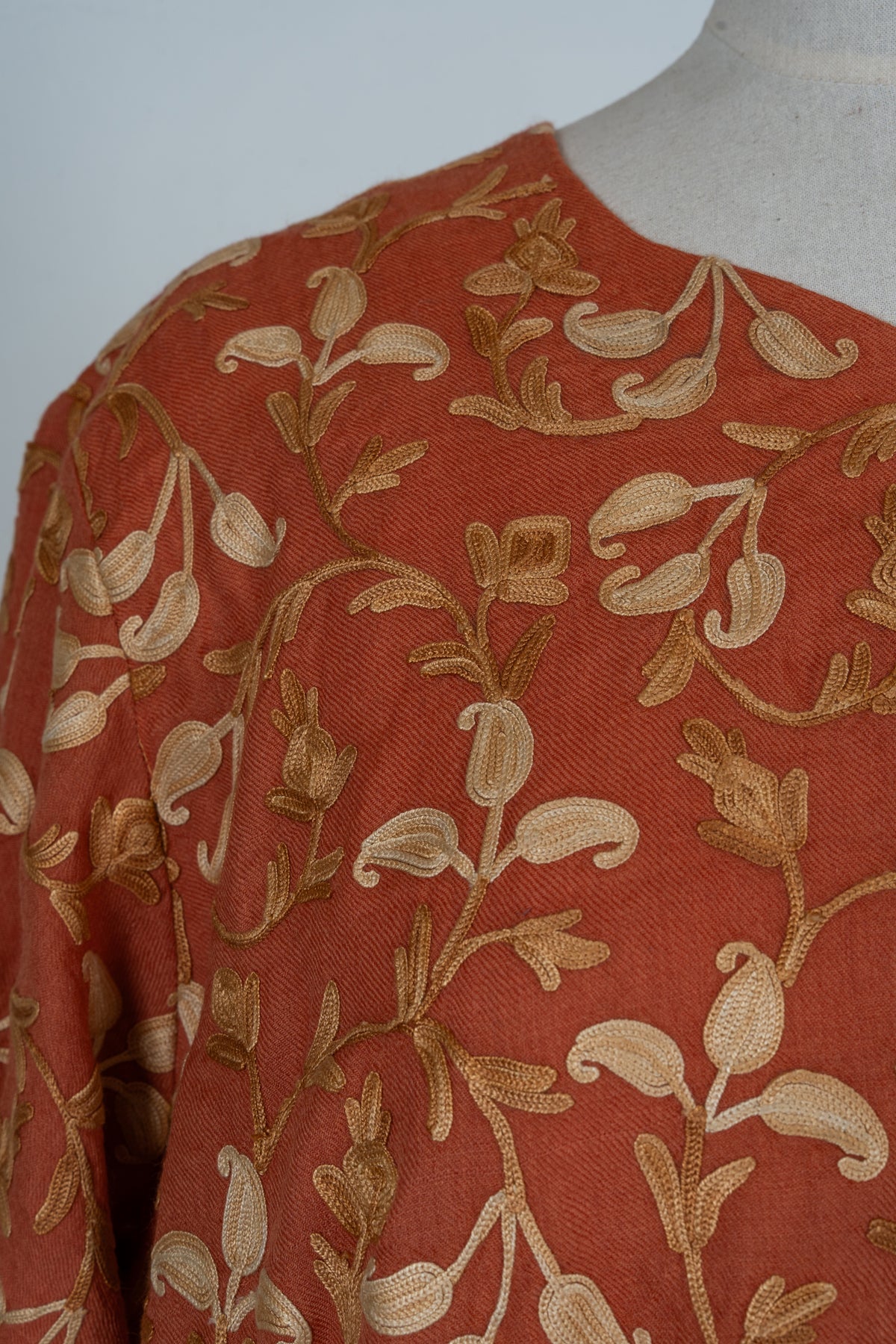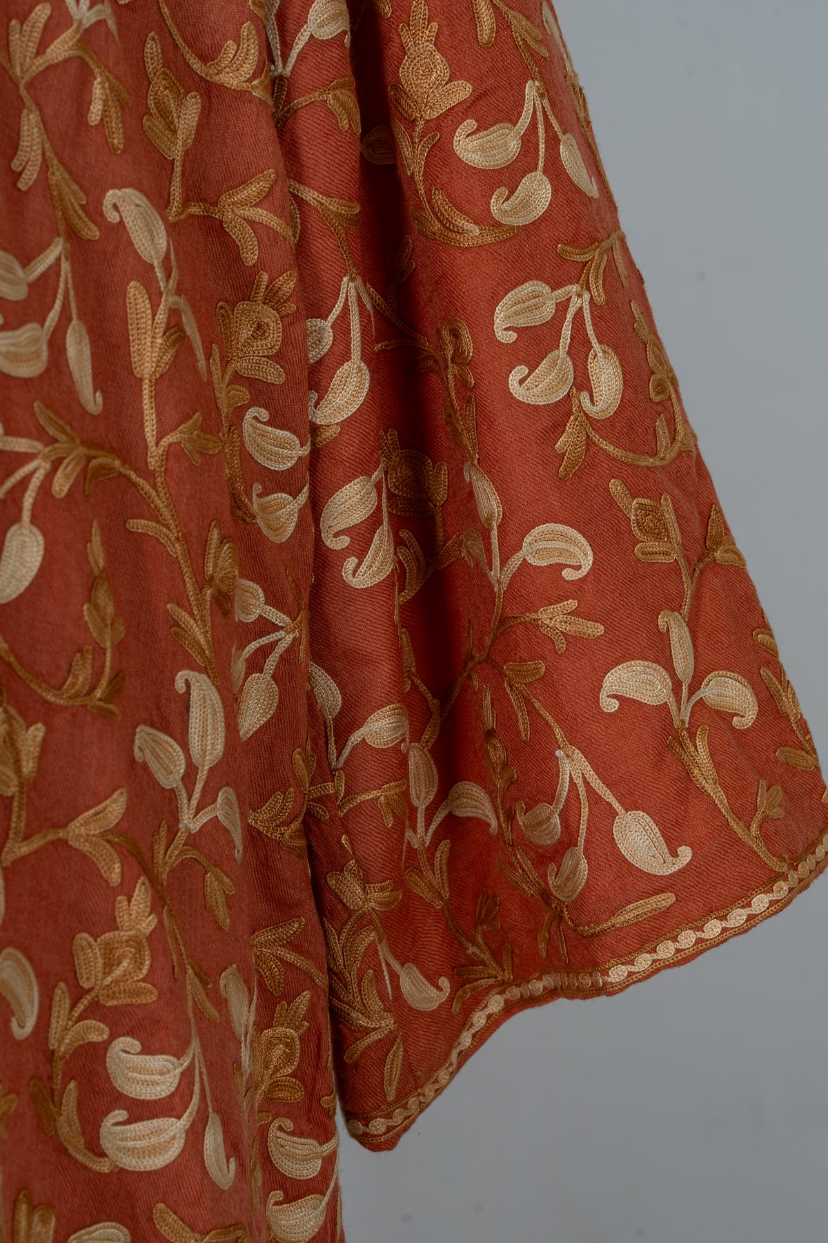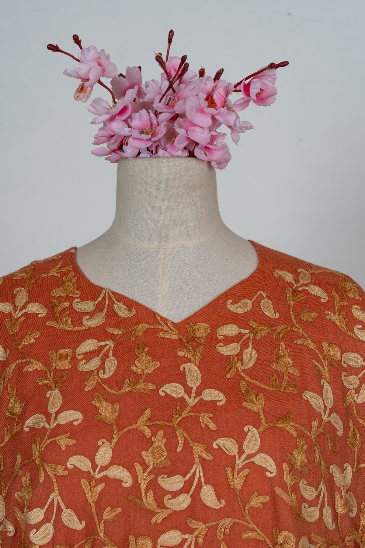 Aari Embroidered Abaya in Burnt Saffron Bloom