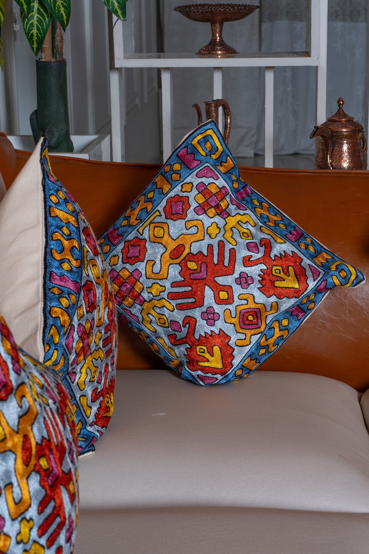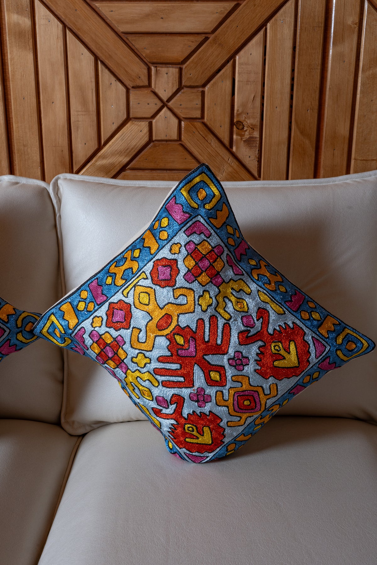 👐 Handcrafted with care, each cushion cover is Hand Embroidered by skilled Kashmiri artisans, reflecting refined craftsmanship.
