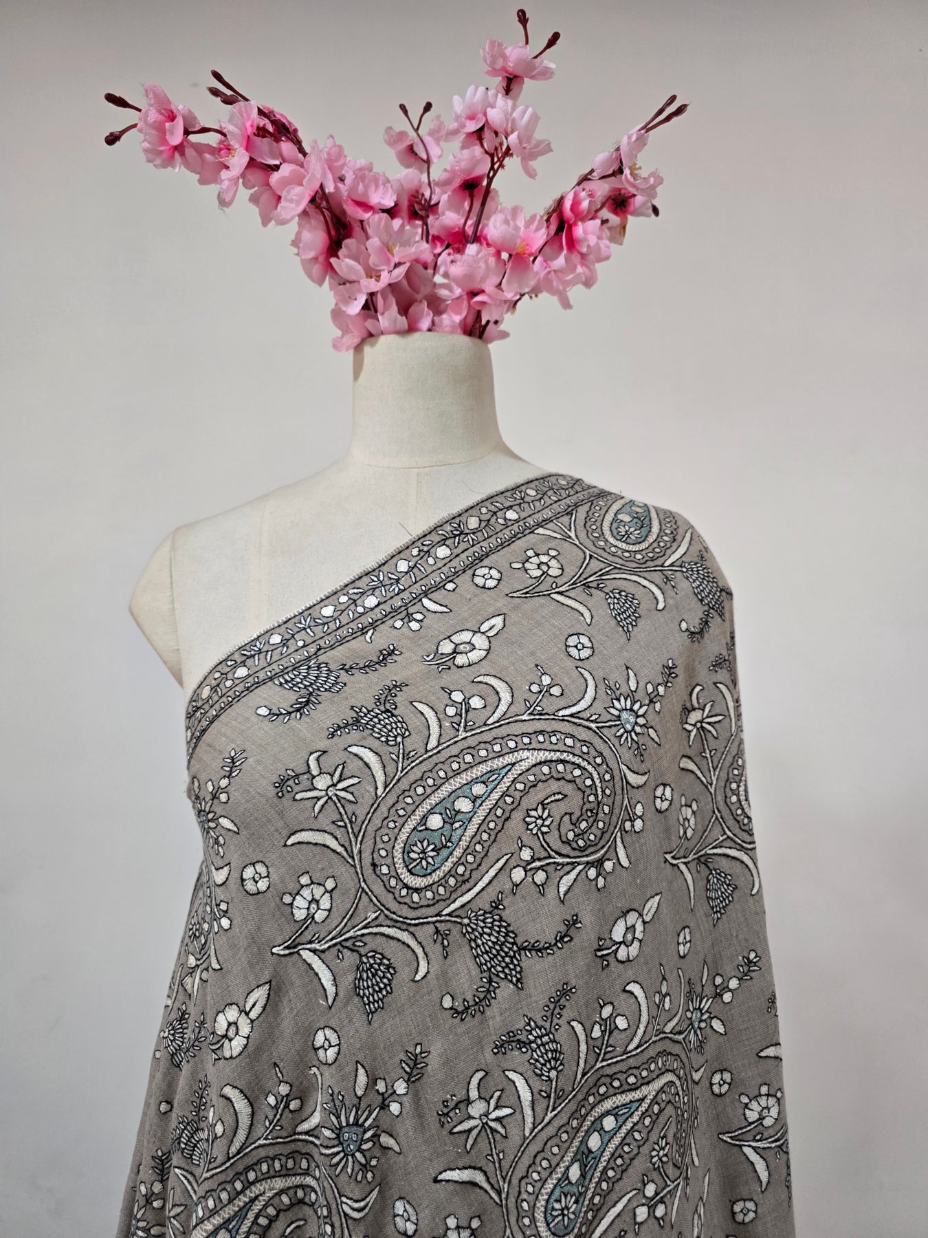 Pure Pashmina 3 Yards Dusty Taupe Garden: Sozni Hand Embroidered