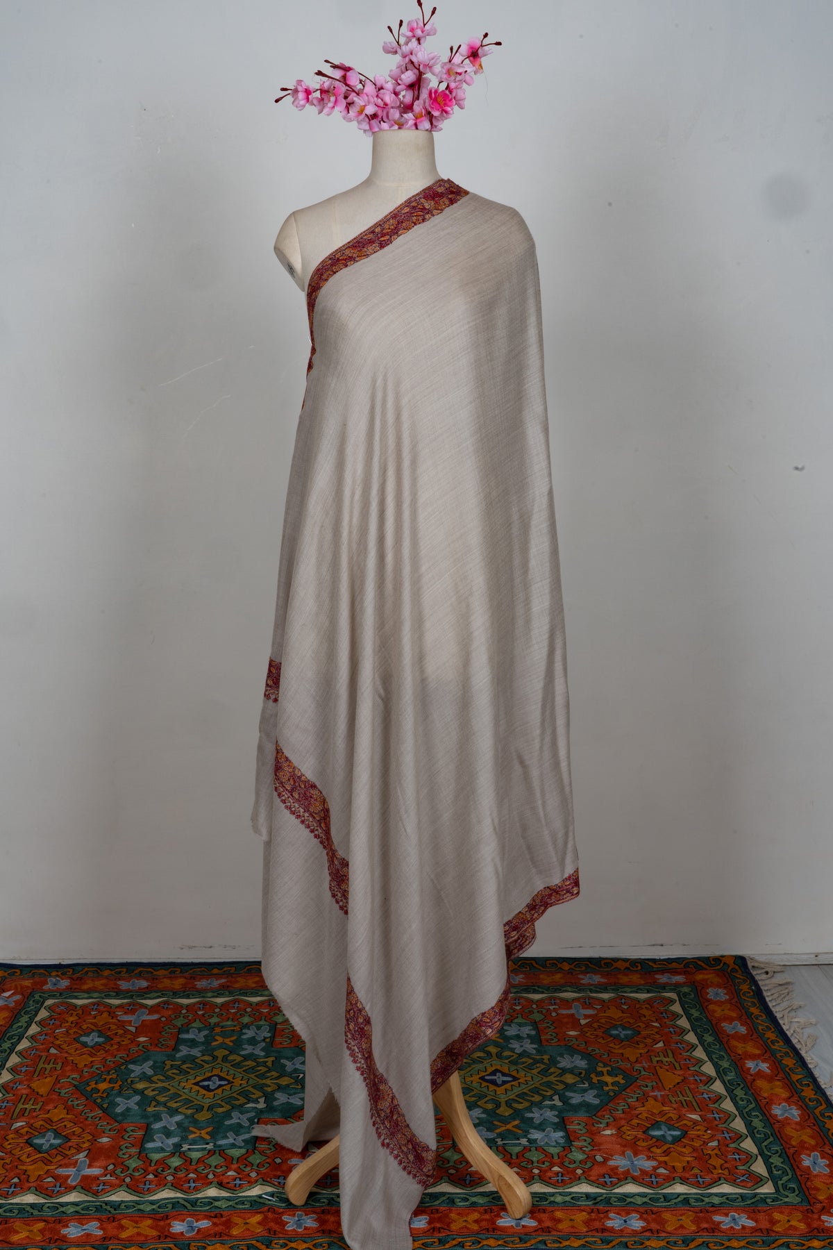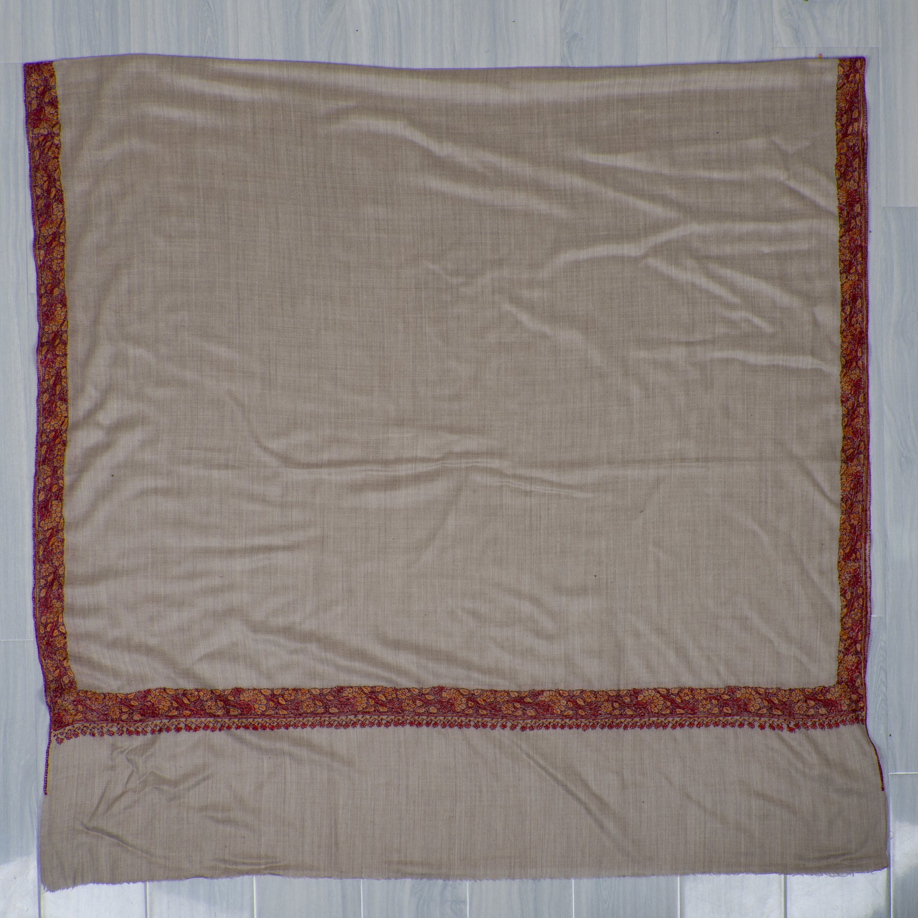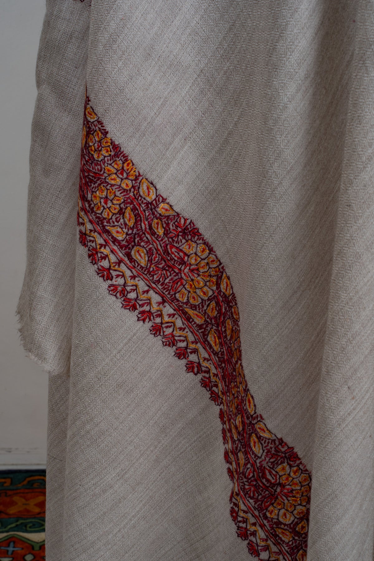 Almond Bloom Merino wool 2.5 Yards Sozni Hand Embroidered Shawl